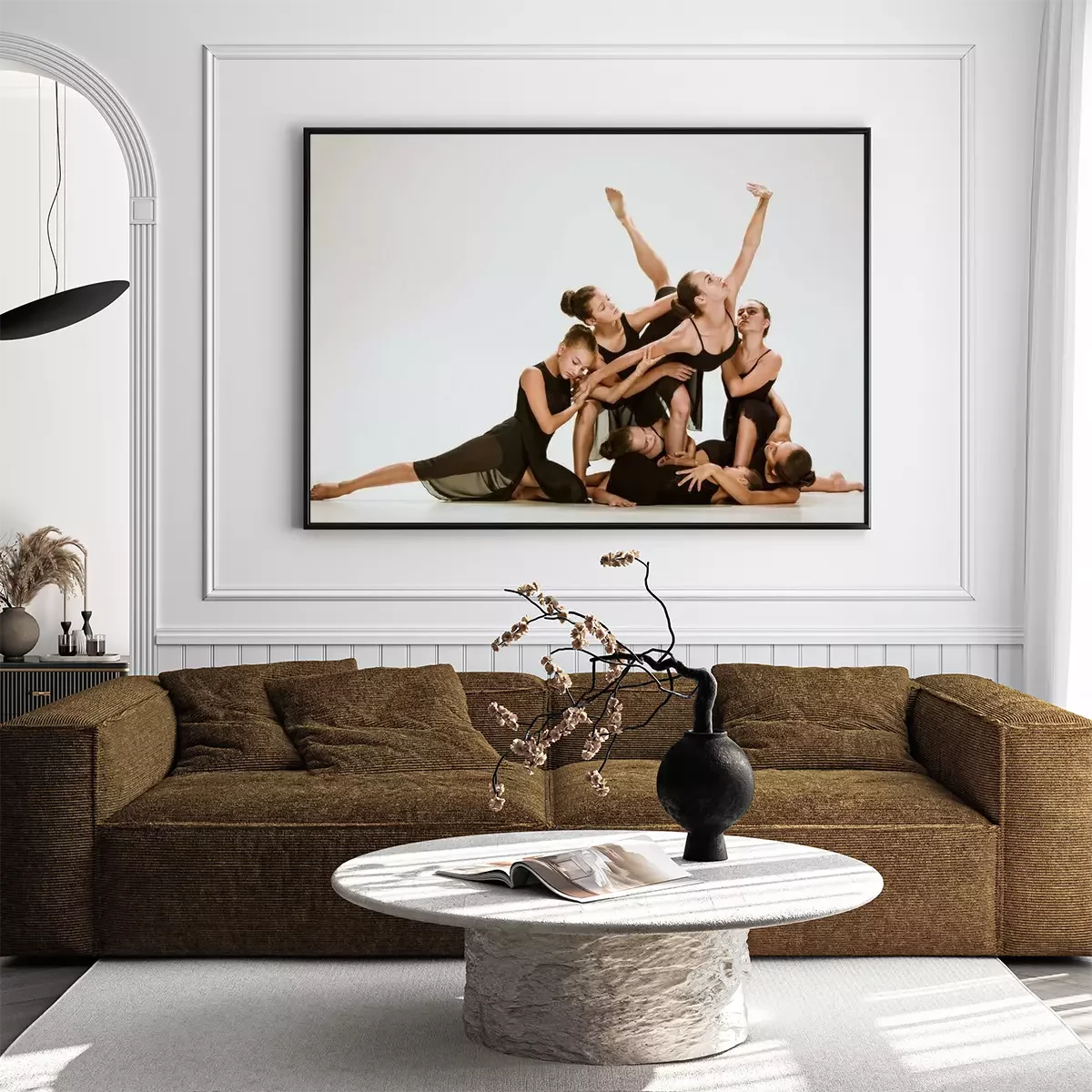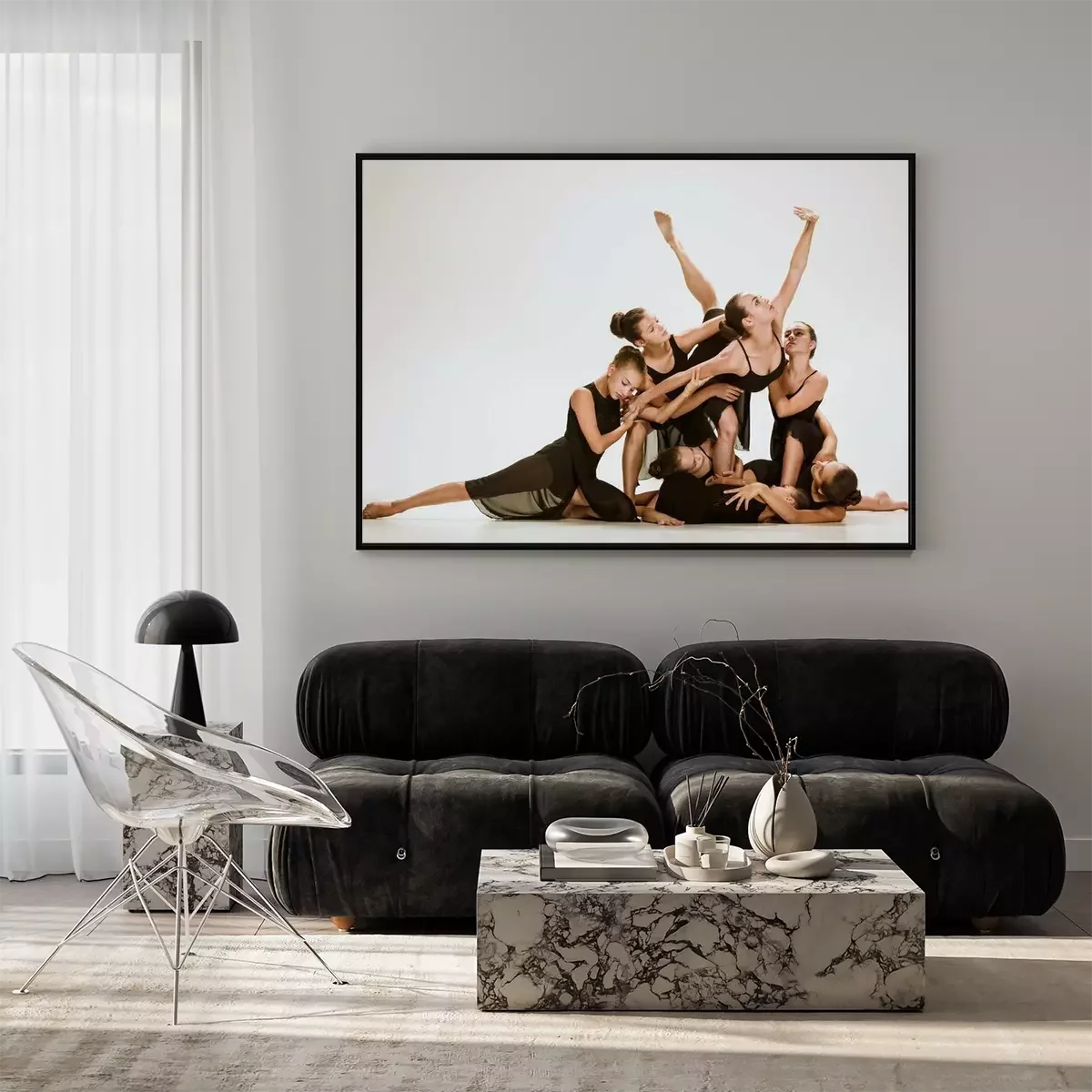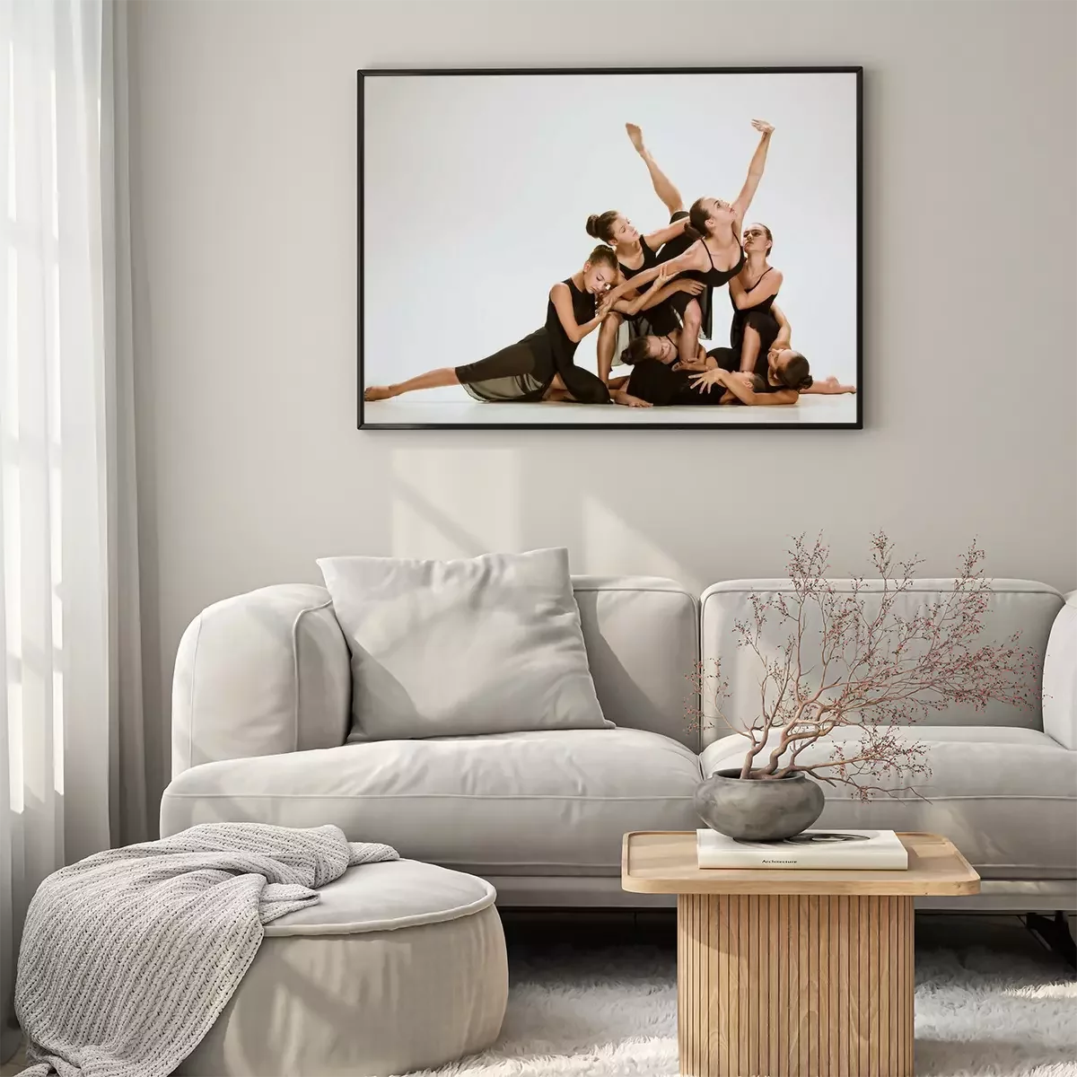 Poster: Dansers in een dansarrangement in het zwart gekleed