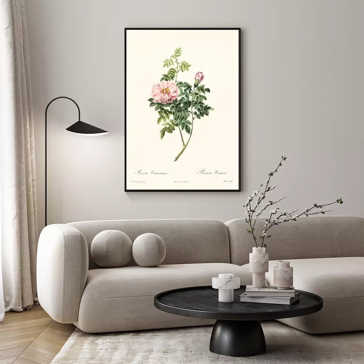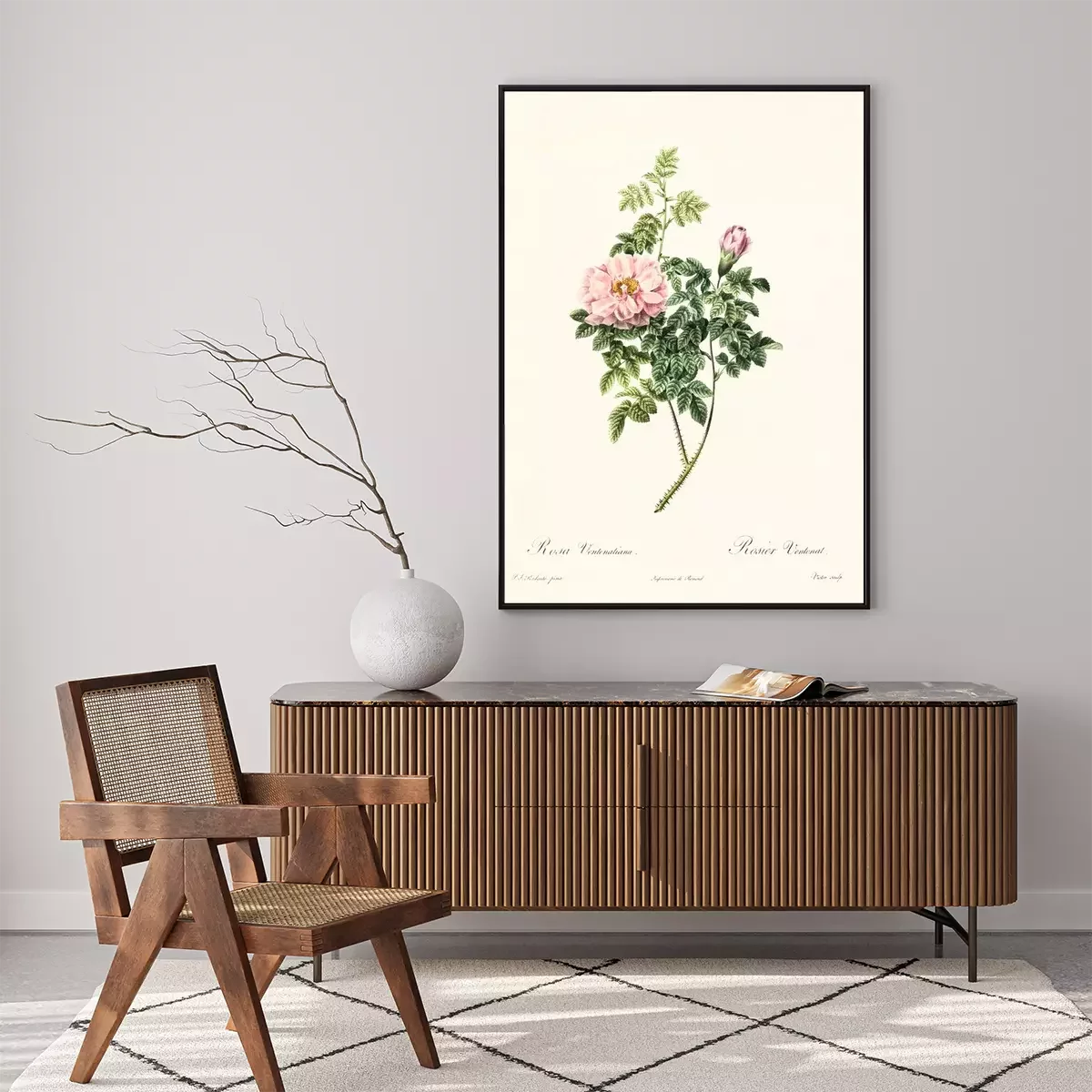 Poster: De aard van een zich ontwikkelende roos op een takje