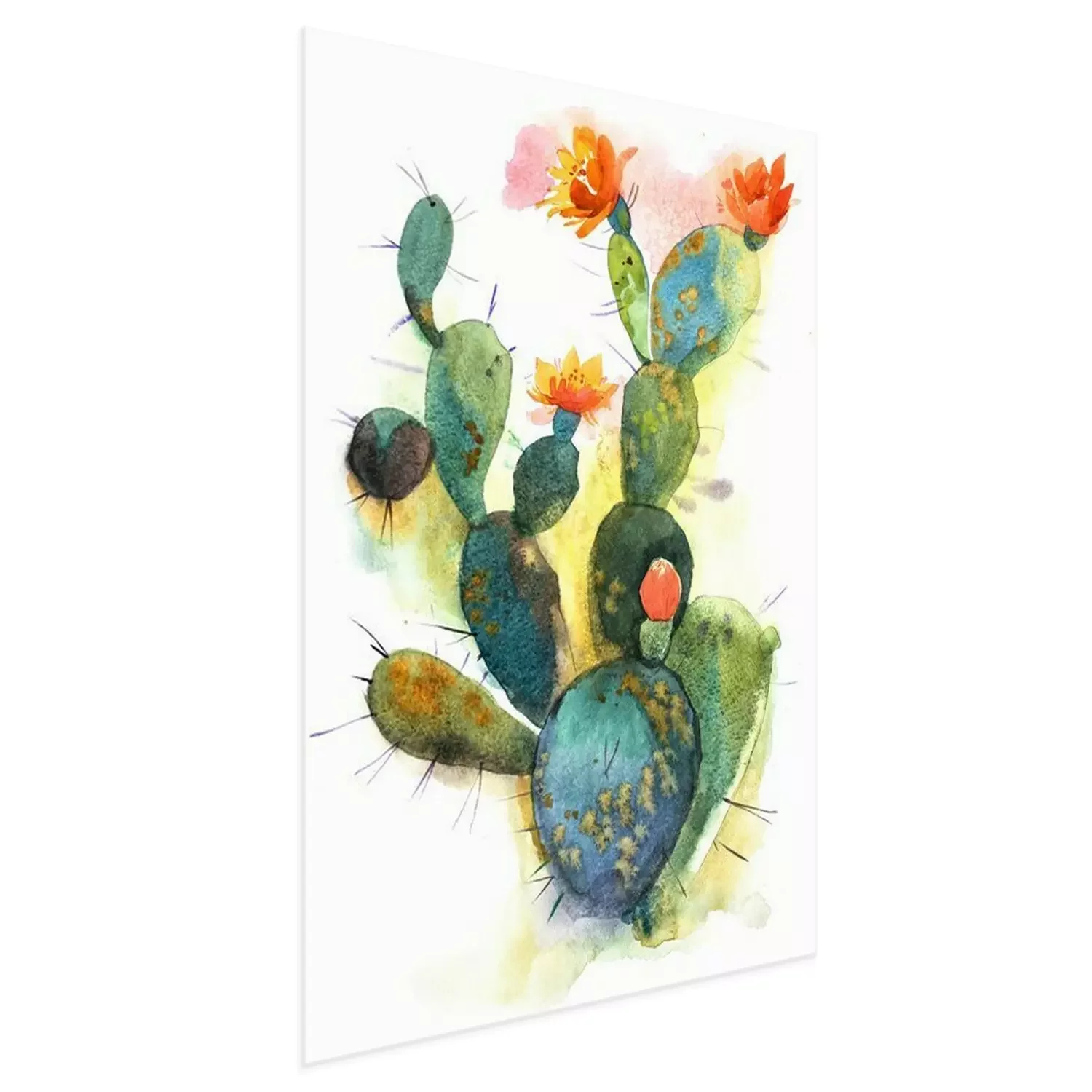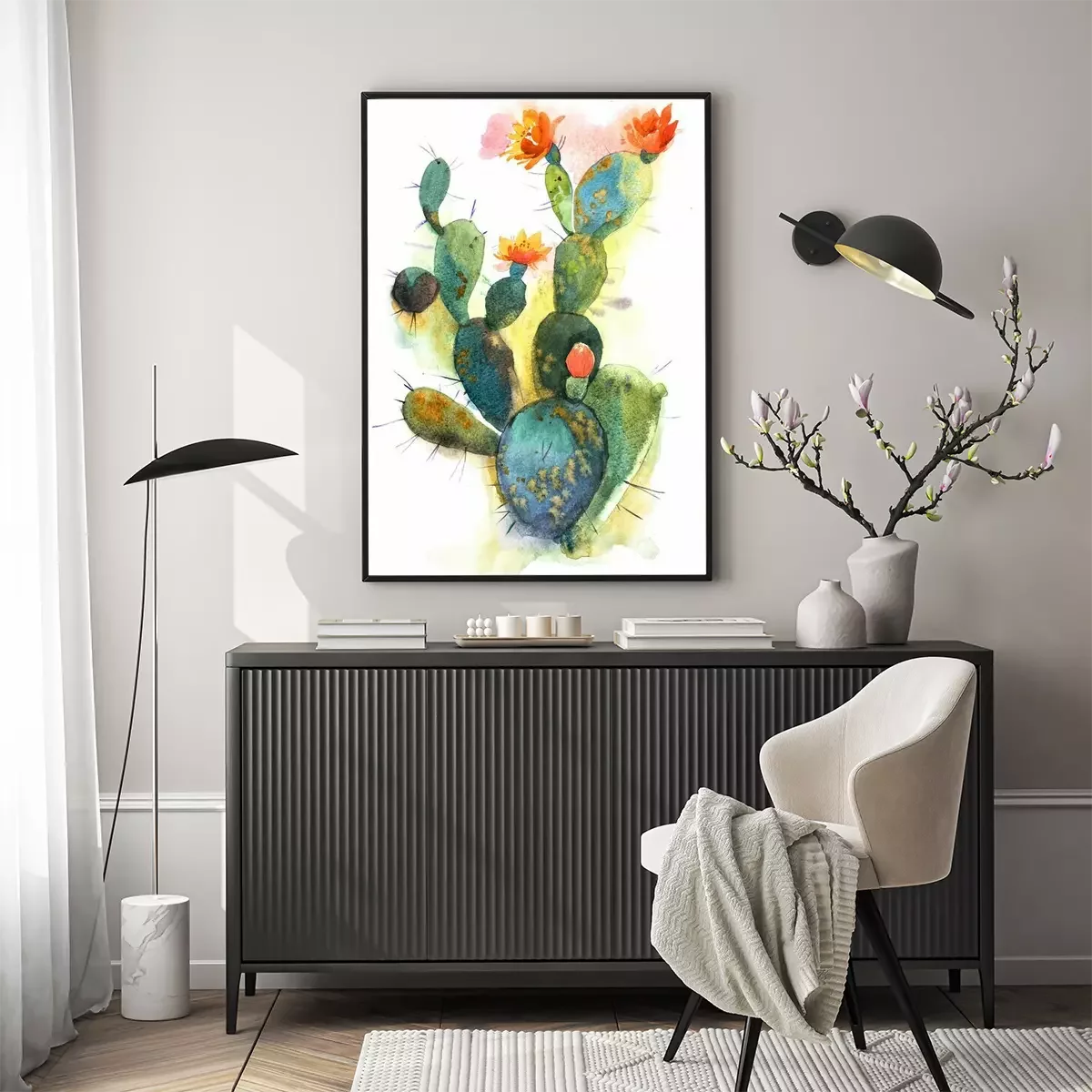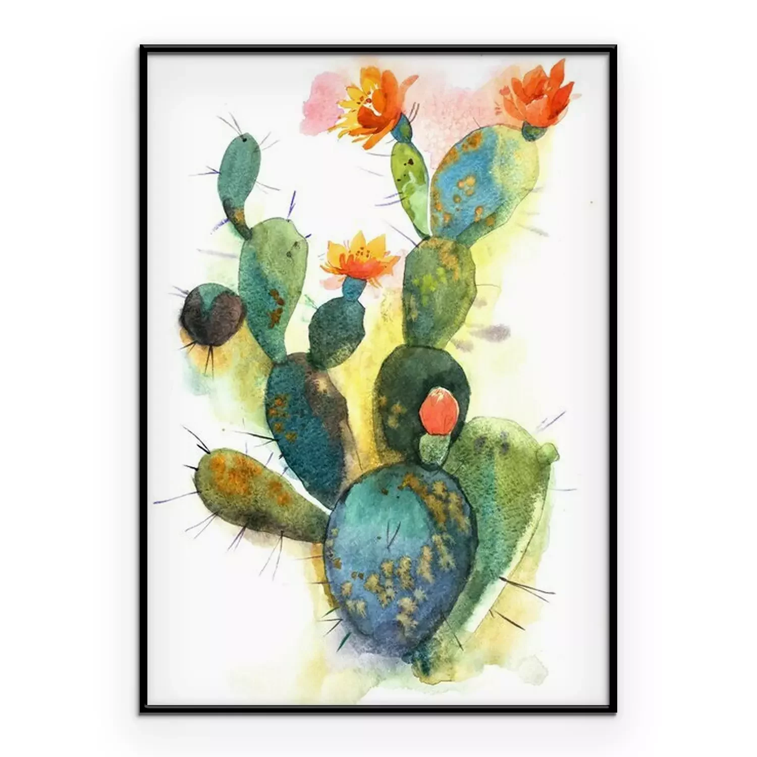 Poster De bloeibloem van de waterverfhand getrokken stekelige cactus