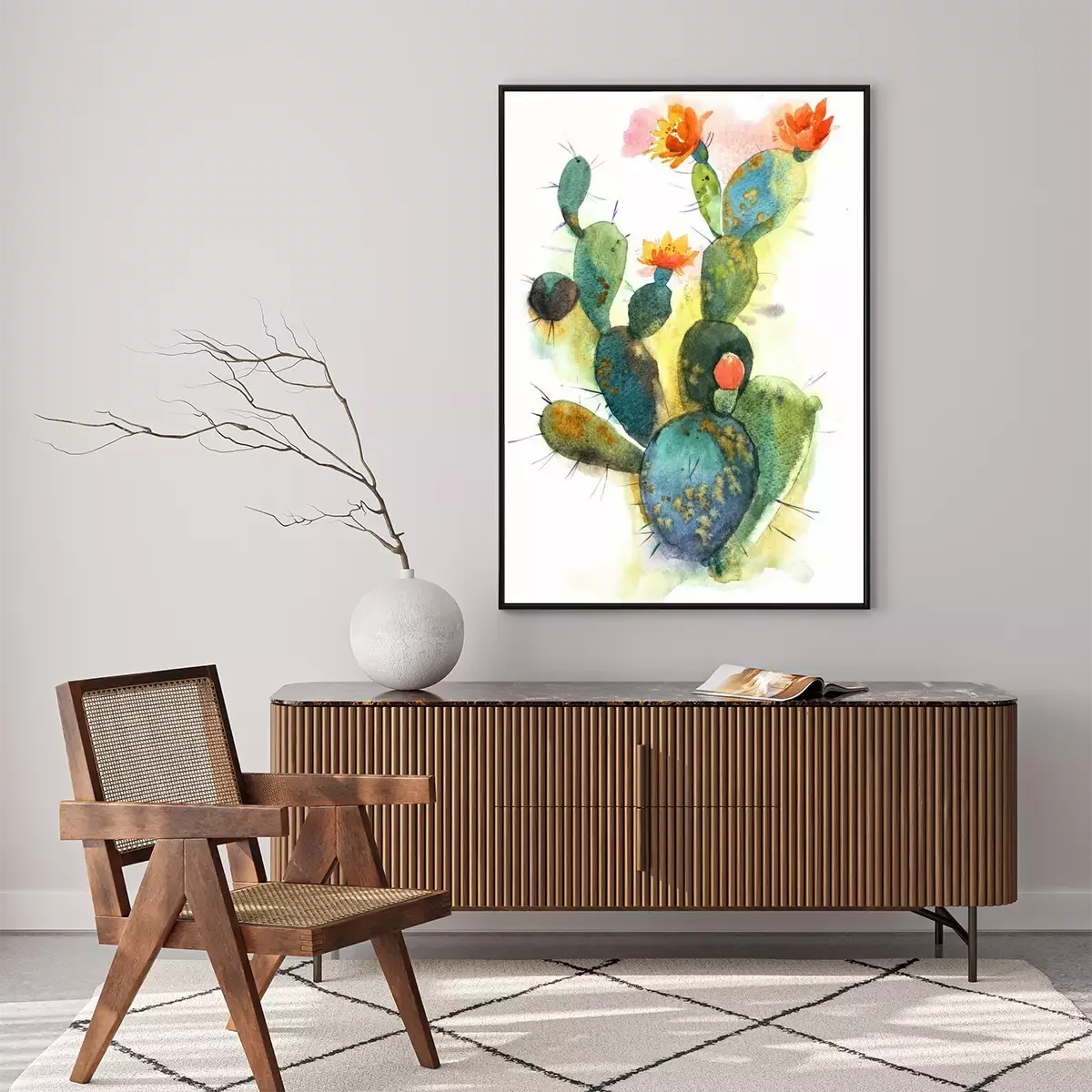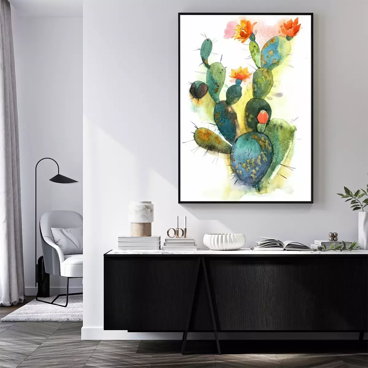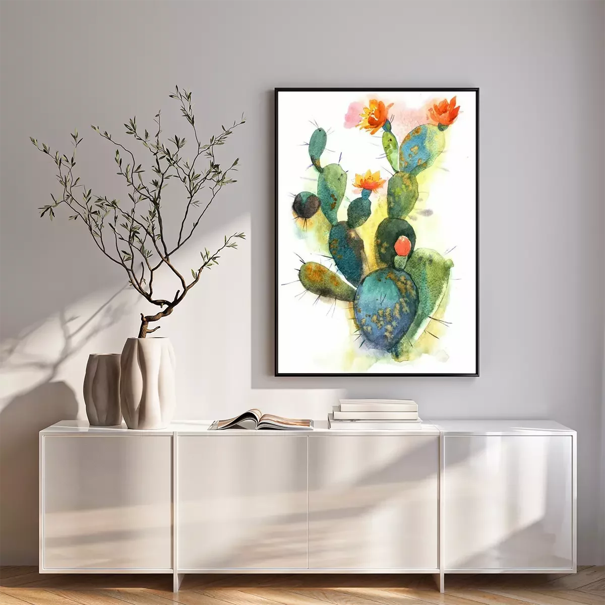 Poster De bloeibloem van de waterverfhand getrokken stekelige cactus