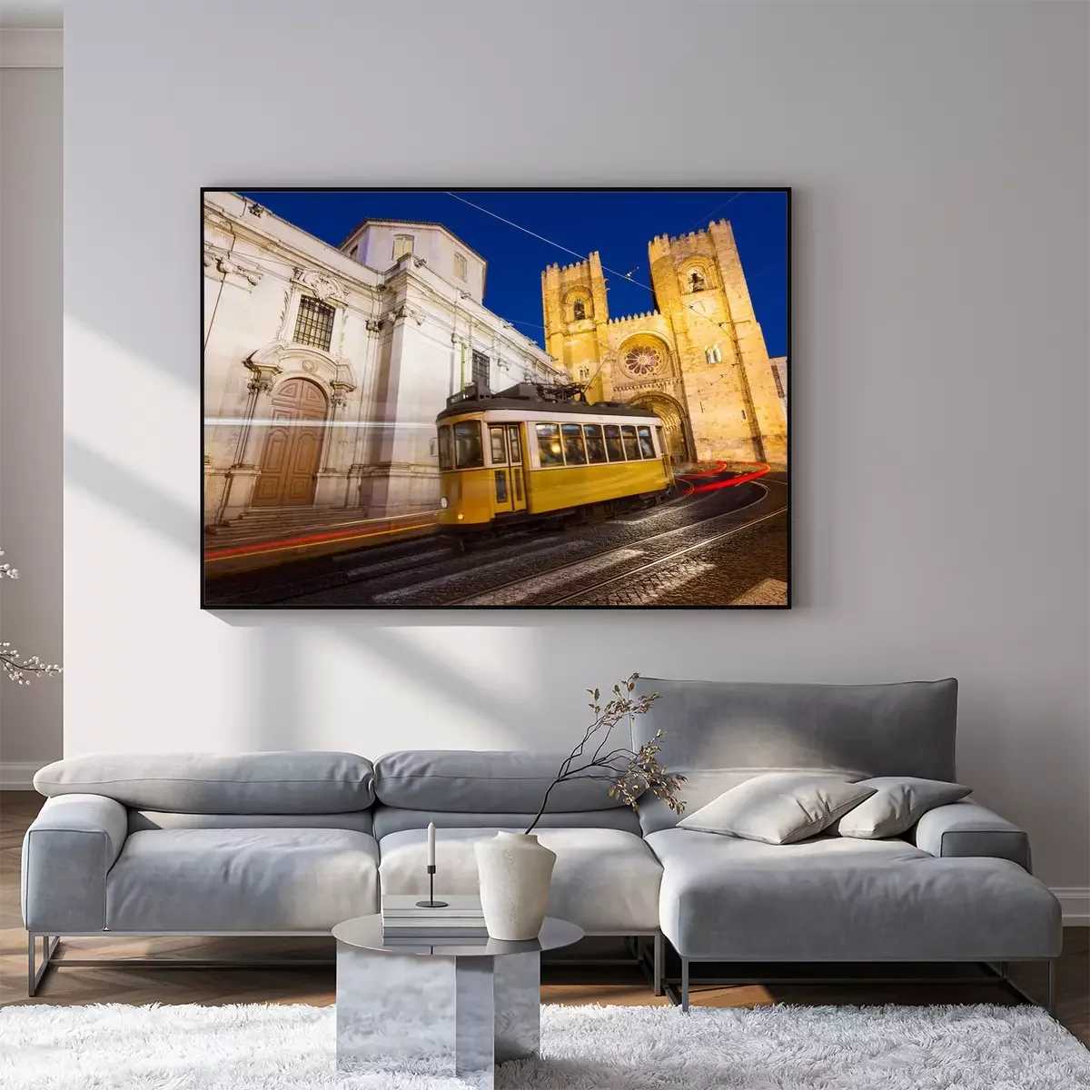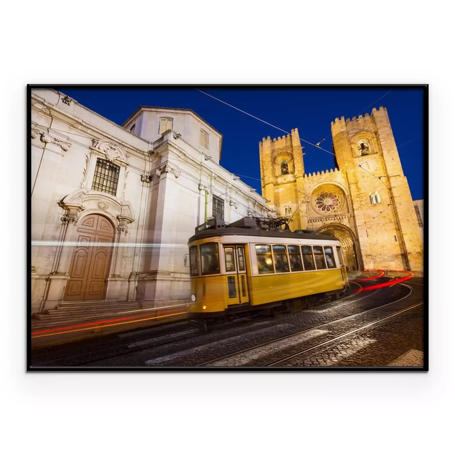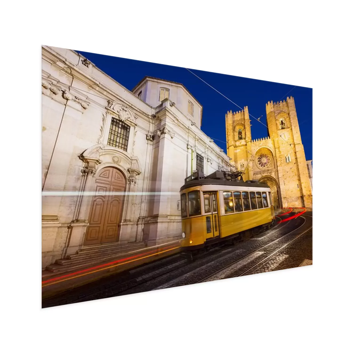 Poster: De gele tram van Lissabon onder de kathedraal