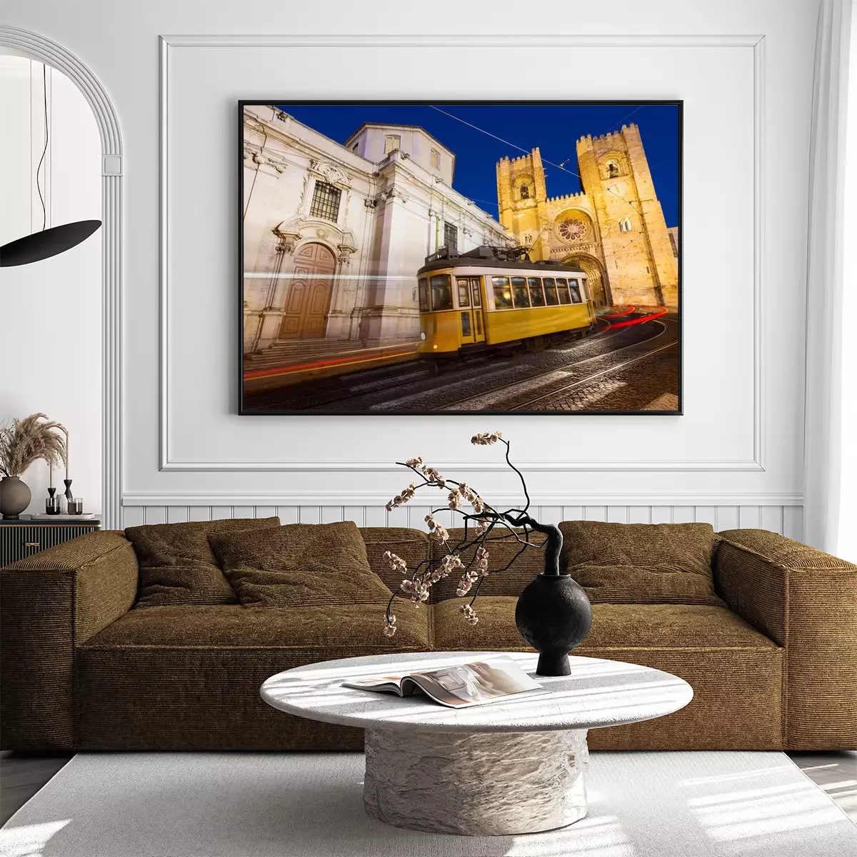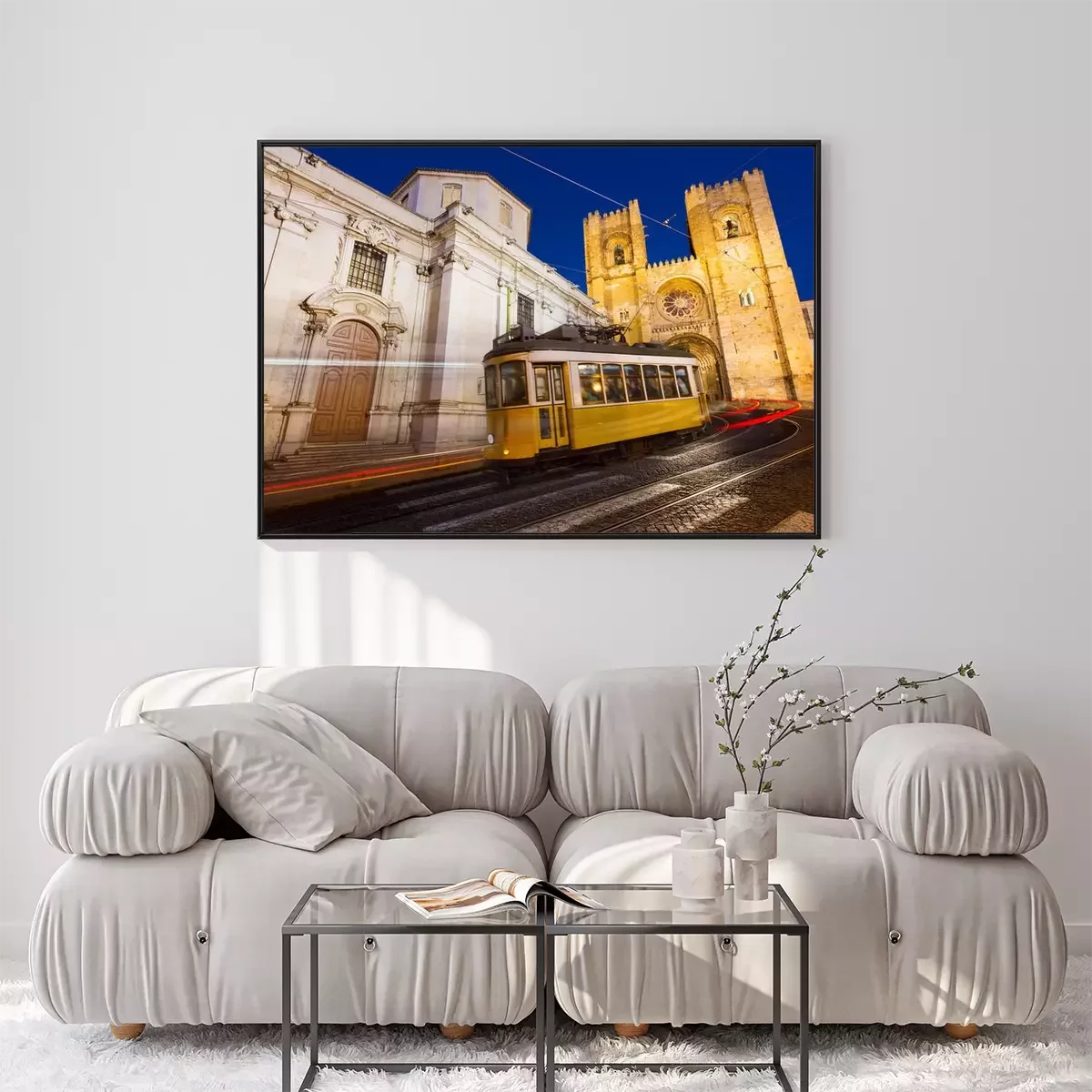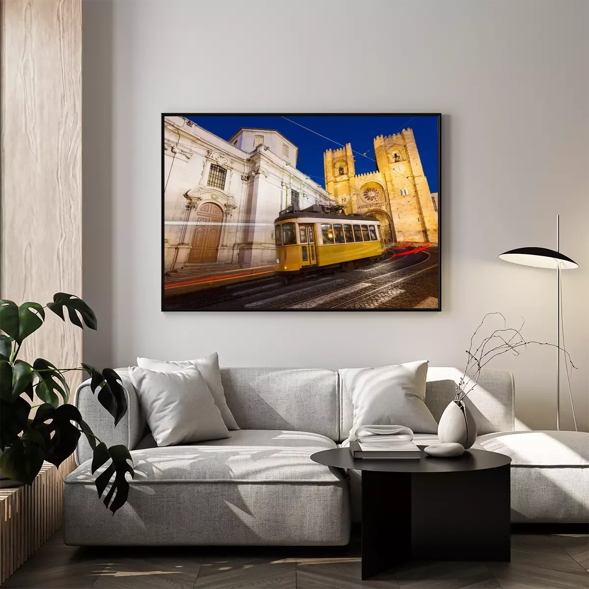 Poster: De gele tram van Lissabon onder de kathedraal
