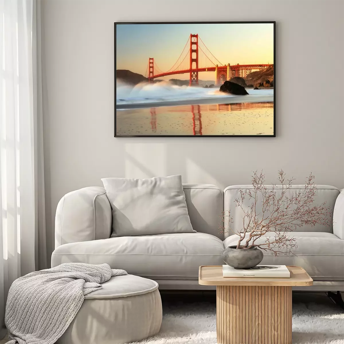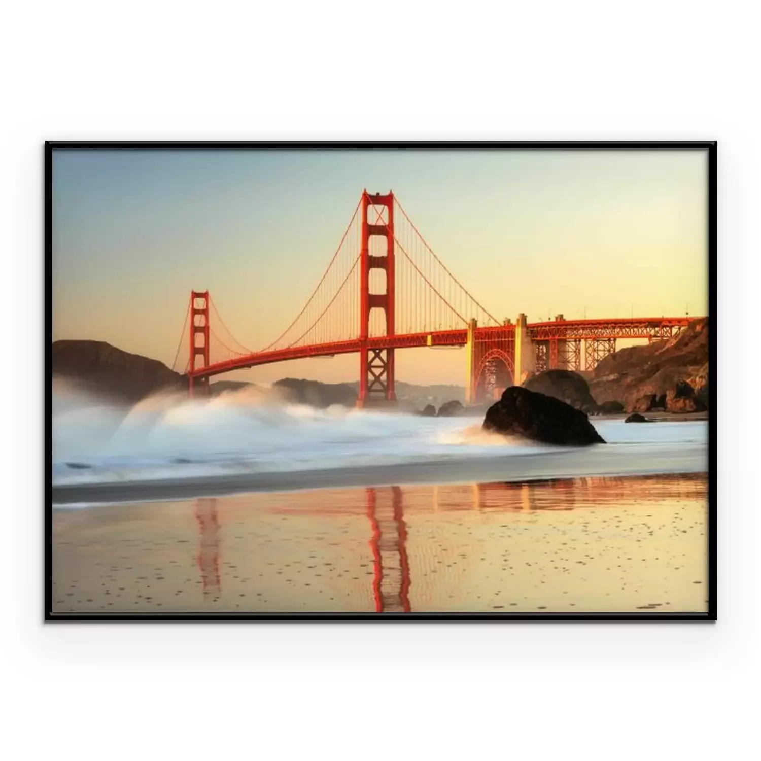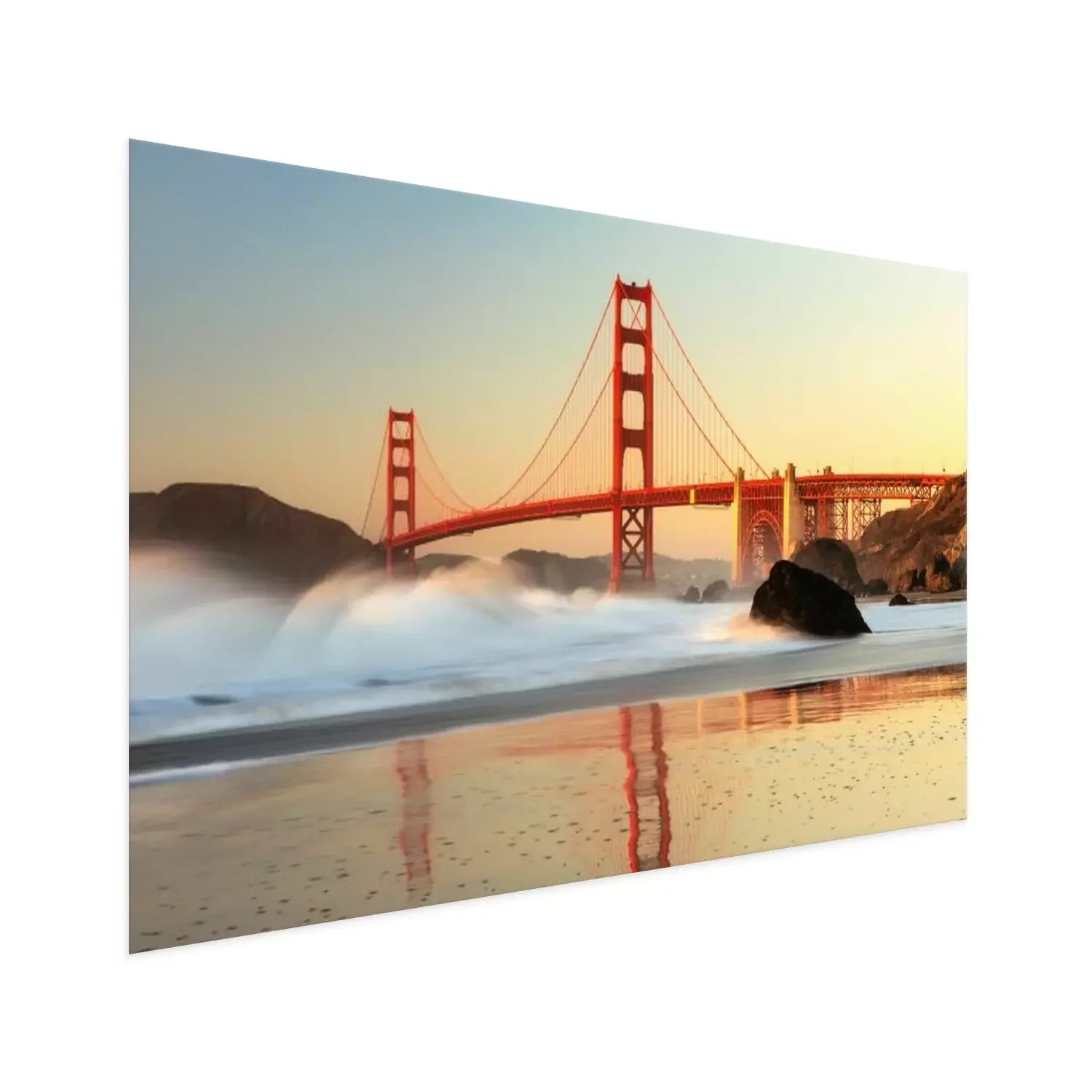 Poster: De Golden Gate Bridge in San Francisco met oceaan golven