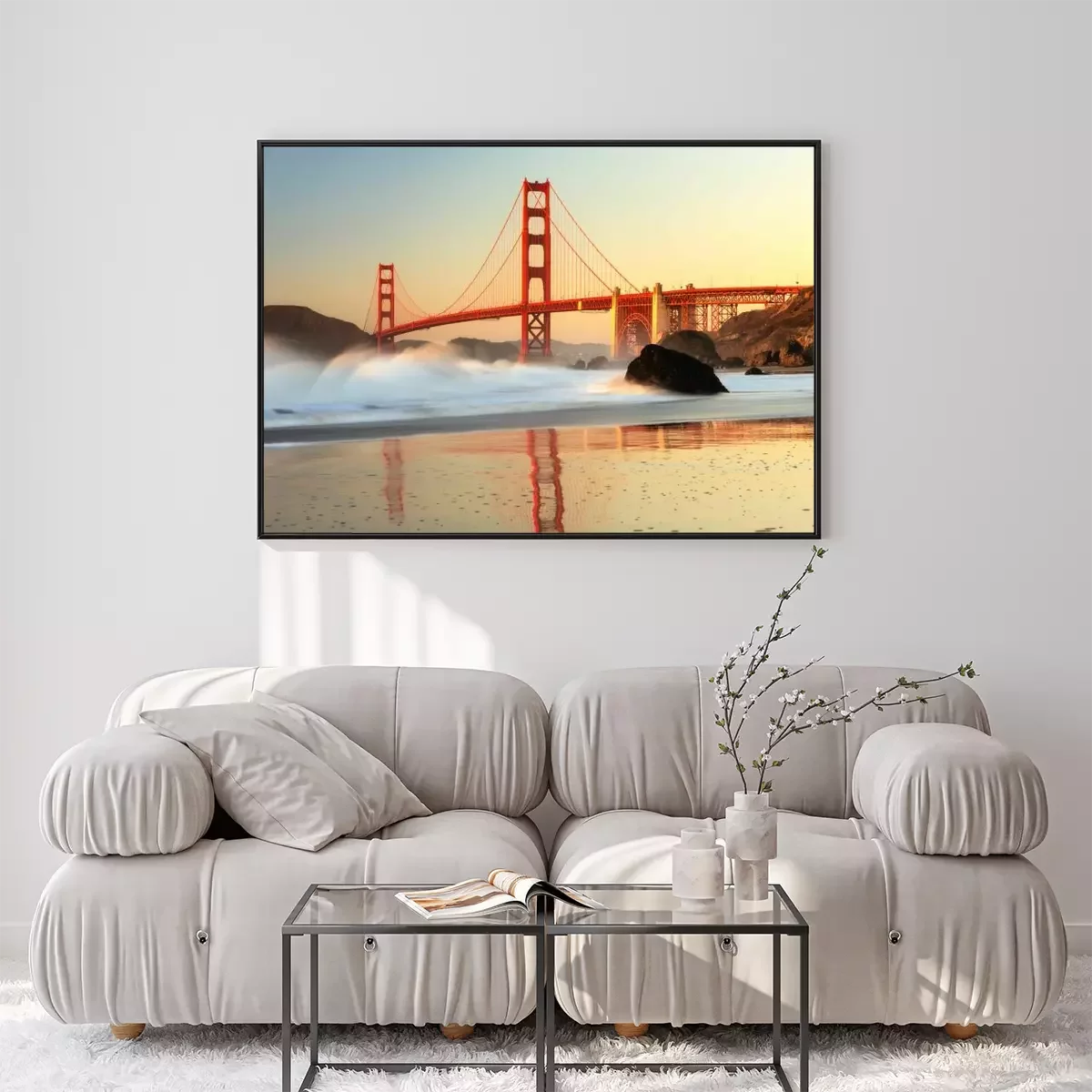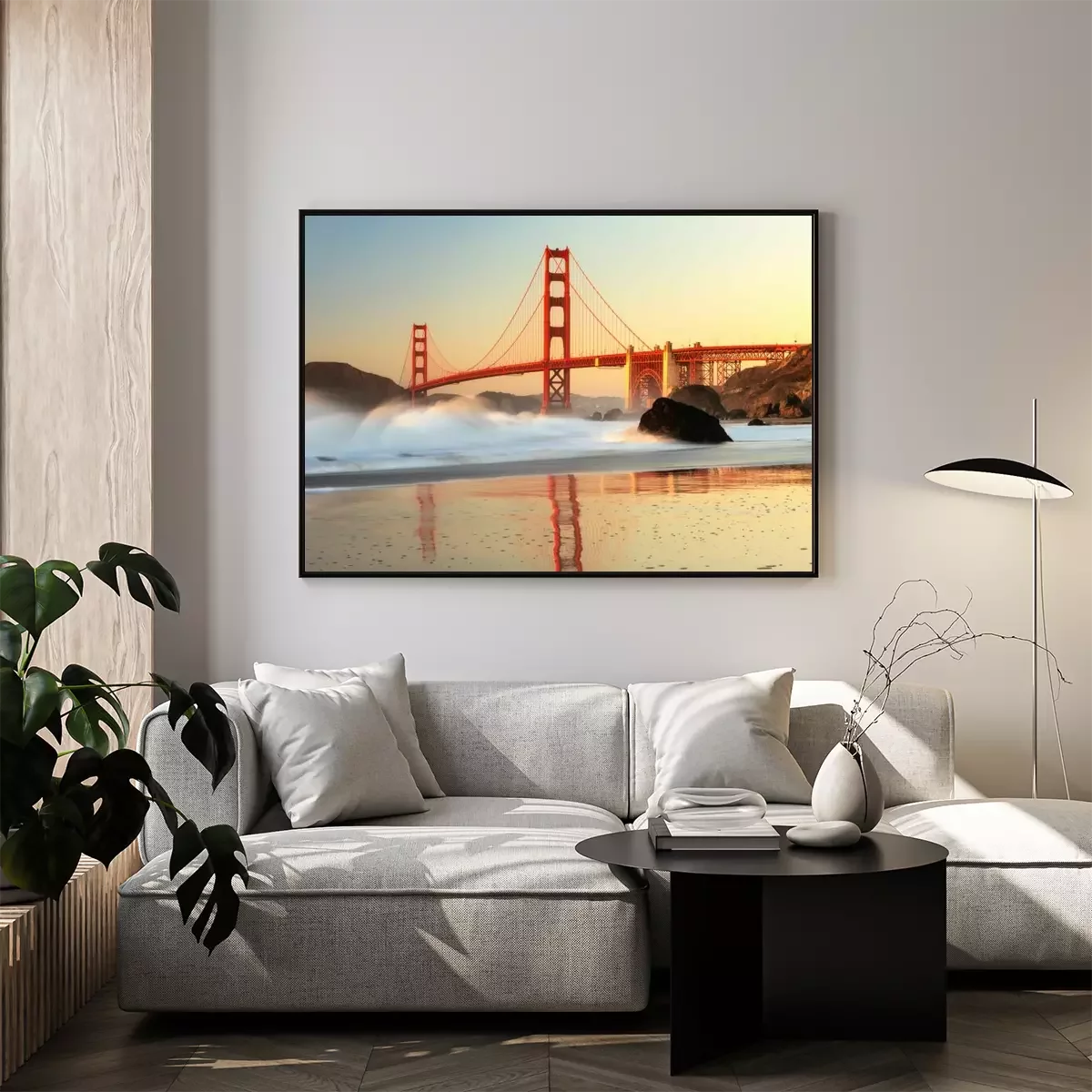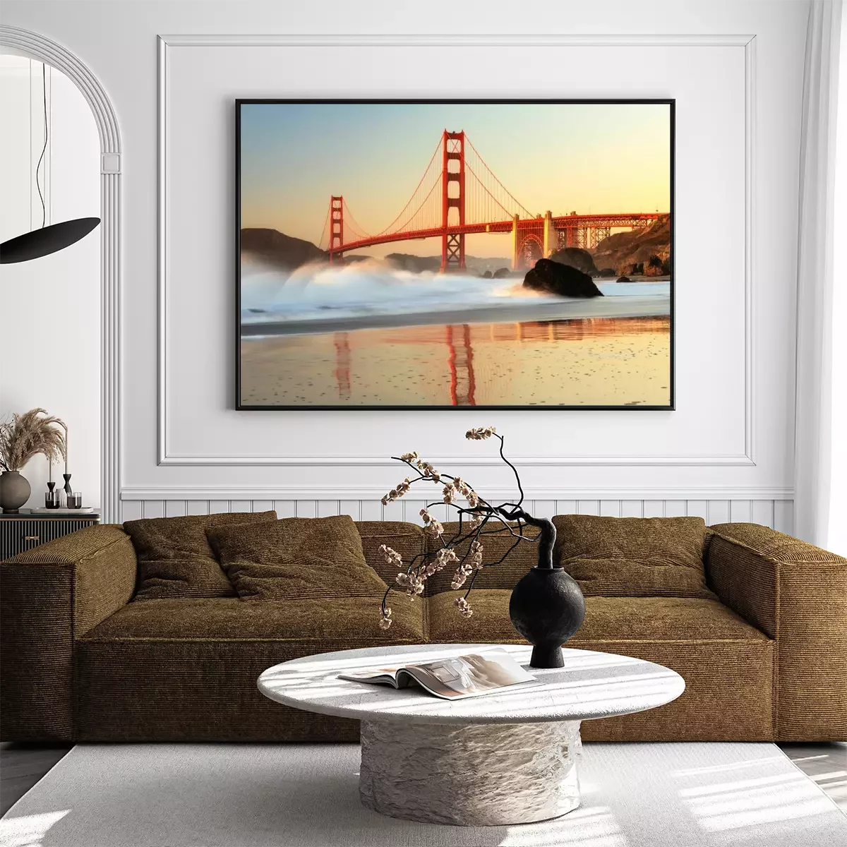 Poster: De Golden Gate Bridge in San Francisco met oceaan golven