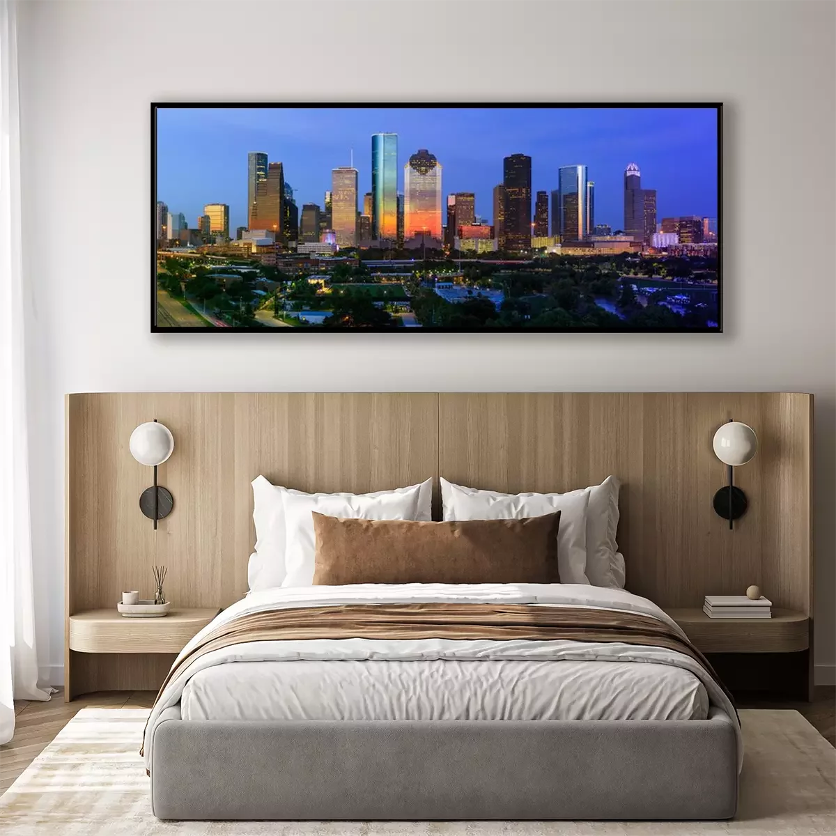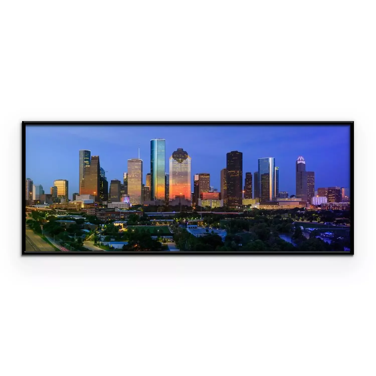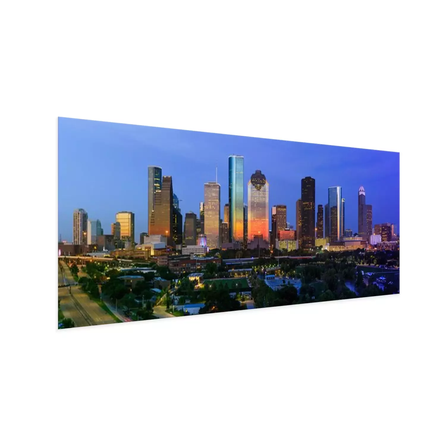 Poster: De horizon van Houston bij zonsondergang