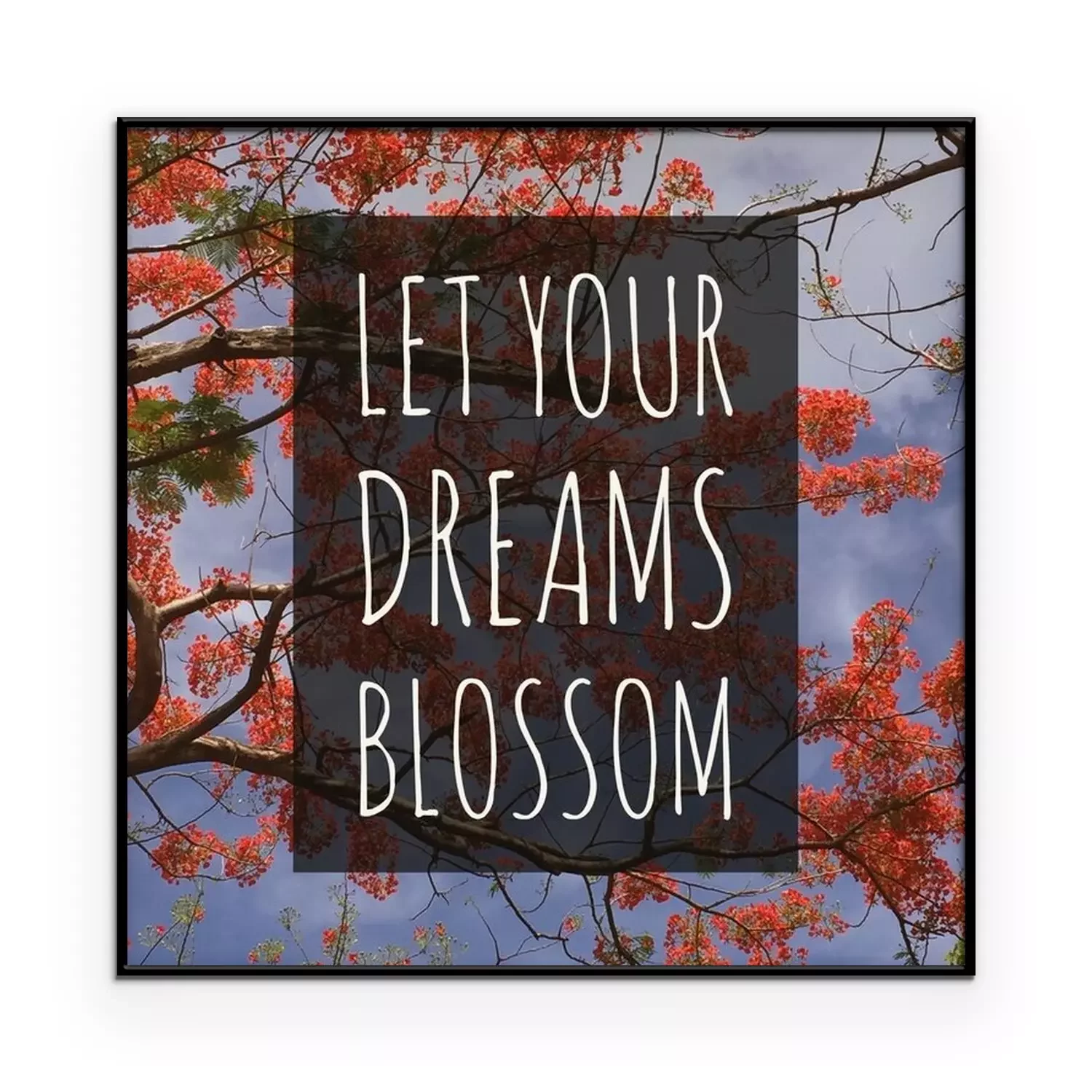 Poster De inscriptie over dromen tegen de achtergrond van bomen