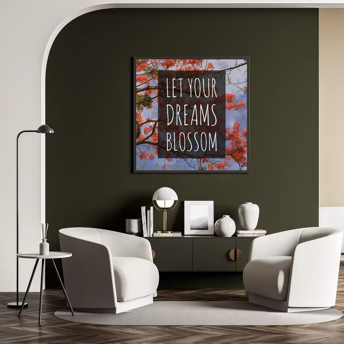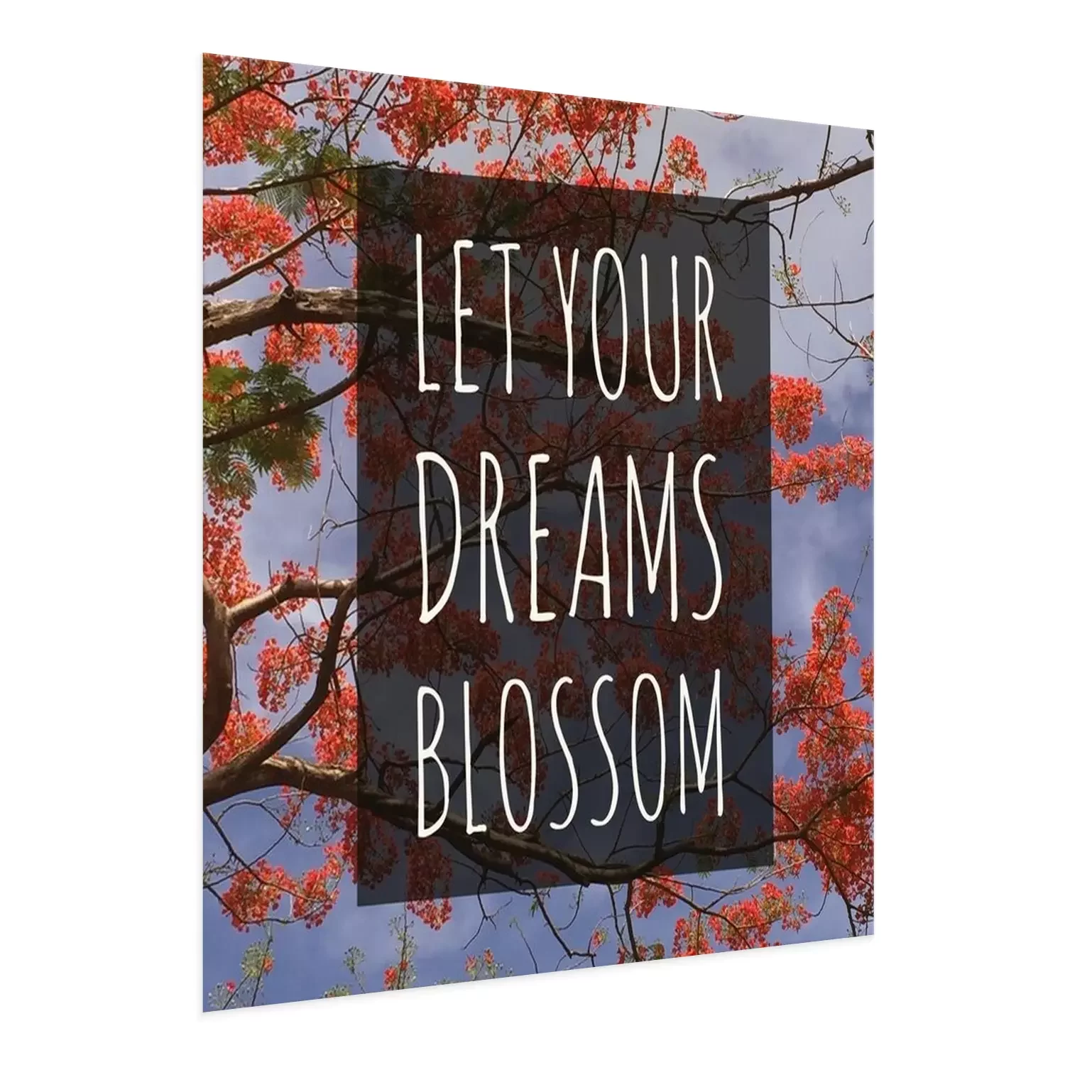 Poster: De inscriptie over dromen tegen de achtergrond van bomen