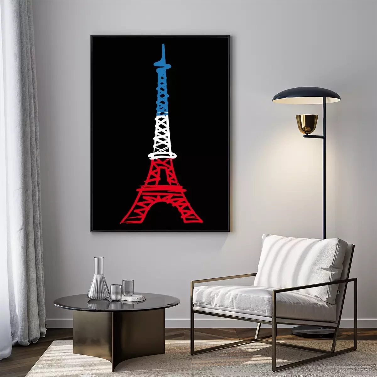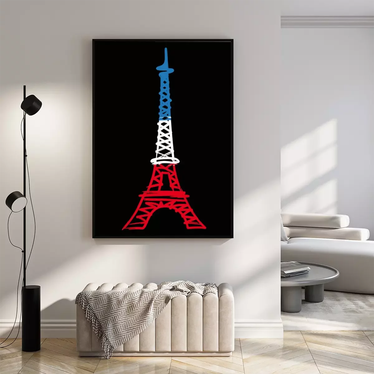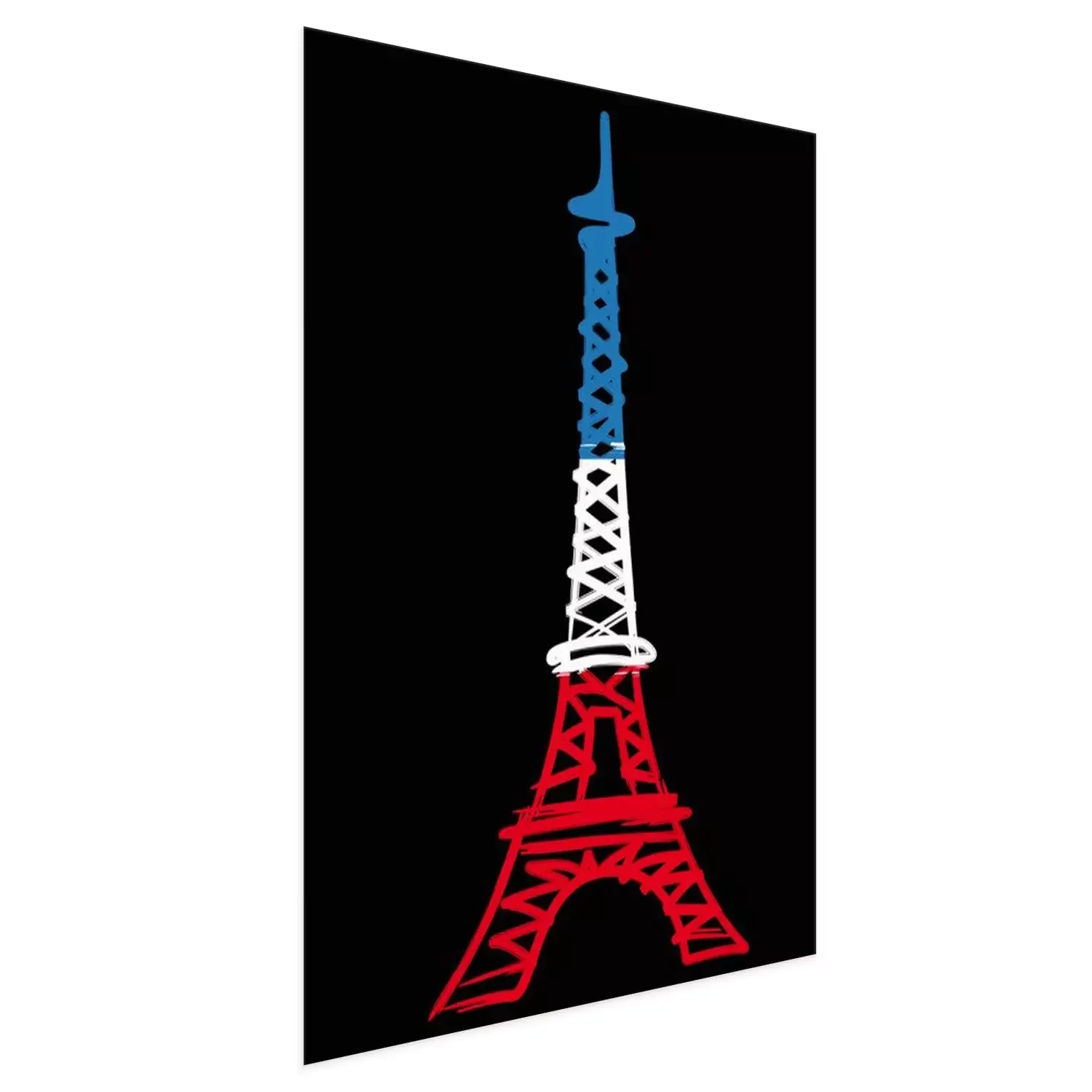 Poster: De kleuren van de vlaggen van Parijs en de Eiffeltoren