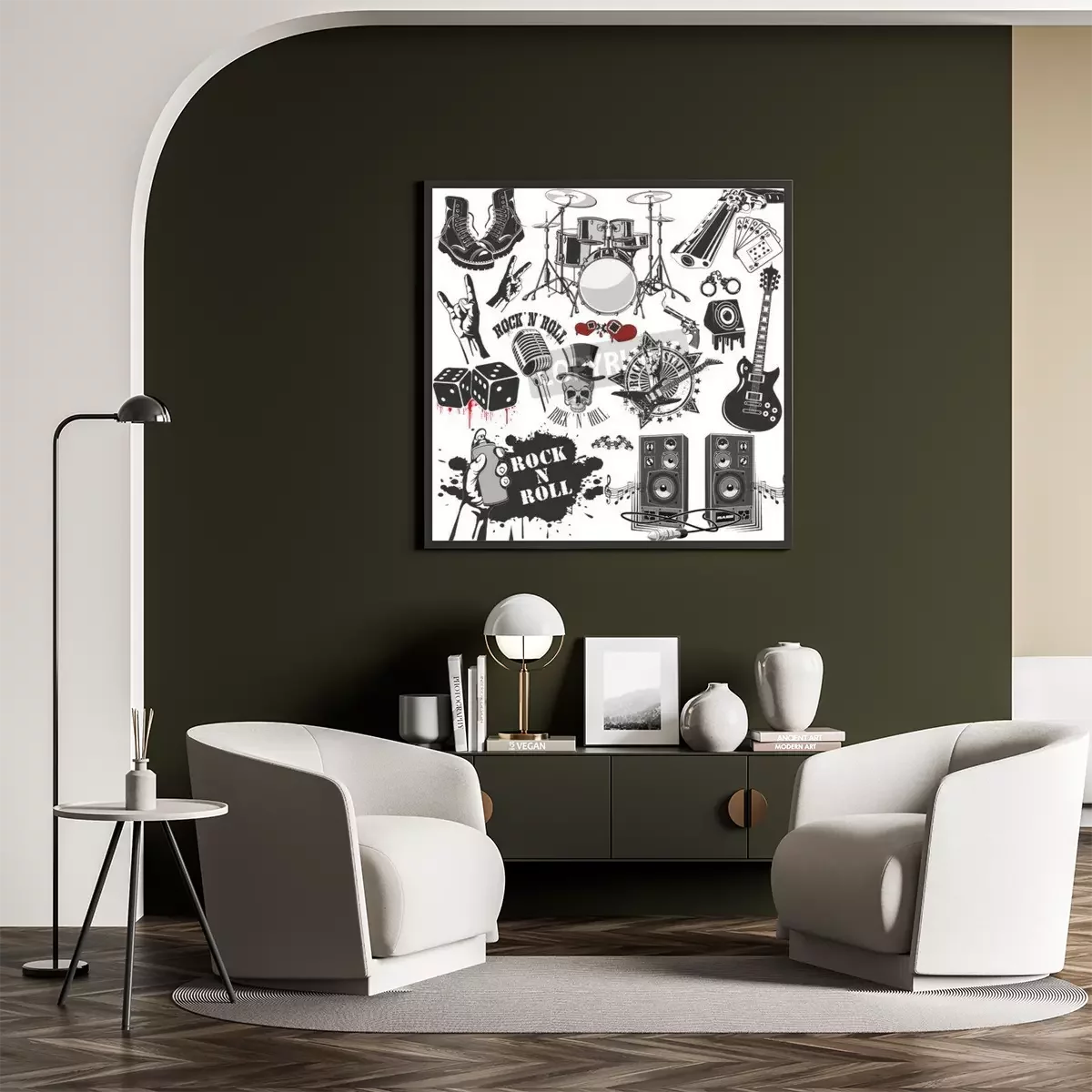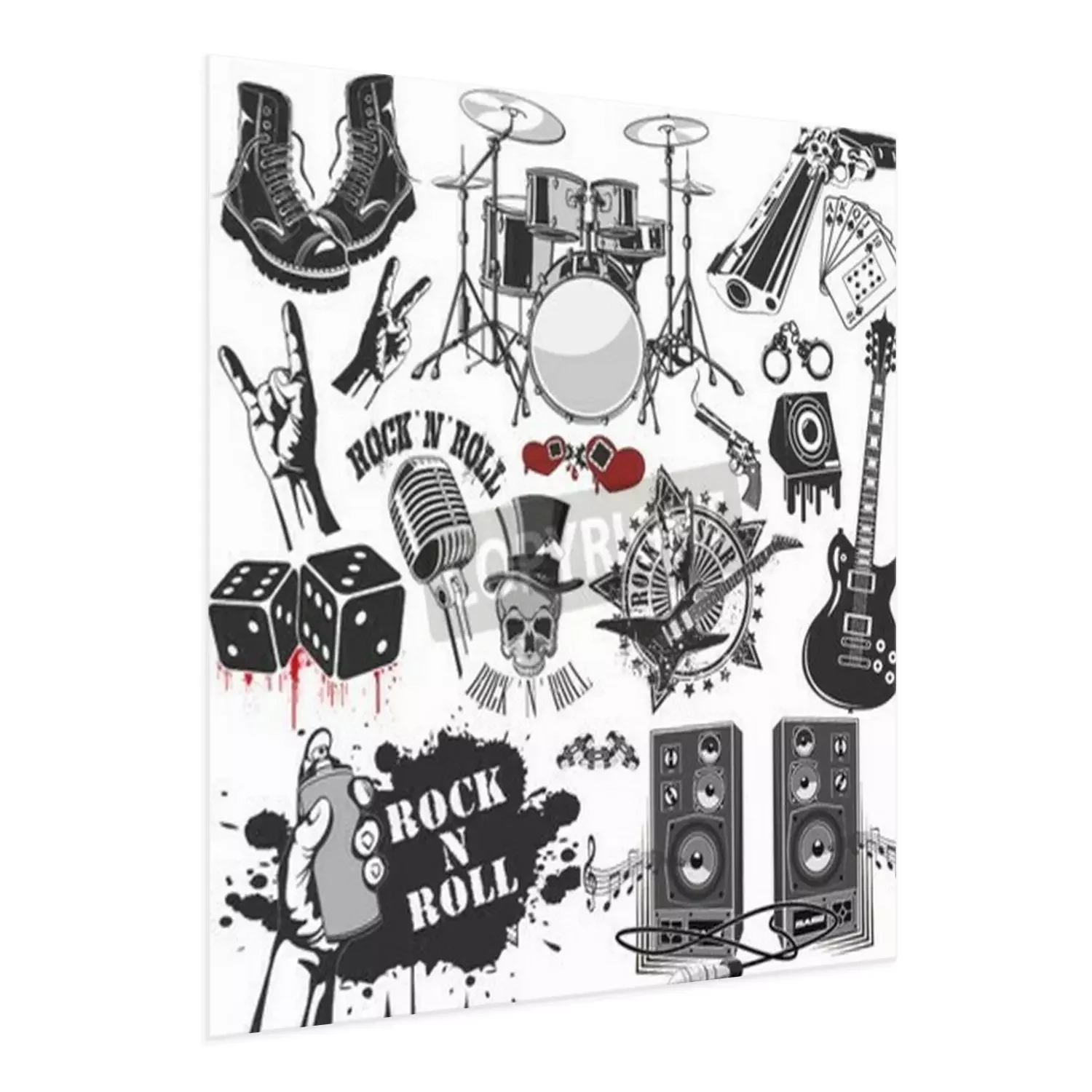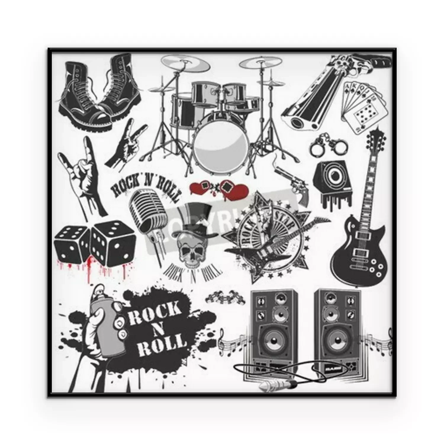 Poster De vector afbeelding van set vector symbolen gerelateerd aan rock and roll