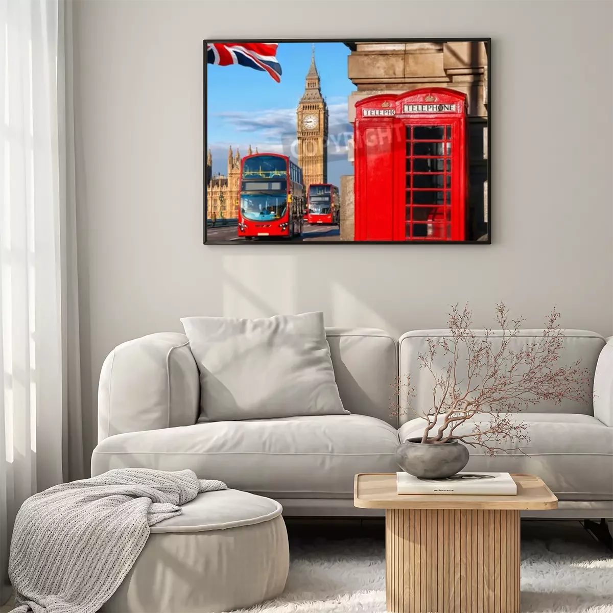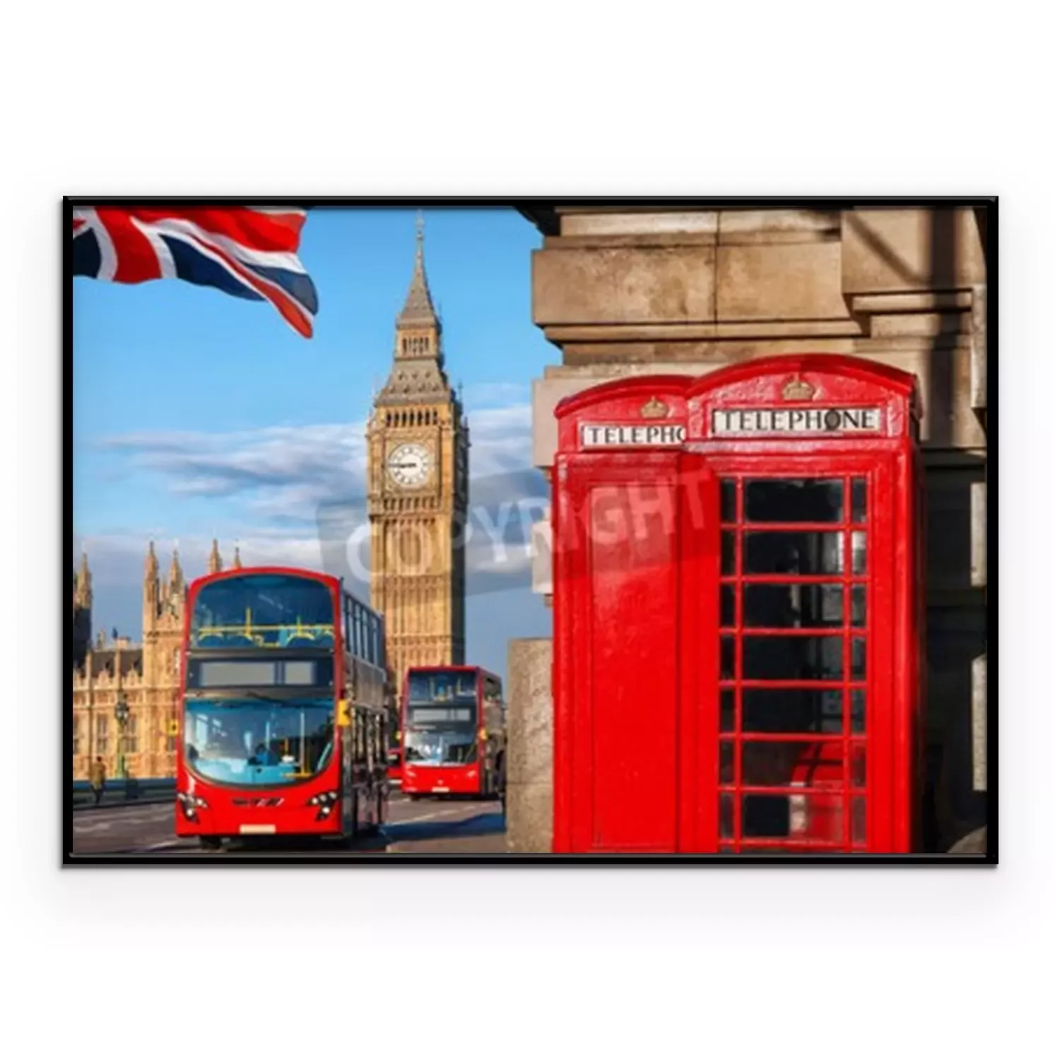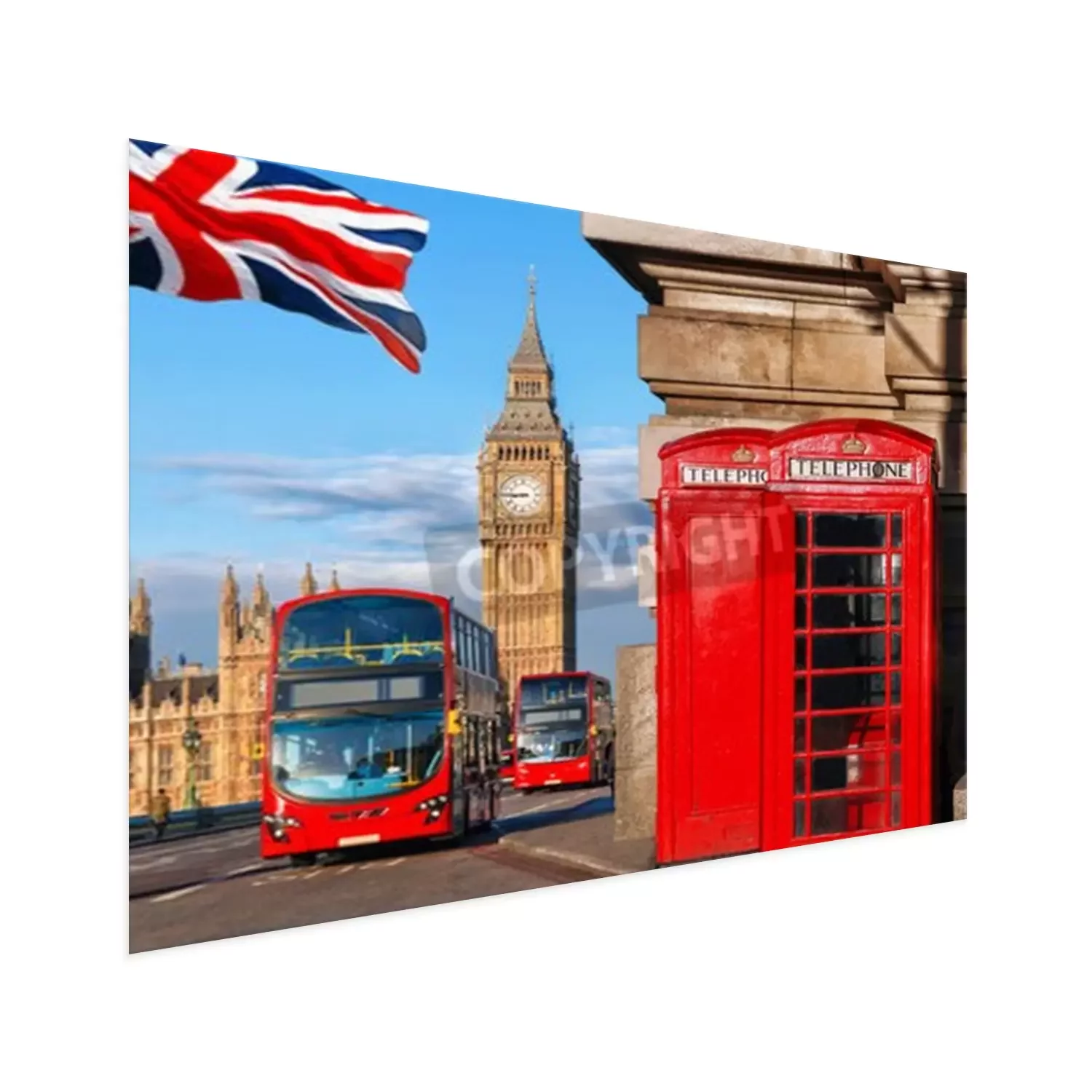 Poster: De vlag van Londen en de bussymbolen van de Big Ben