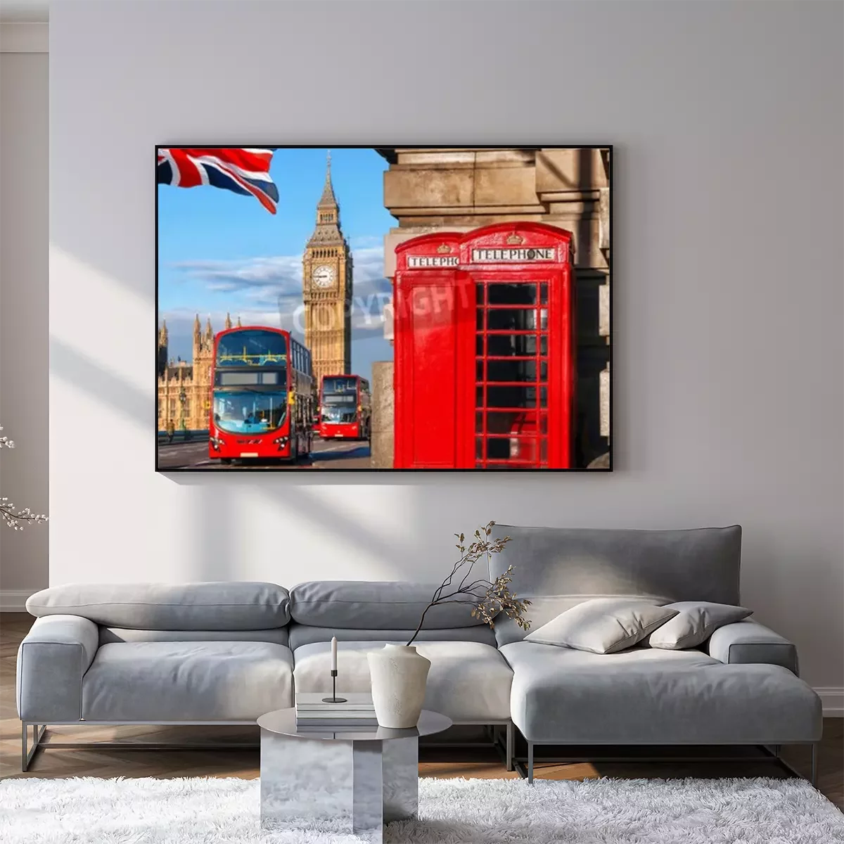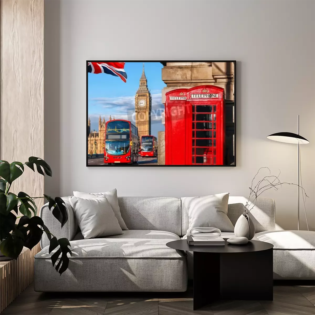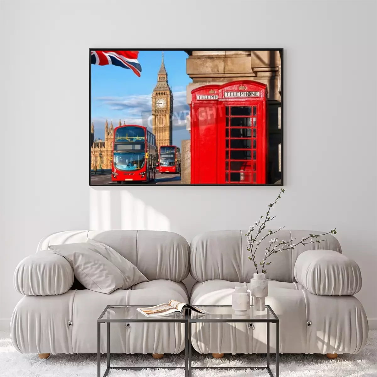 Poster: De vlag van Londen en de bussymbolen van de Big Ben