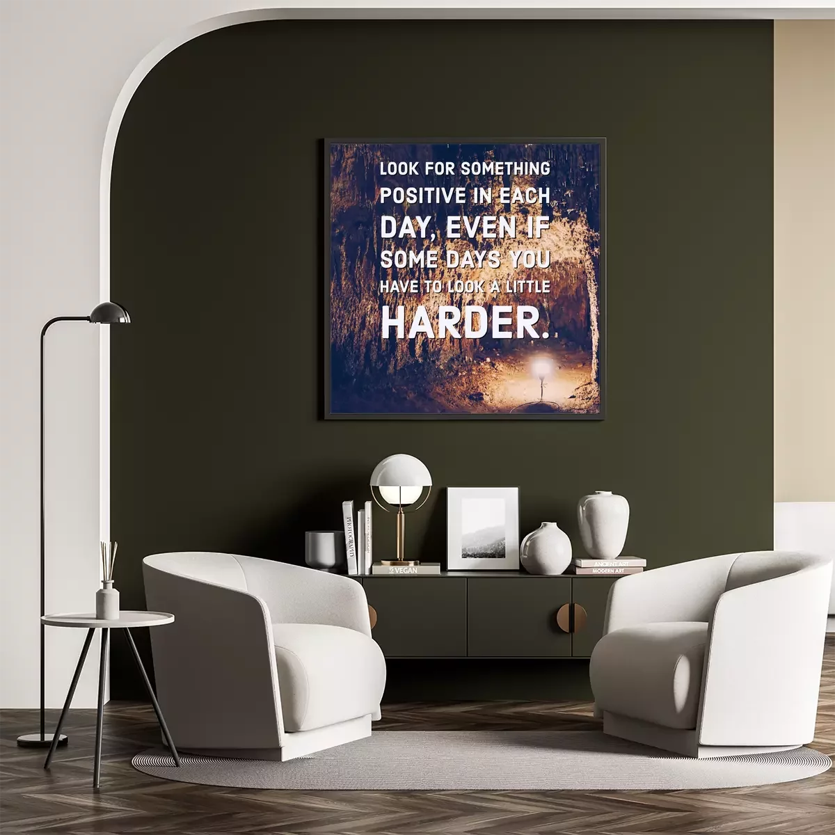 Poster: De zin tegen de achtergrond van de foto van de grot