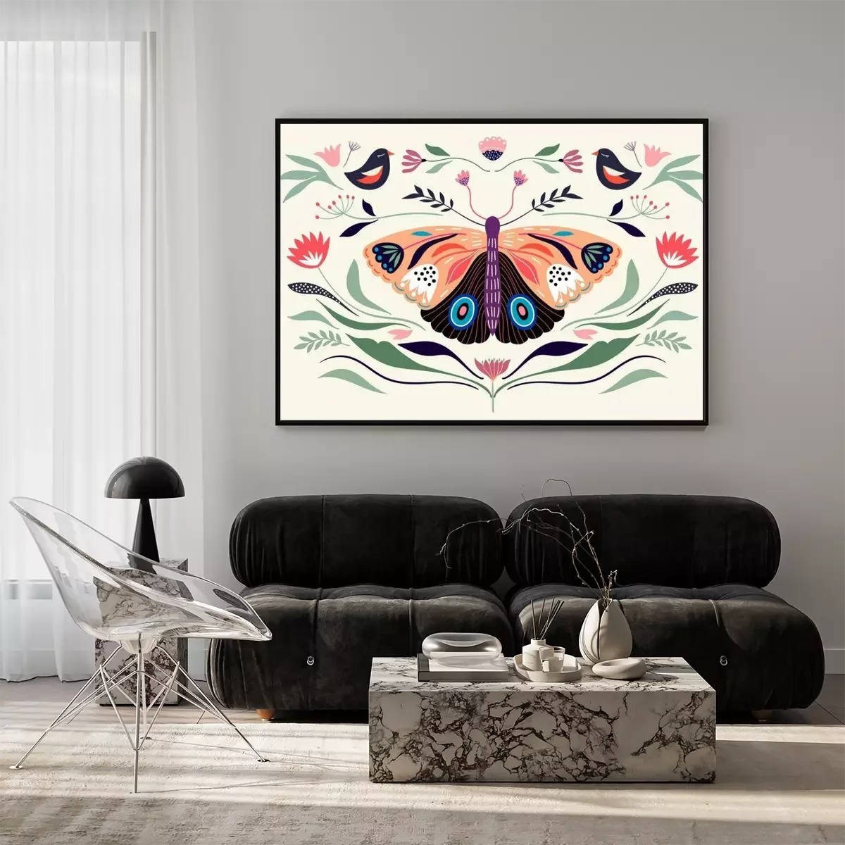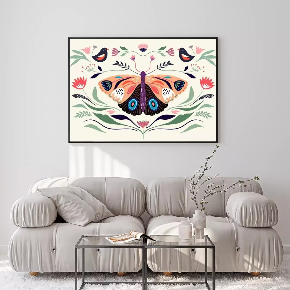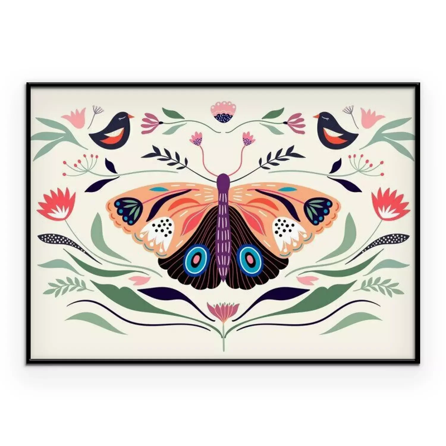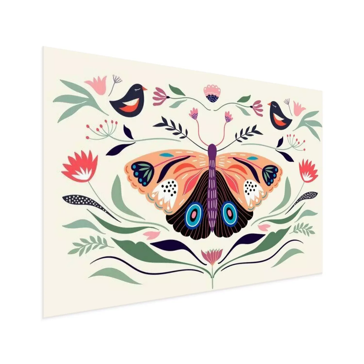 Poster Decorative poster/banner/composition with floral elements, butterfly,different flowers and plants