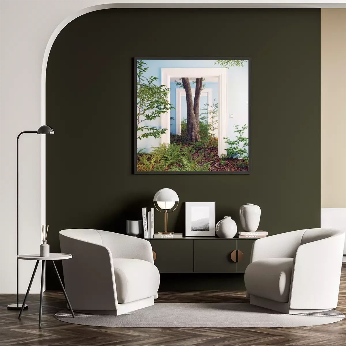 Poster: deep forest floor in the room interior.