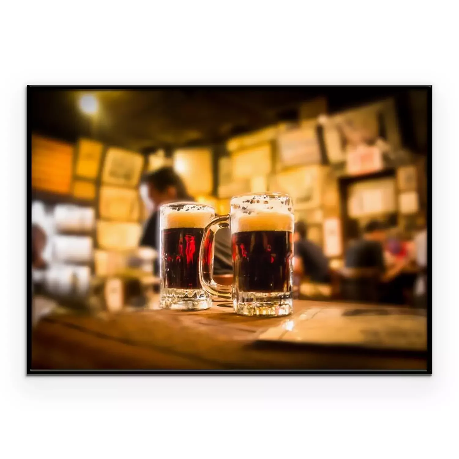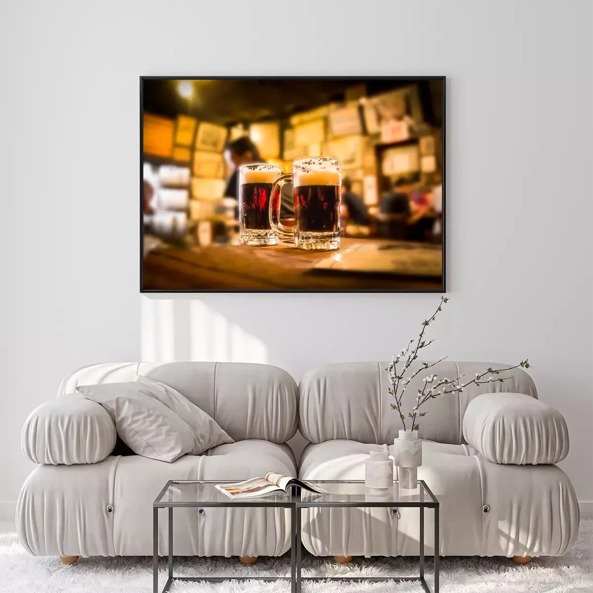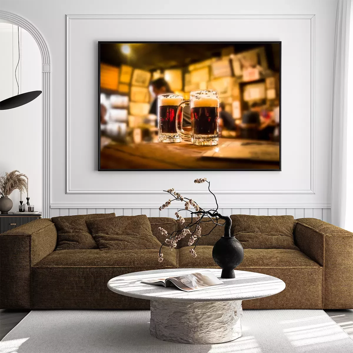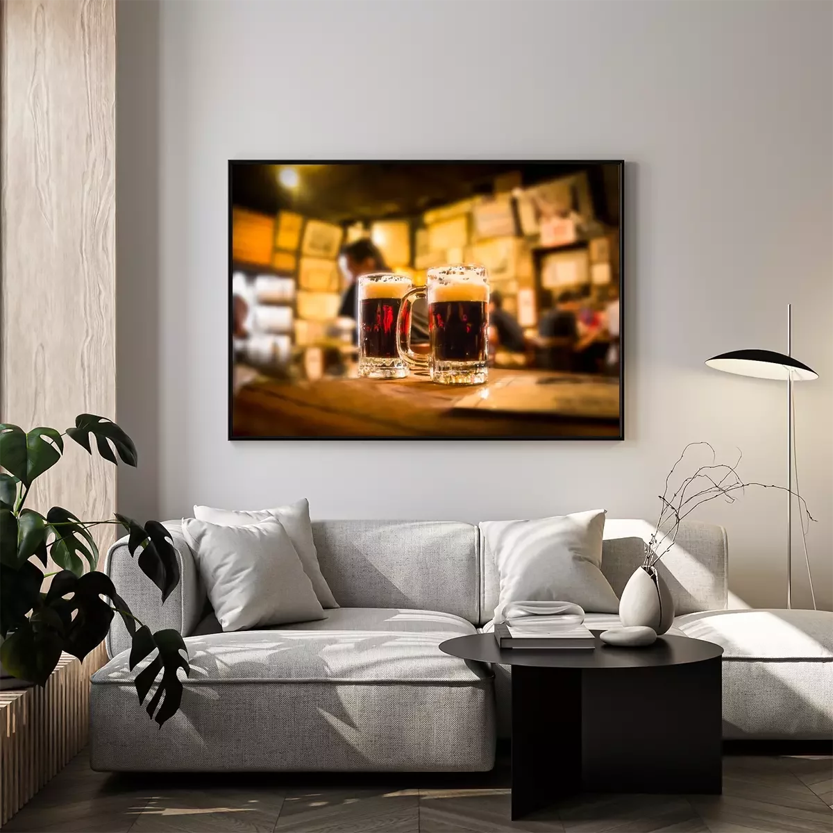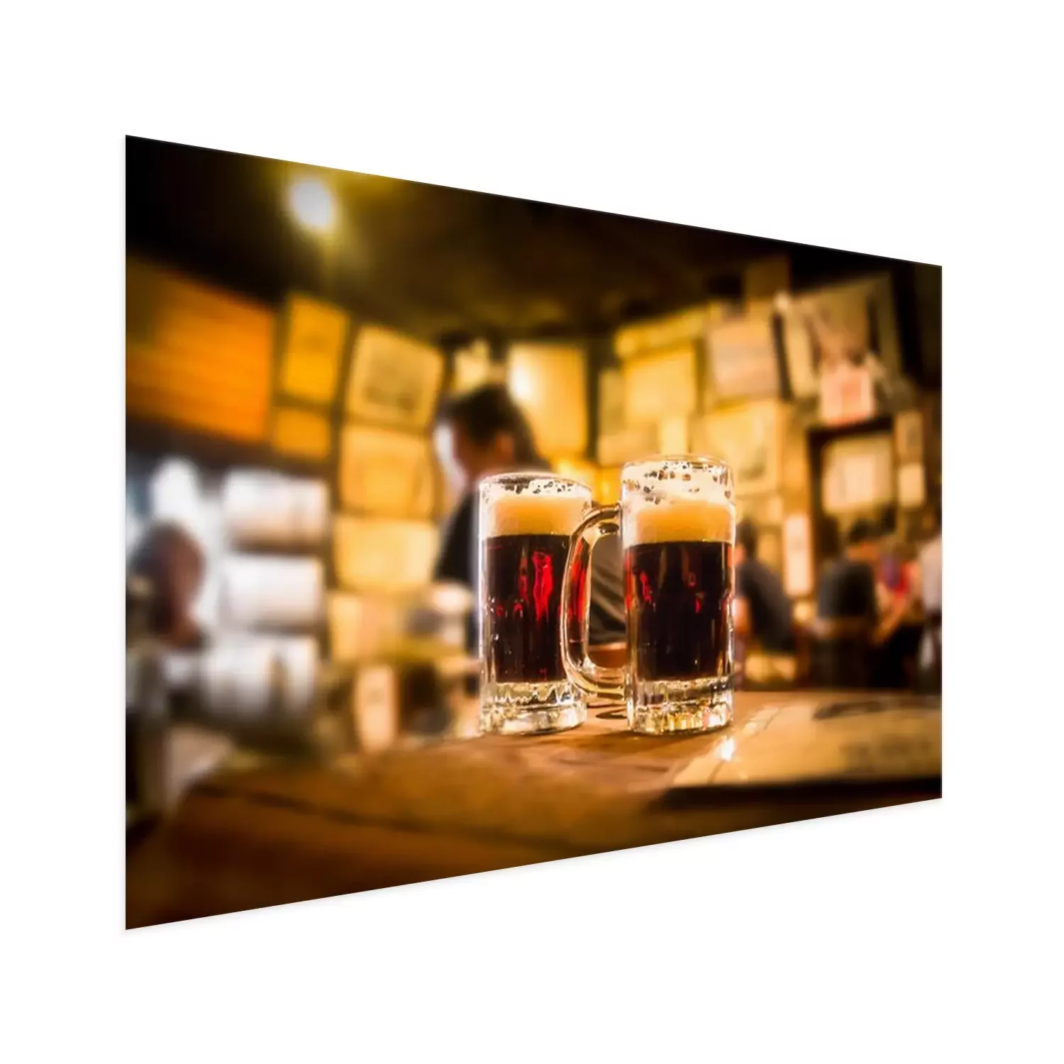 Poster: Defocused bar vervagen met 2 mokken bier in focus