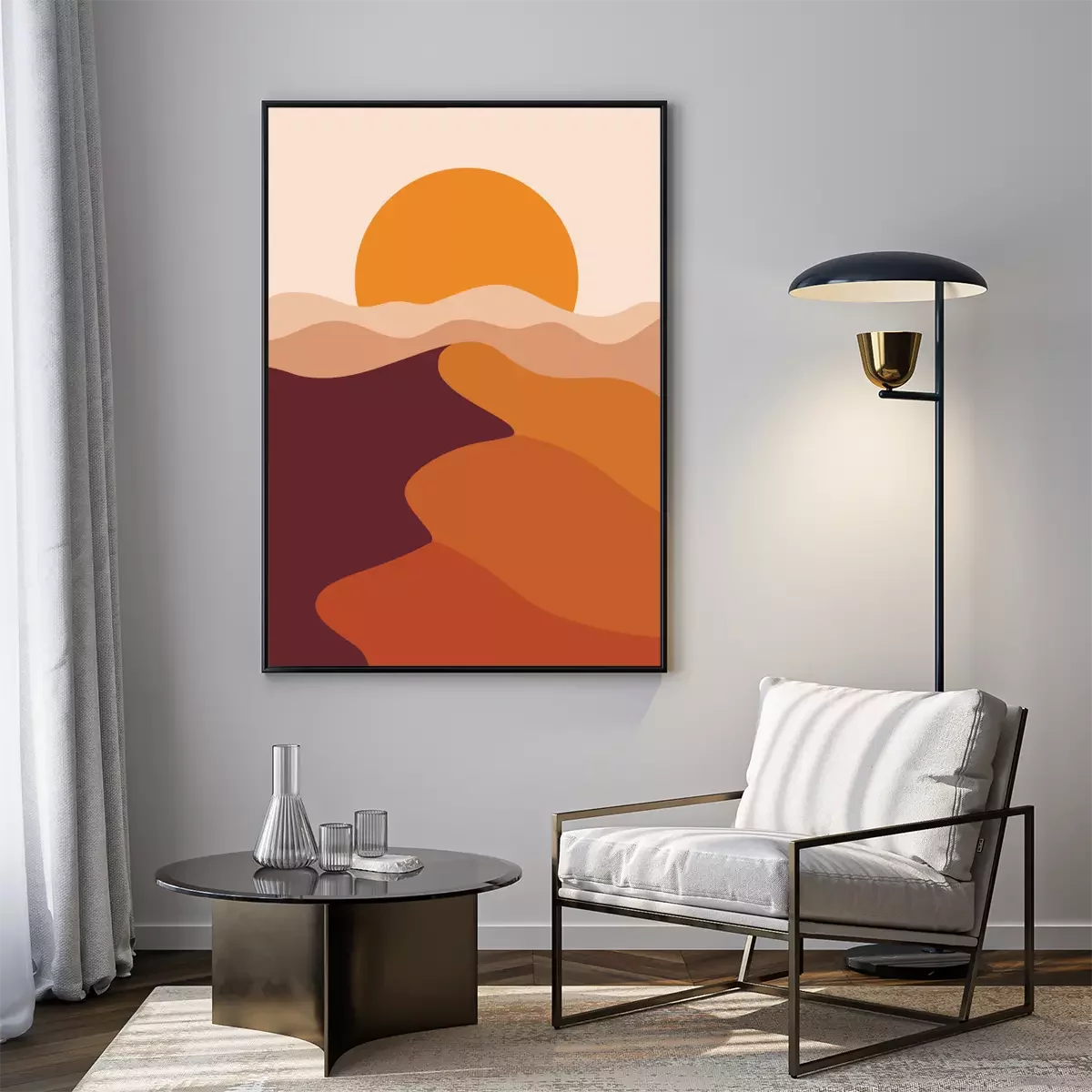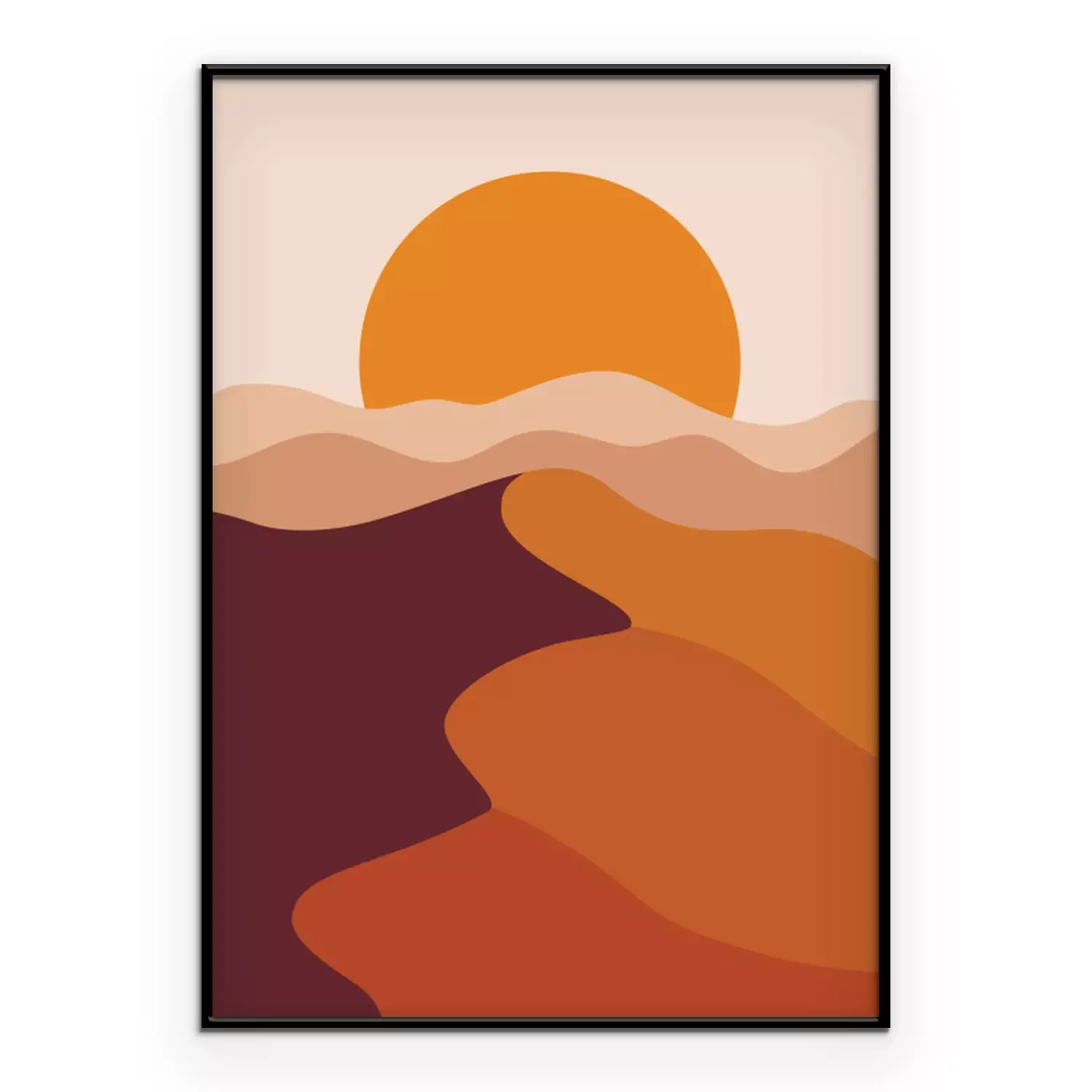 Landscape poster with desert sand hills. Nature abstract wavy shapes. Sunset backdrop. Vector illustration.