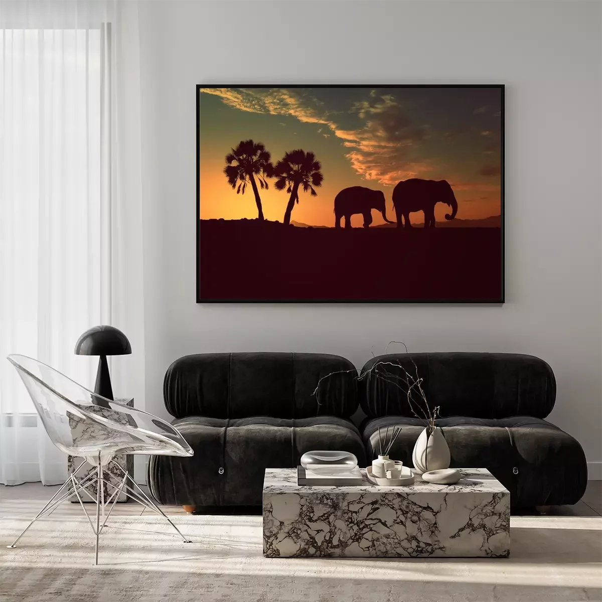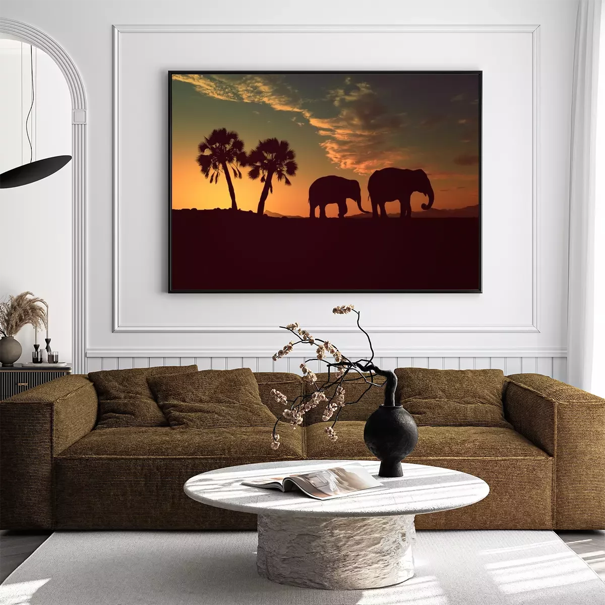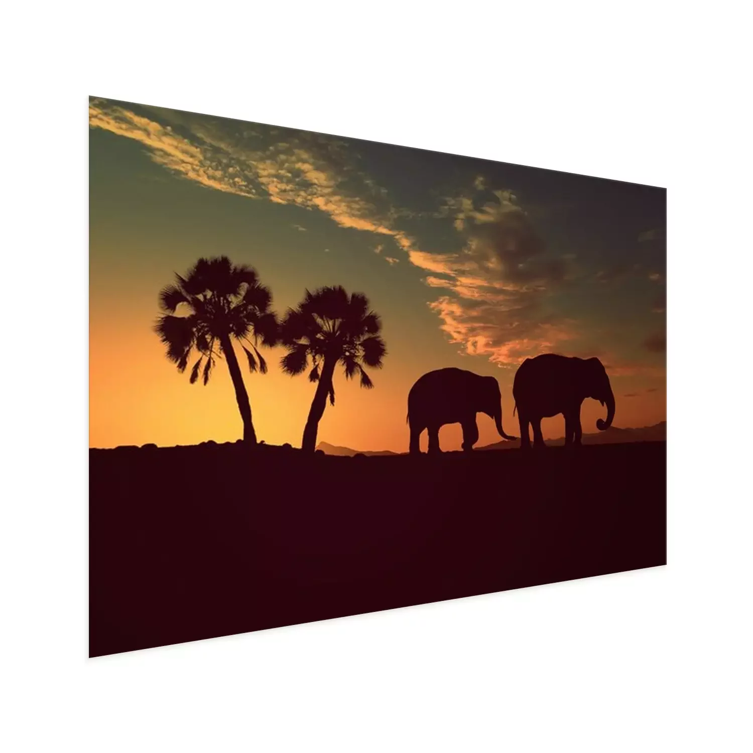 Poster: Dieren van Afrikaanse olifanten bij zonsondergang