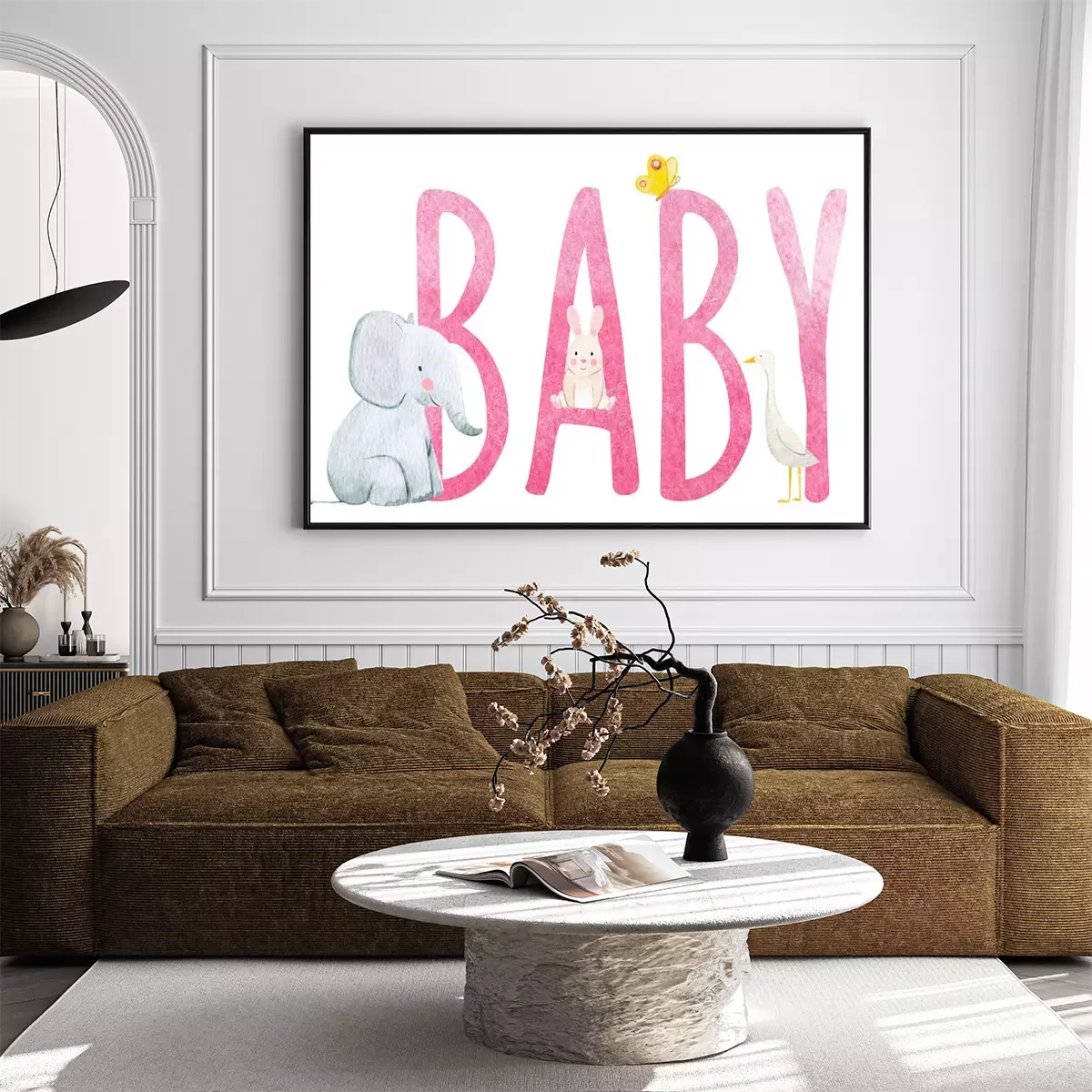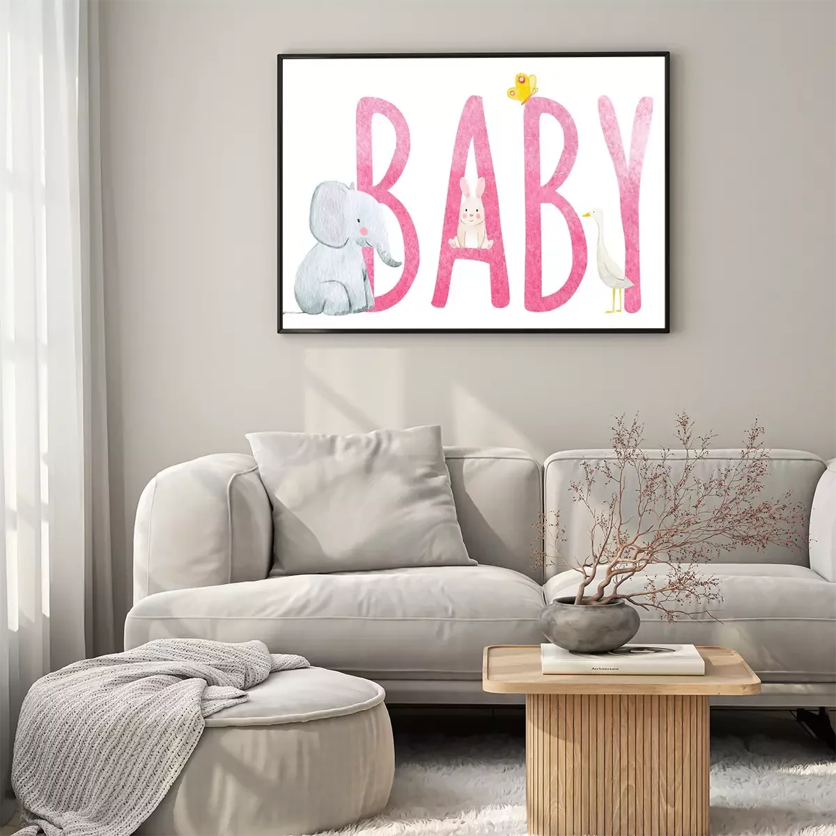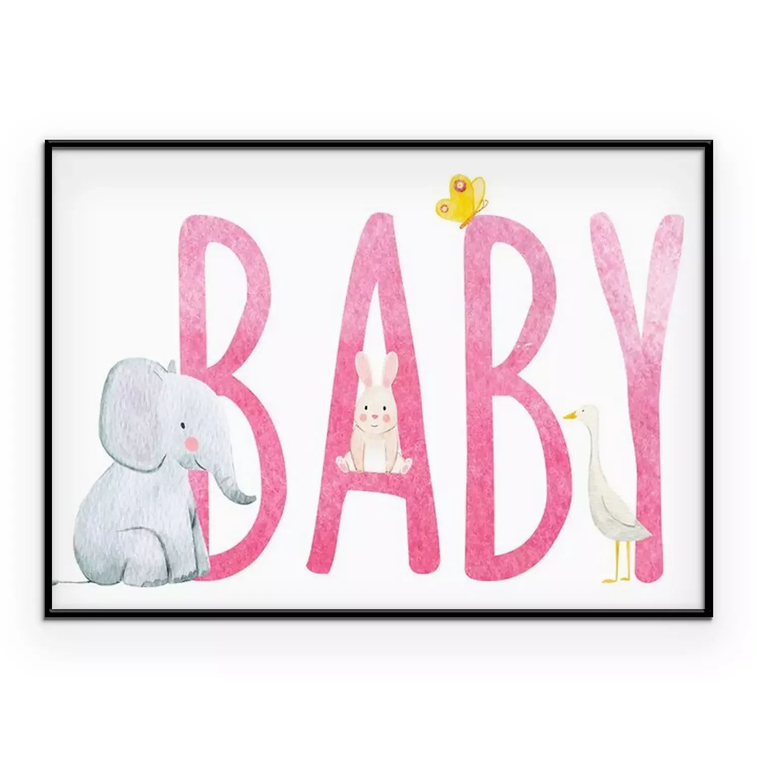 Poster: Dieren zittend op een roze inscriptie "kind"