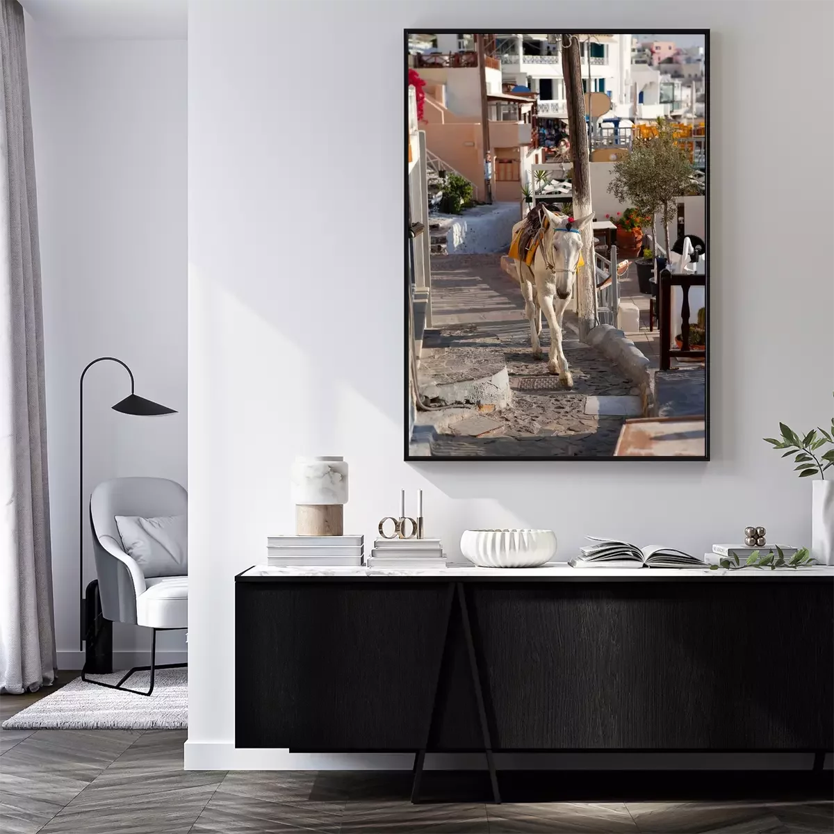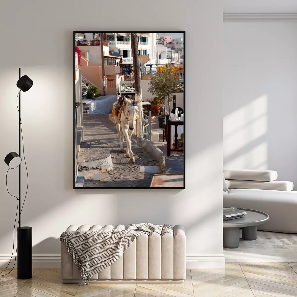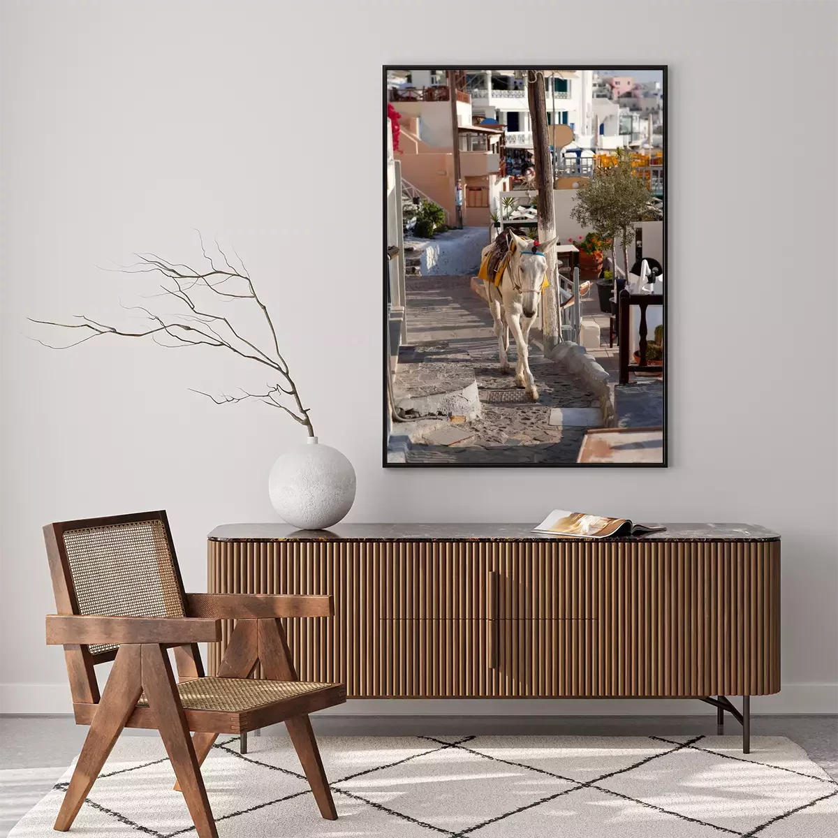 Poster: Dierlijke ezel tussen de straten van de stad