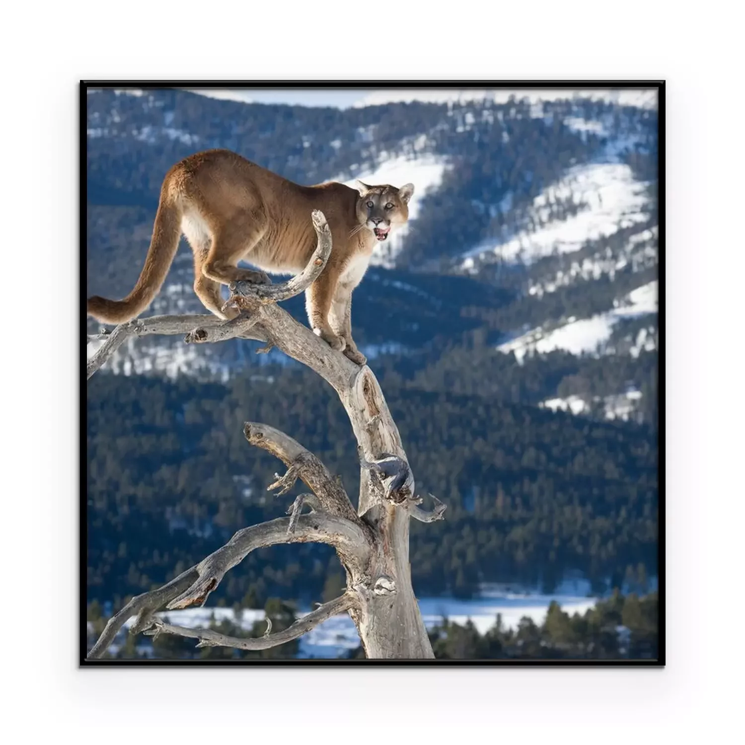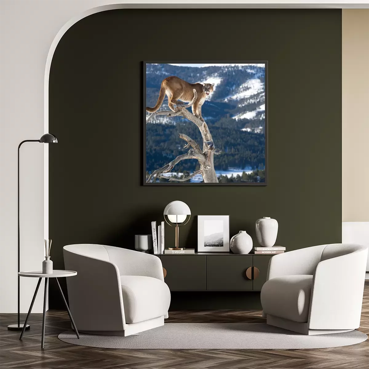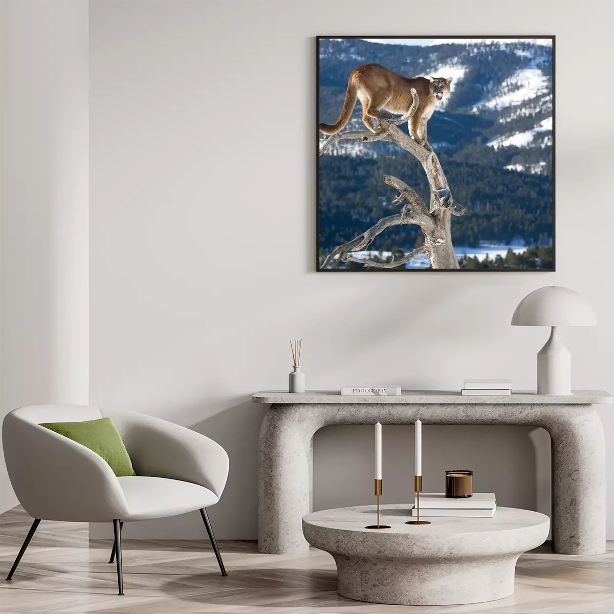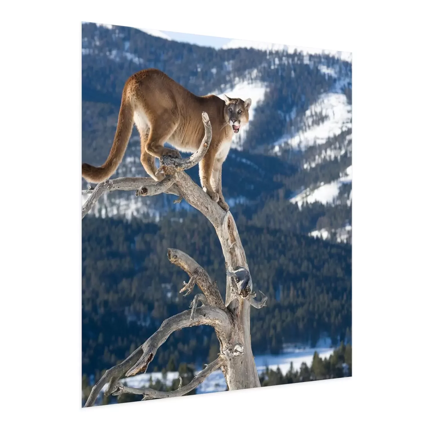 Poster: Dierlijke leeuw op de achtergrond van de bergen