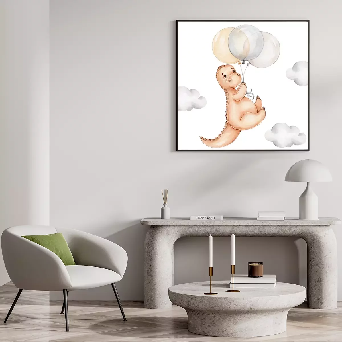 Poster: Dinosaurus met ballonnen