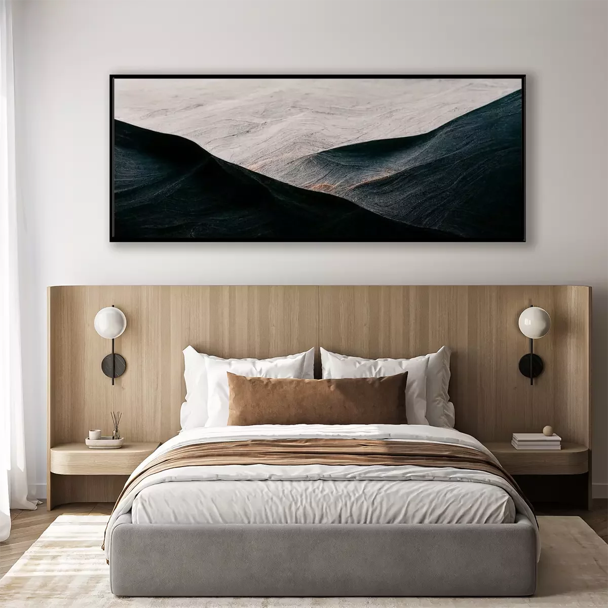 Poster: Donker abstract landschap van bergen