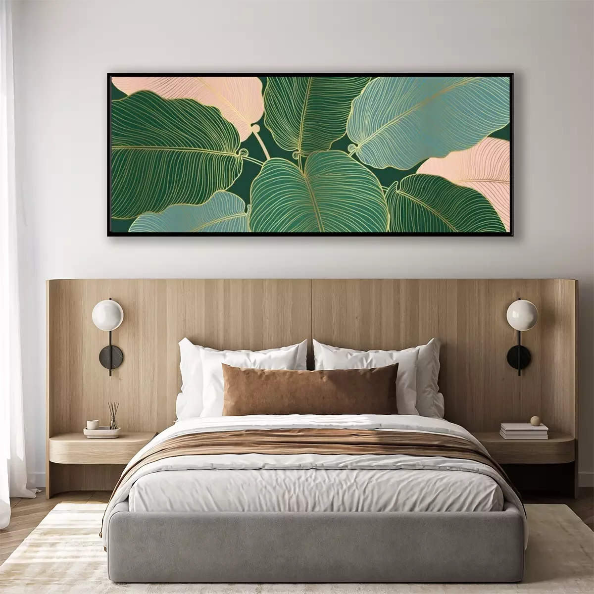 Luxury gold natural leaf background vector. Banana leaf line arts wallpaper vector illustration.