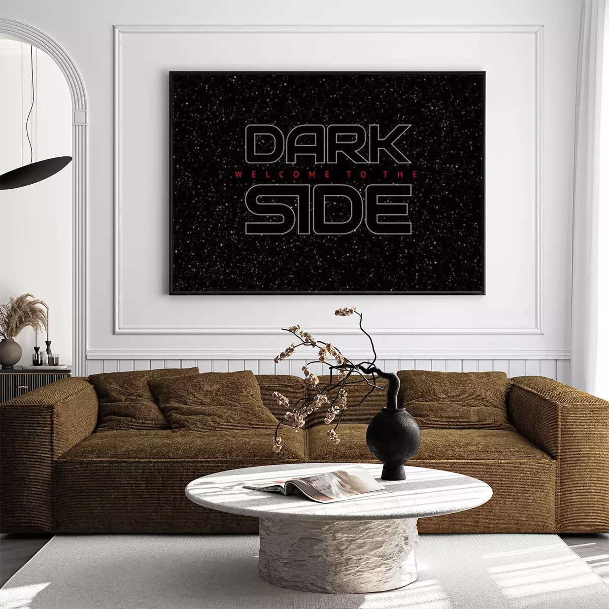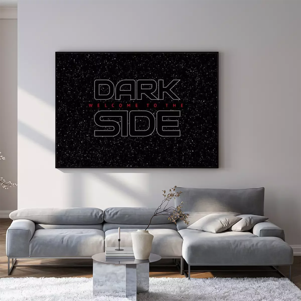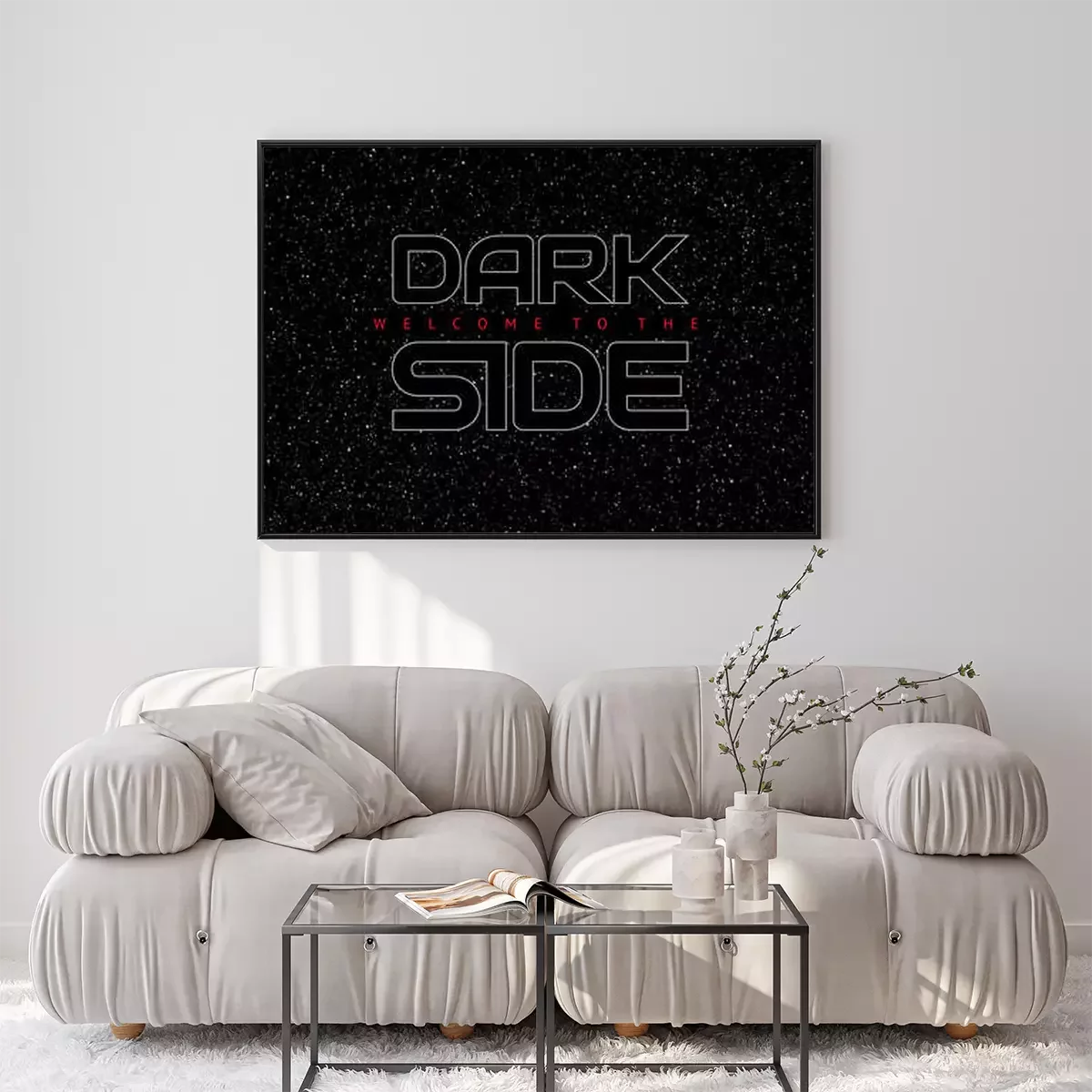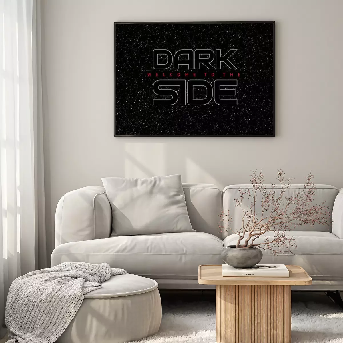 Poster: Donkere zij abstracte ruimte zwarte achtergrond - gloeiende brieven op de achtergrond van de sterhemel - vectorillustratie