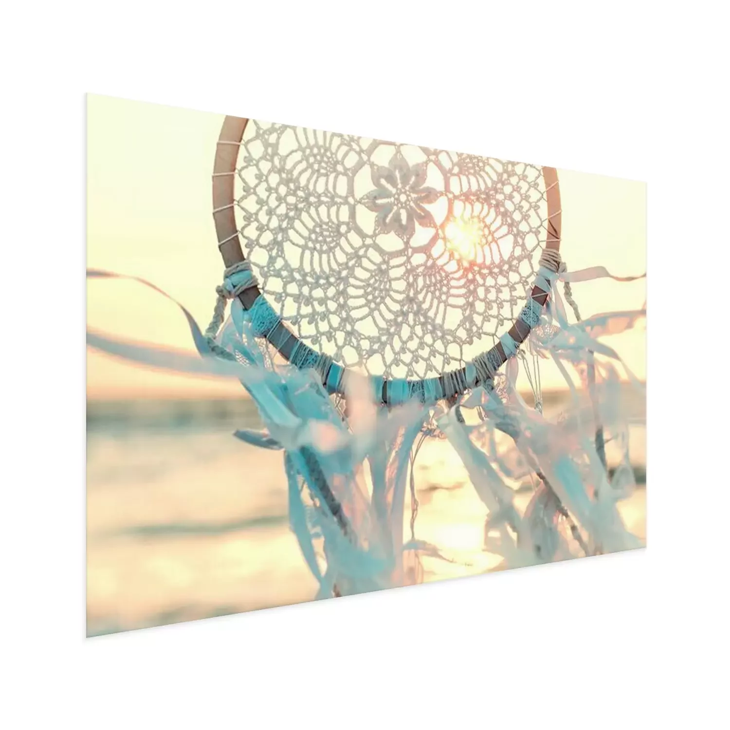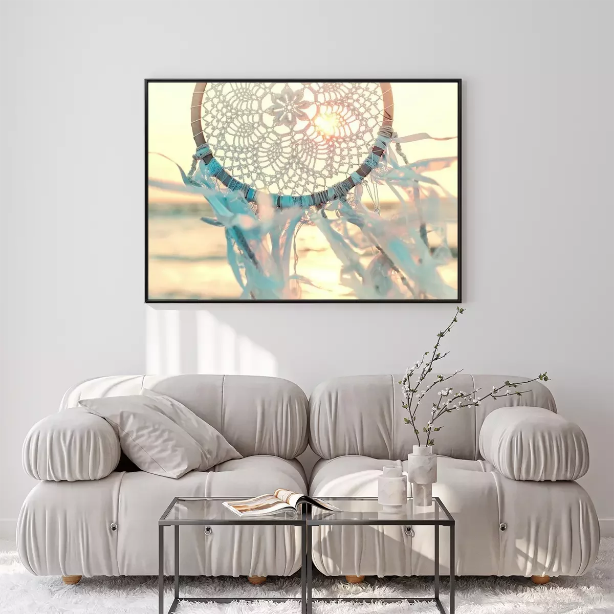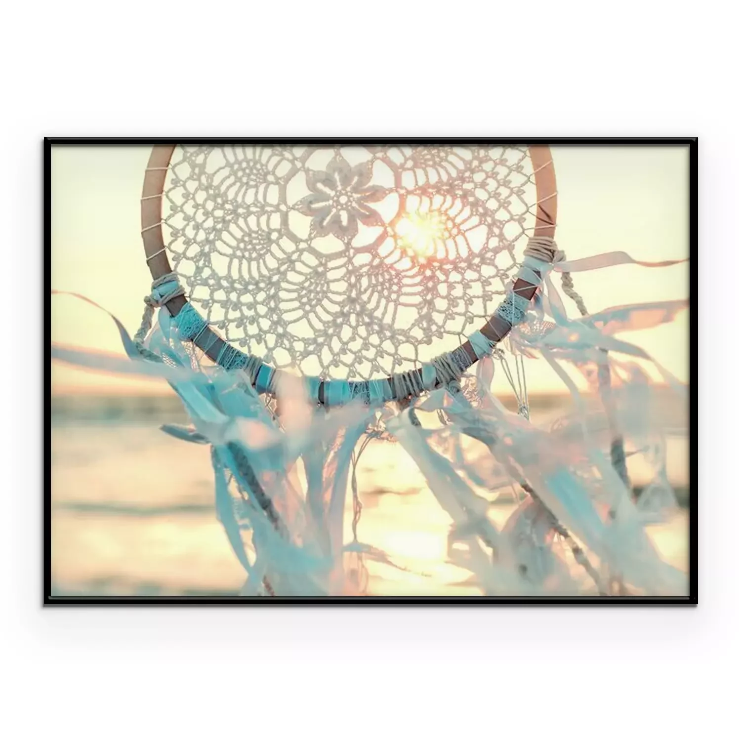 Poster: Dream catcher against sunrise. Handmade work is ethnic symbol