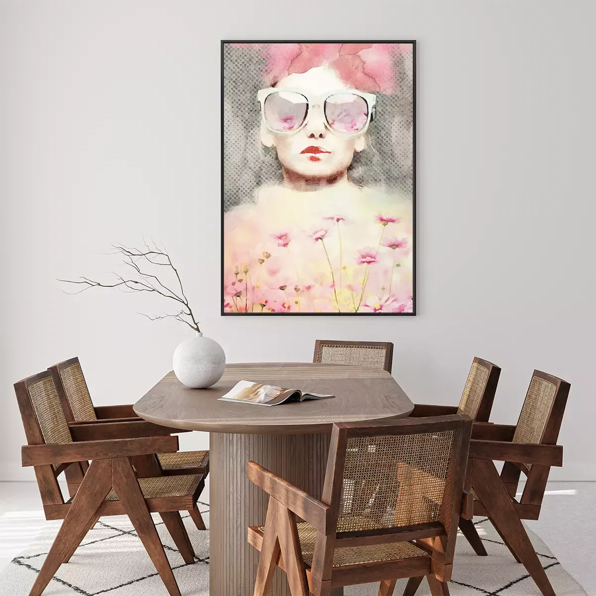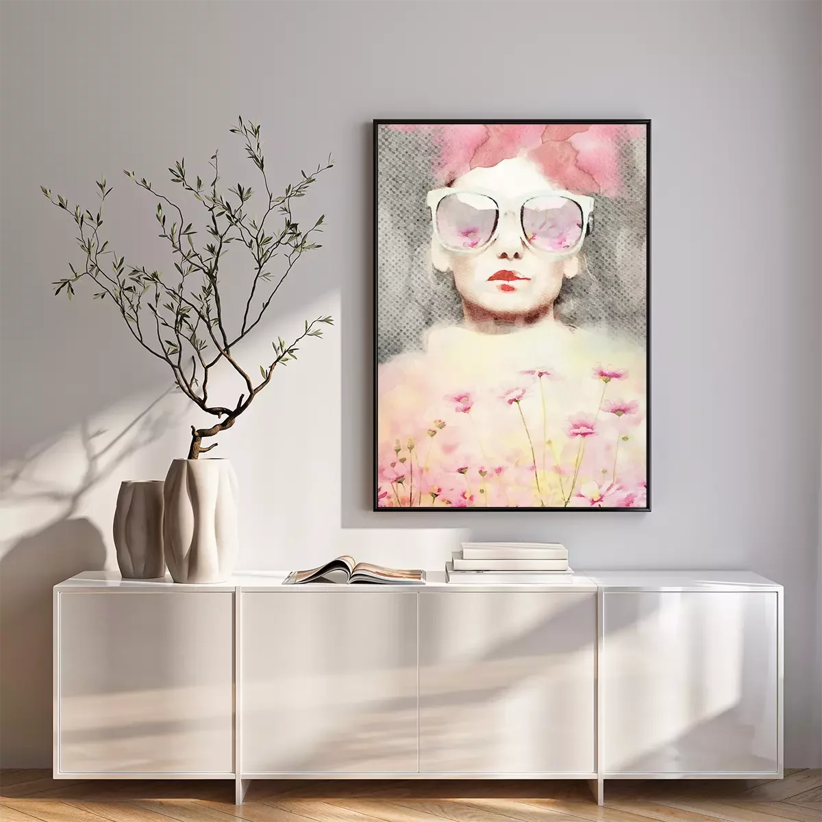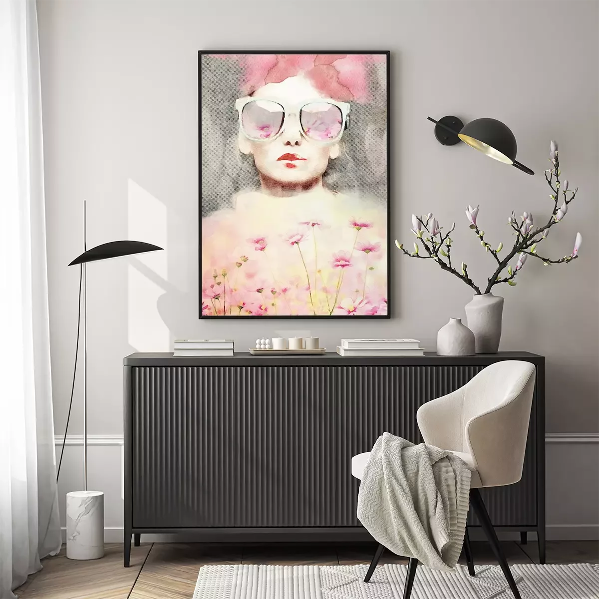 Poster Dream. Watercolor abstract portrait of girl. Fashion background.