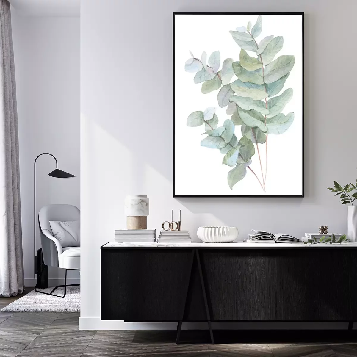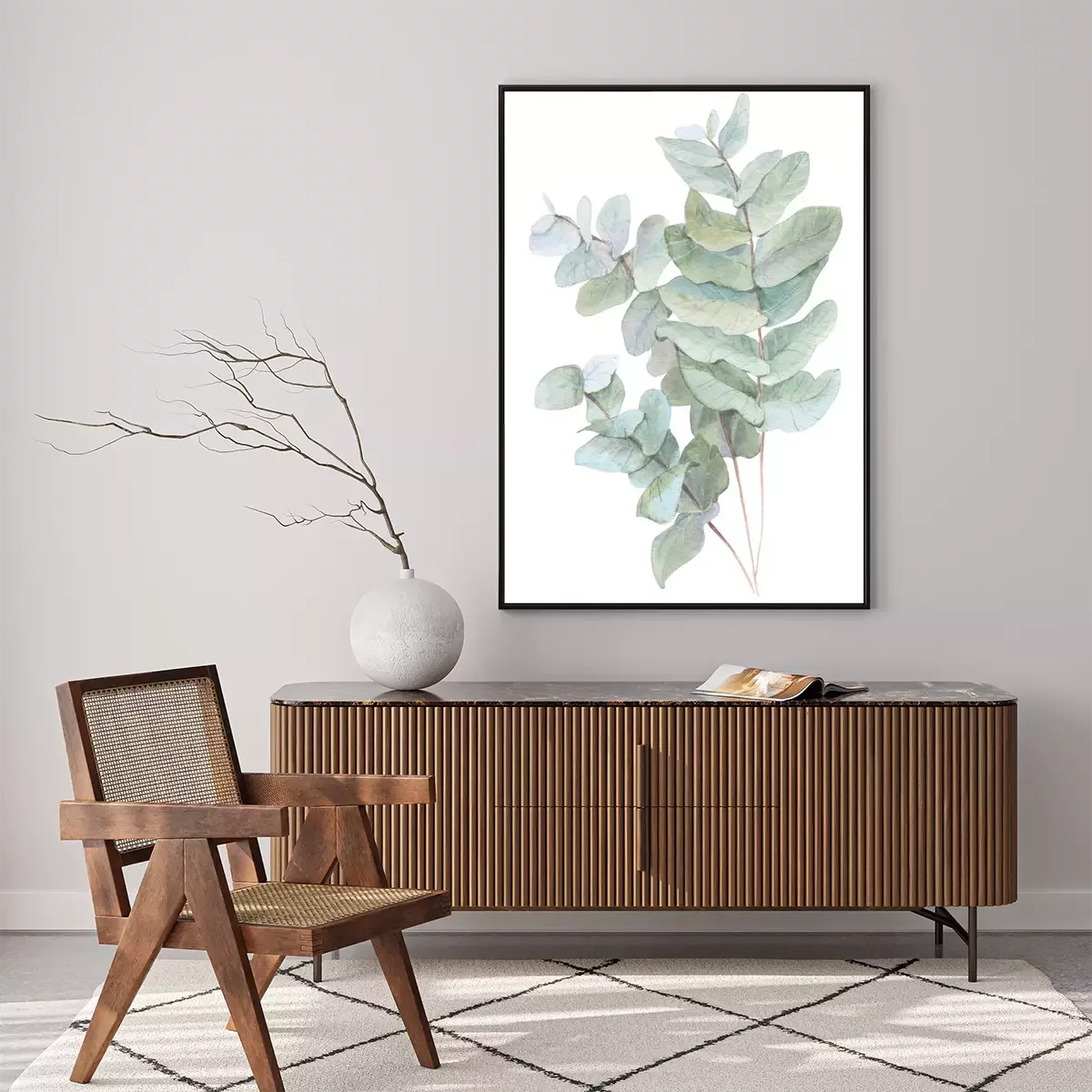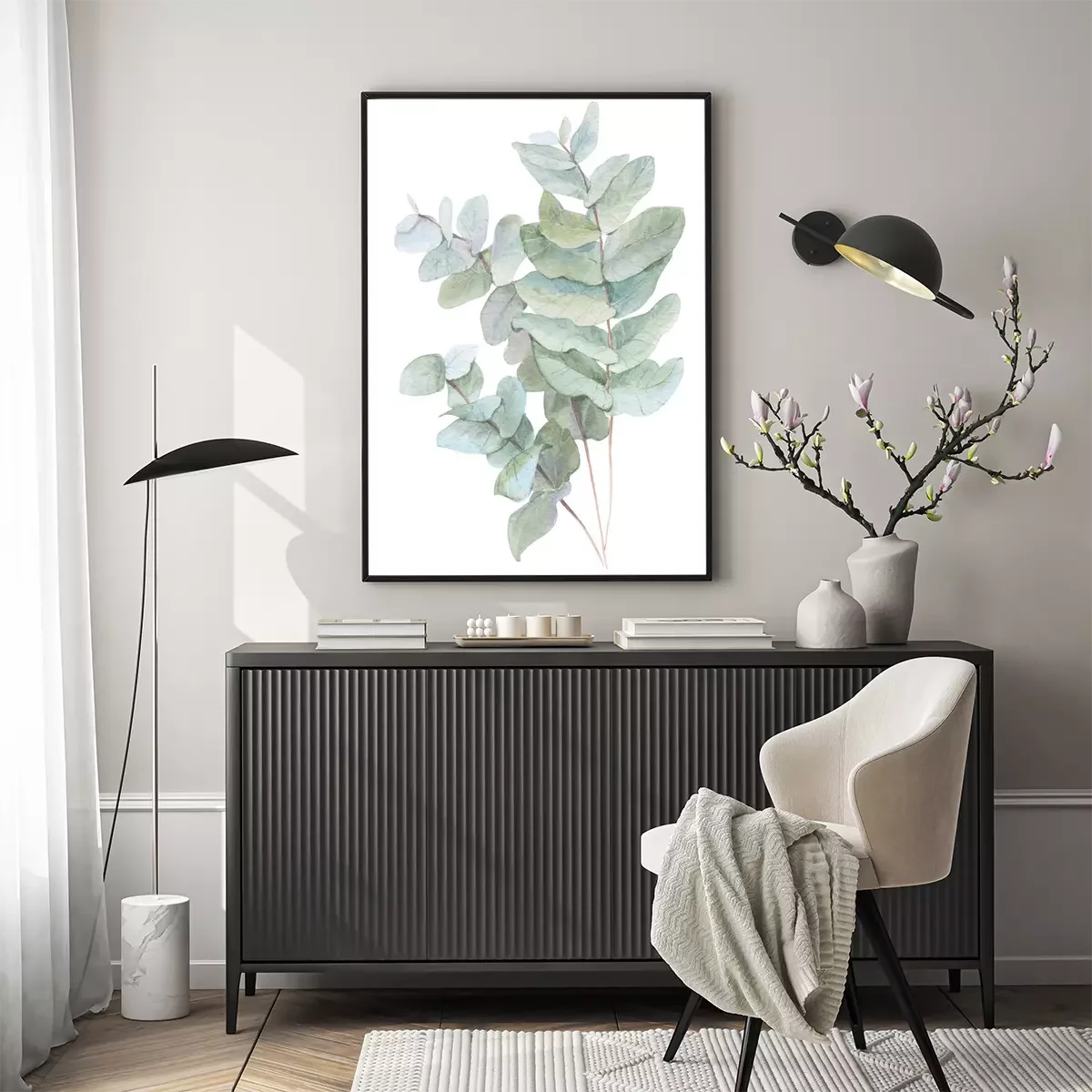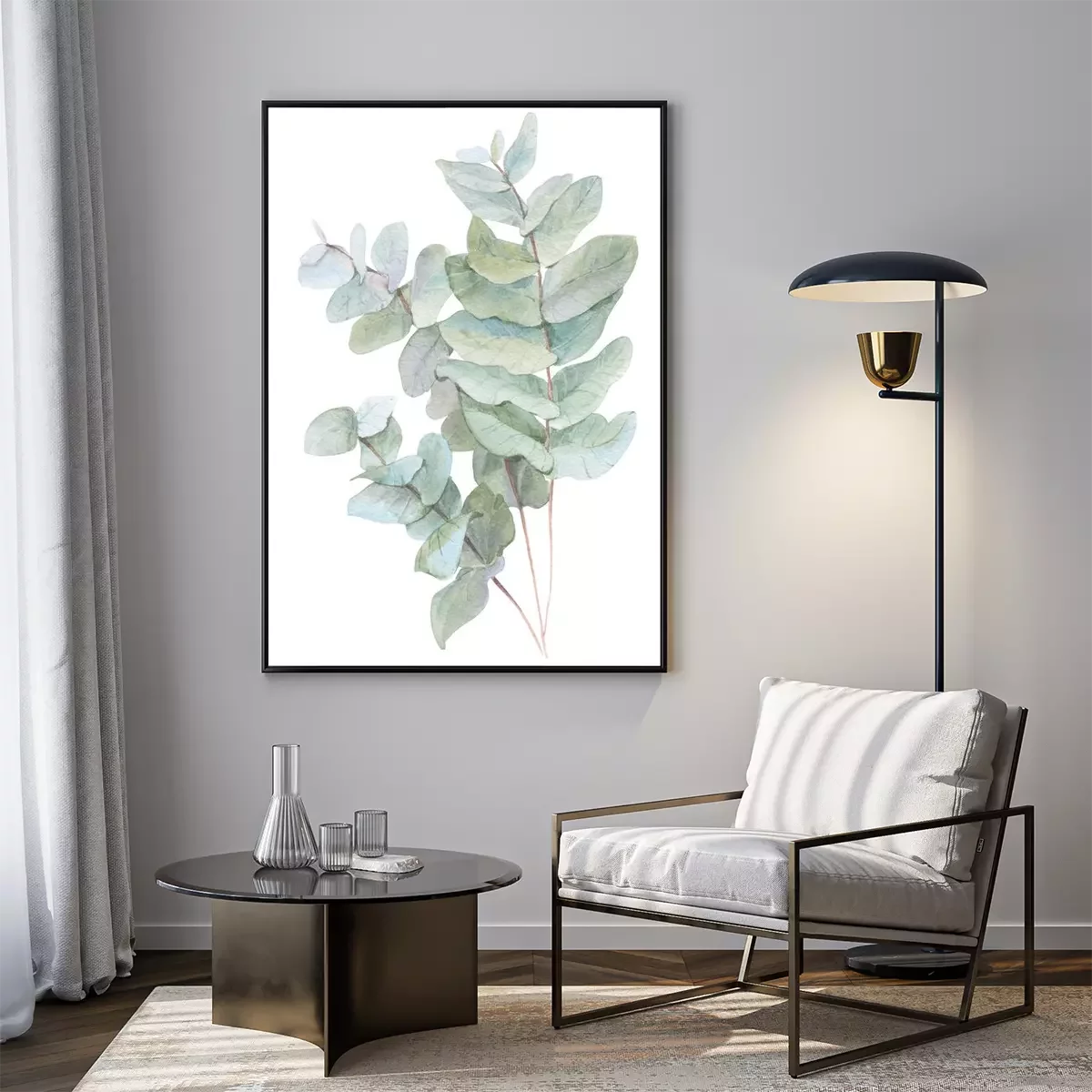 Poster: Drie aquarel twijgen met groene bladeren