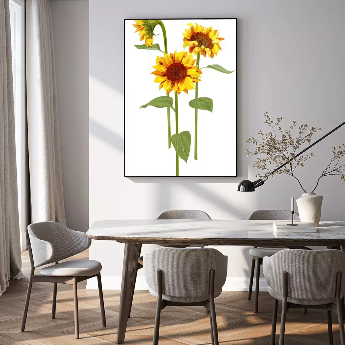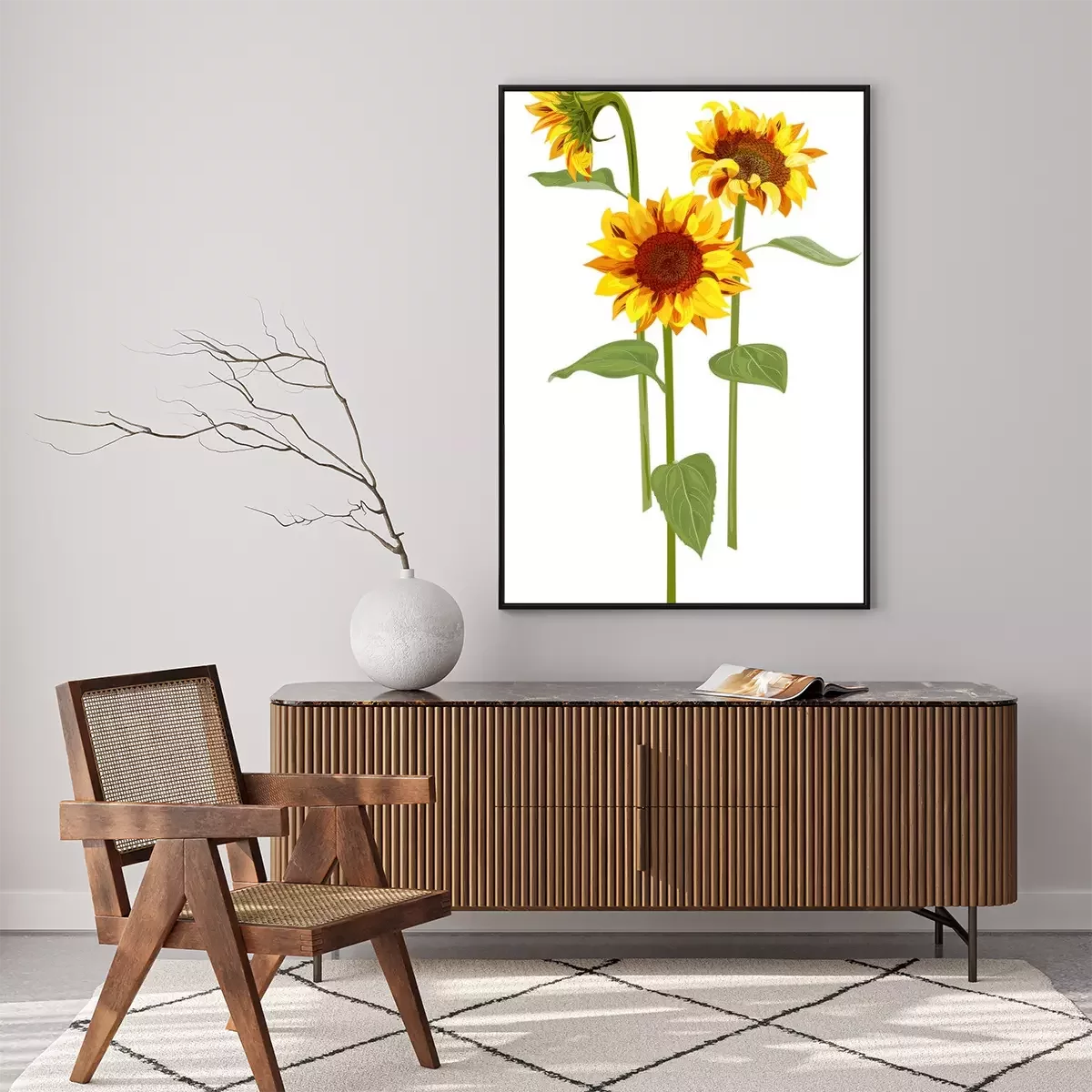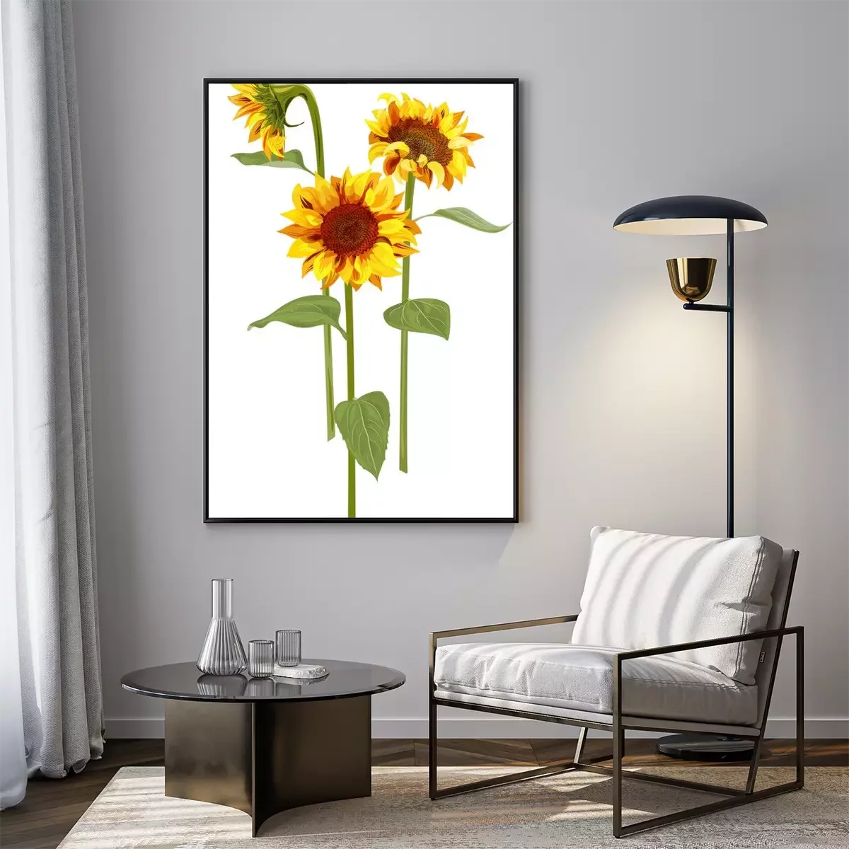 Poster: Drie aquarel zonnebloemen
