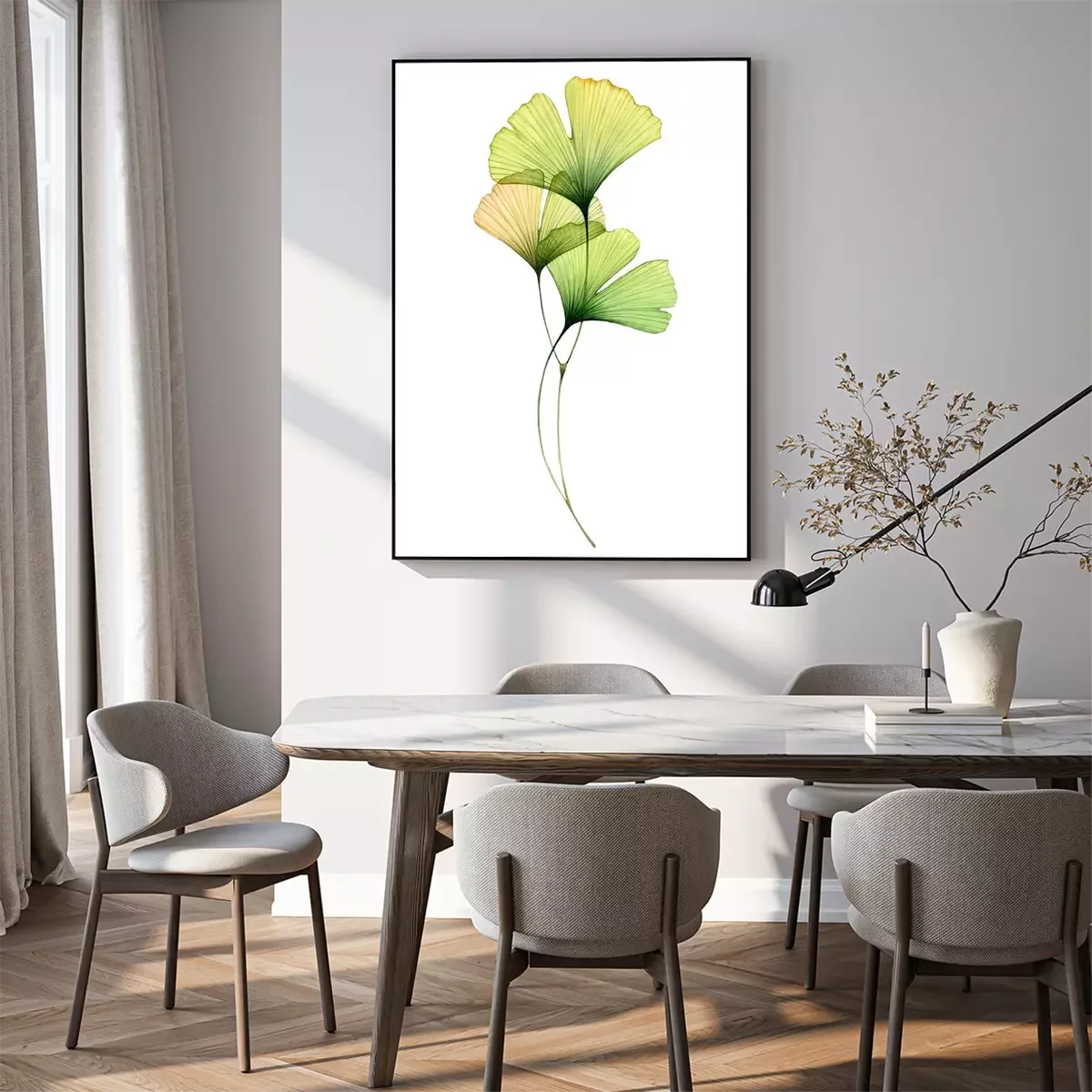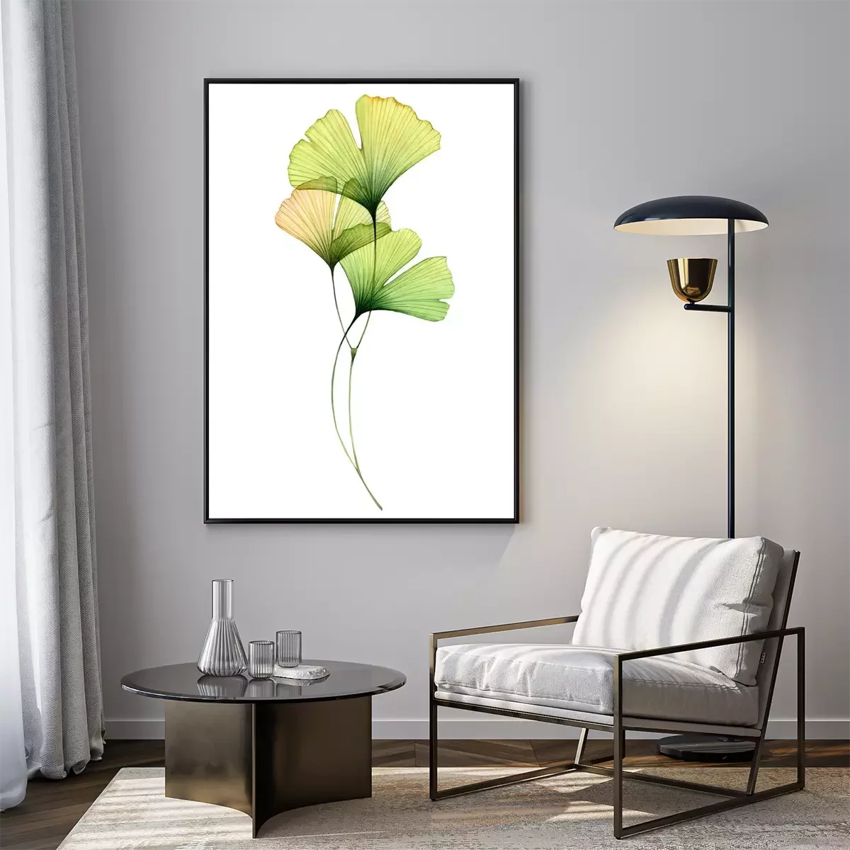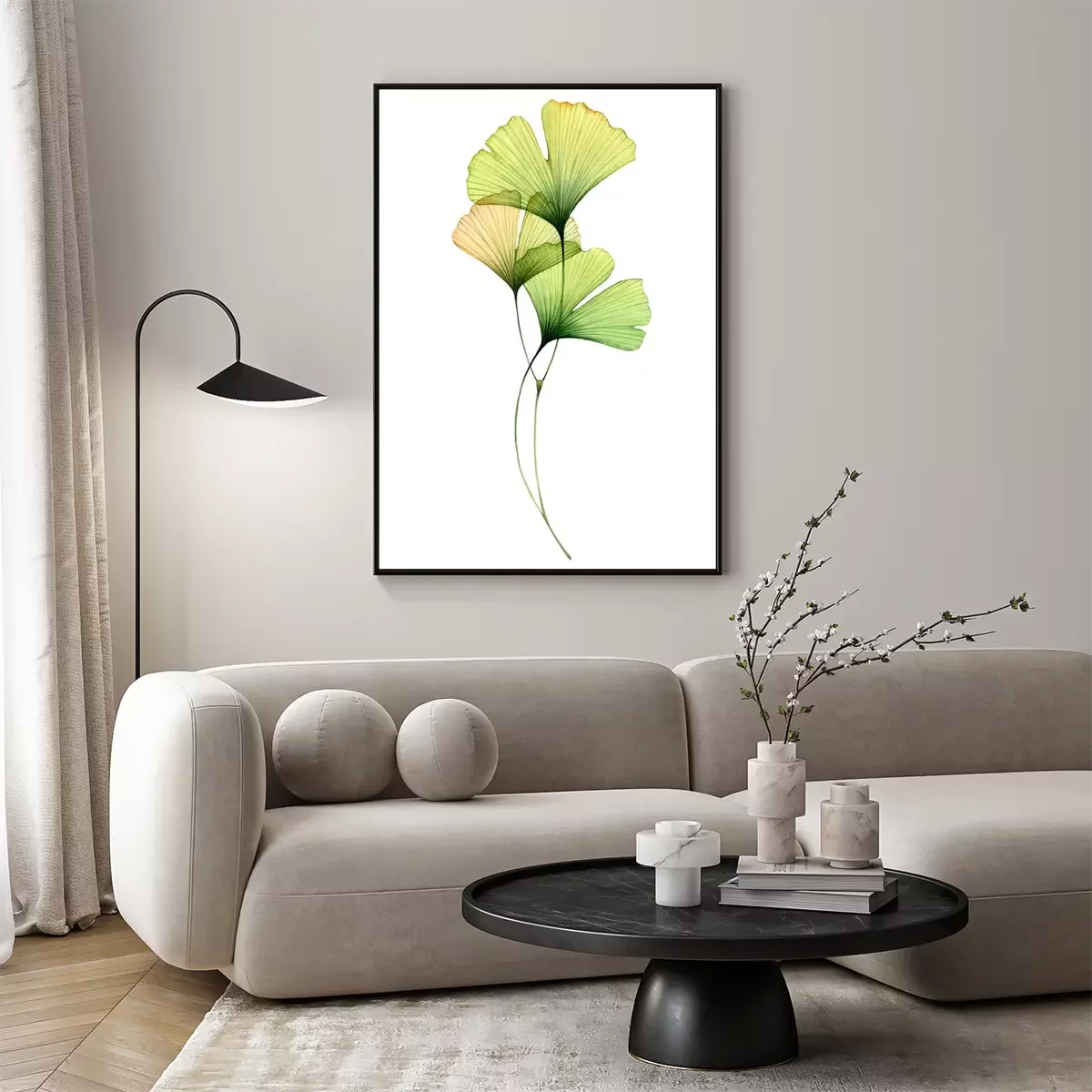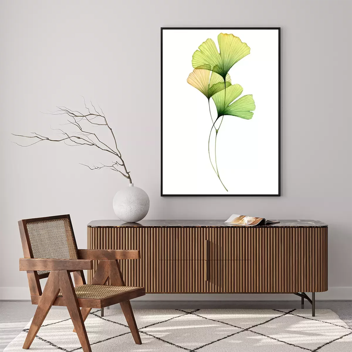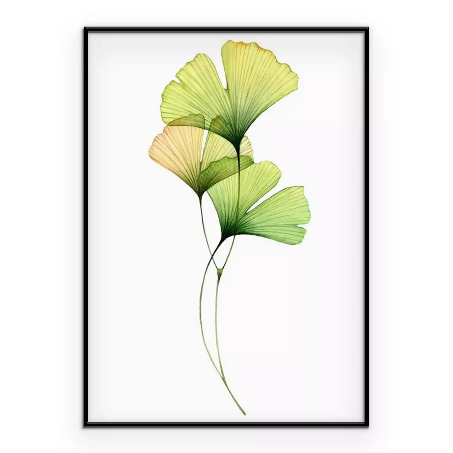 Poster: Drie ginkgo-bladeren op een witte achtergrond