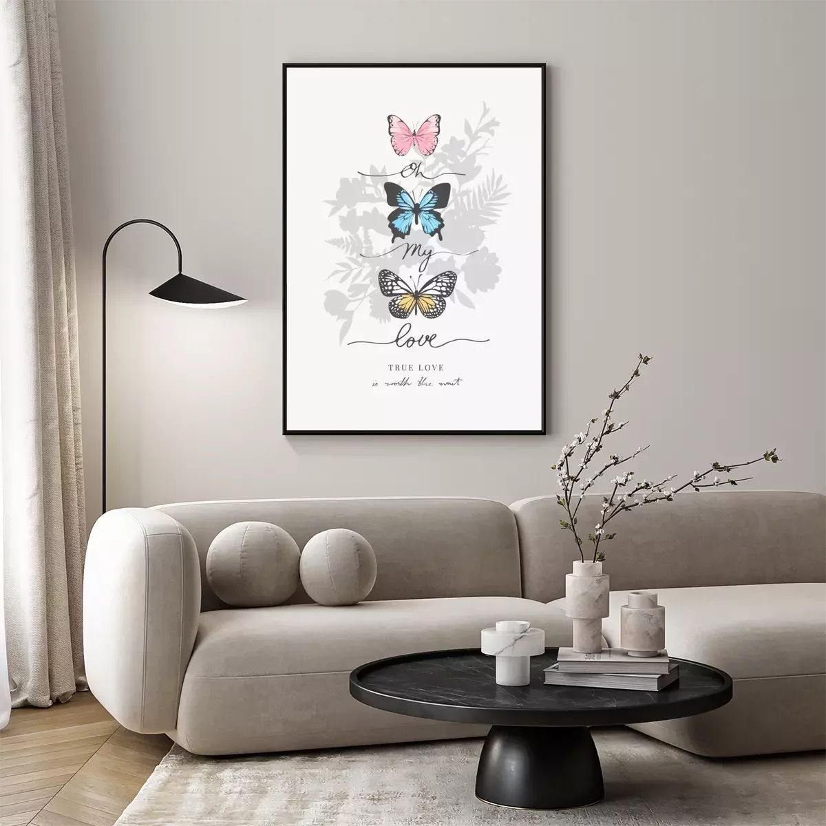 Vlinder met bloemen en motiverende slogan
