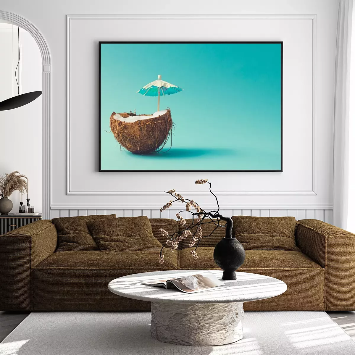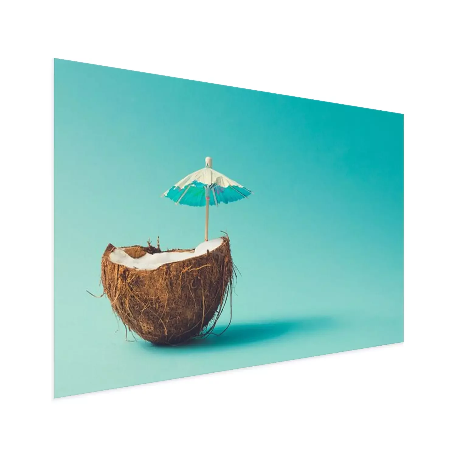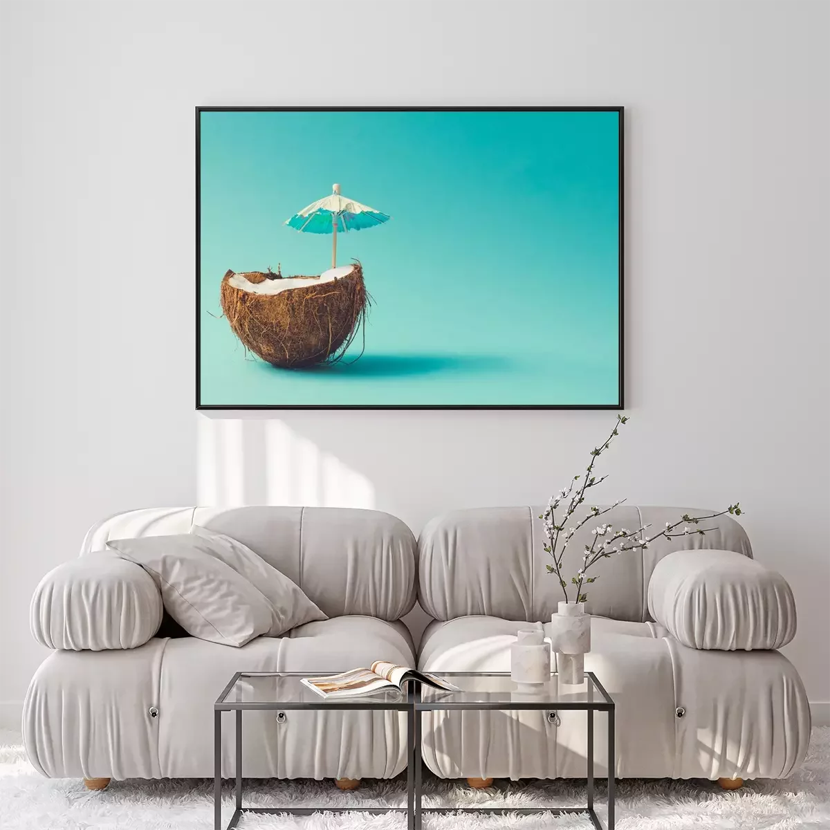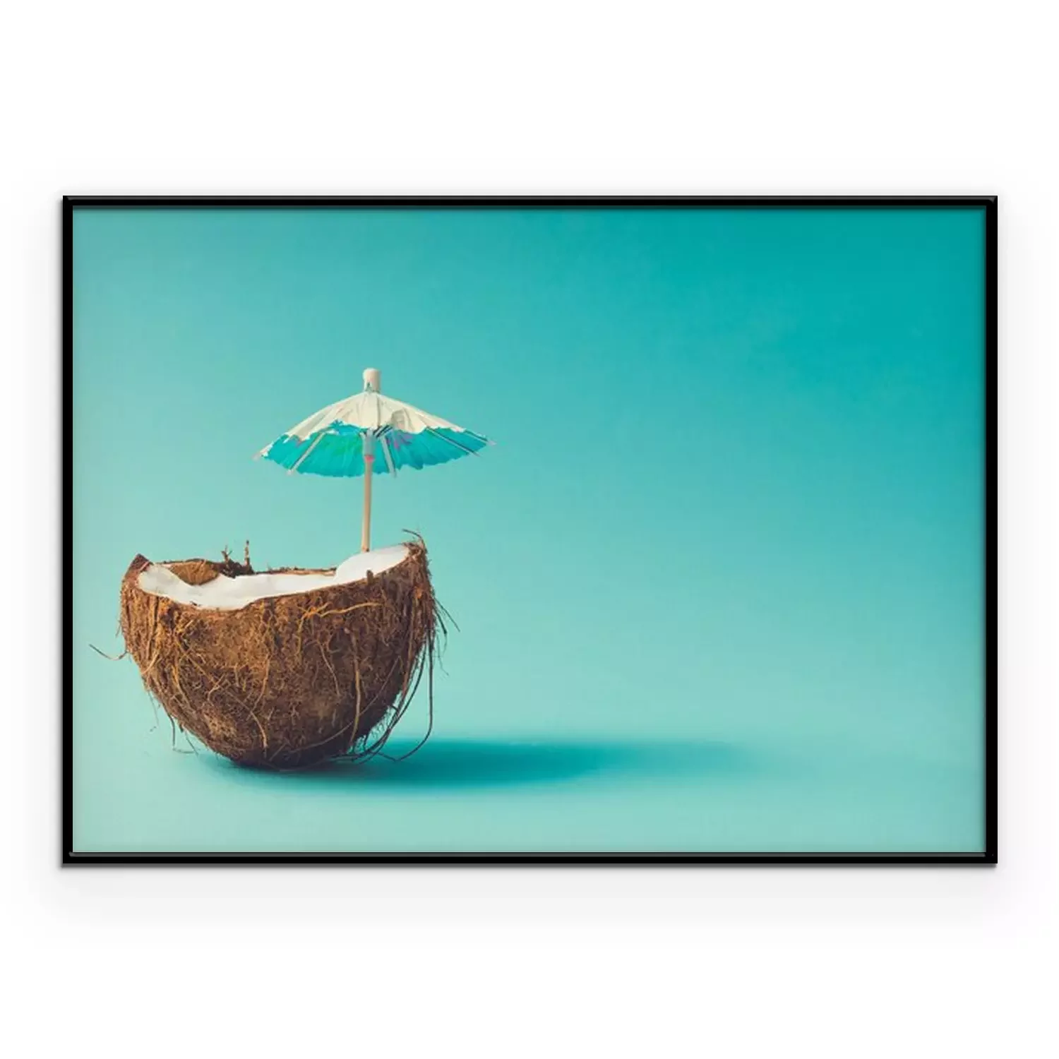 Poster: Drink met een parapluutje in een halve kokosnoot
