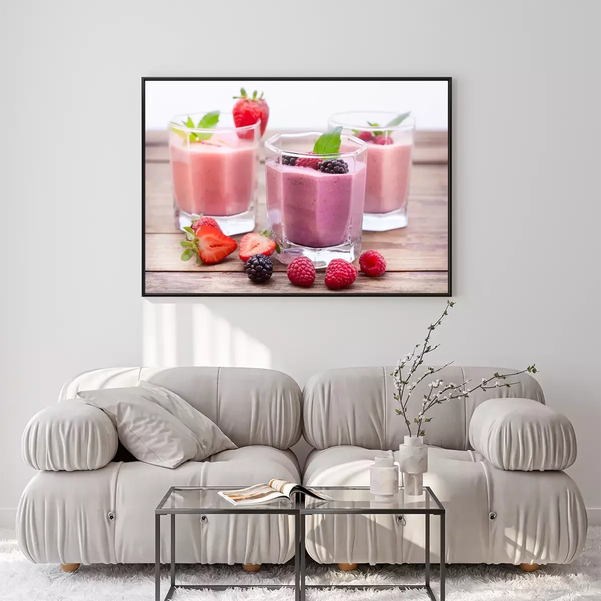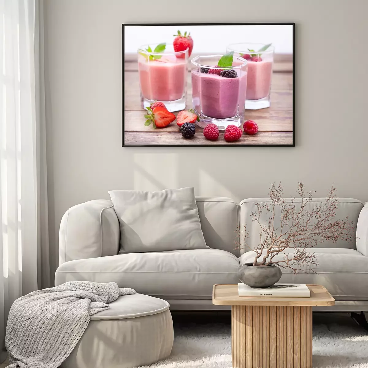 Poster Drink smoothies aardbei, braam, kiwi, framboos