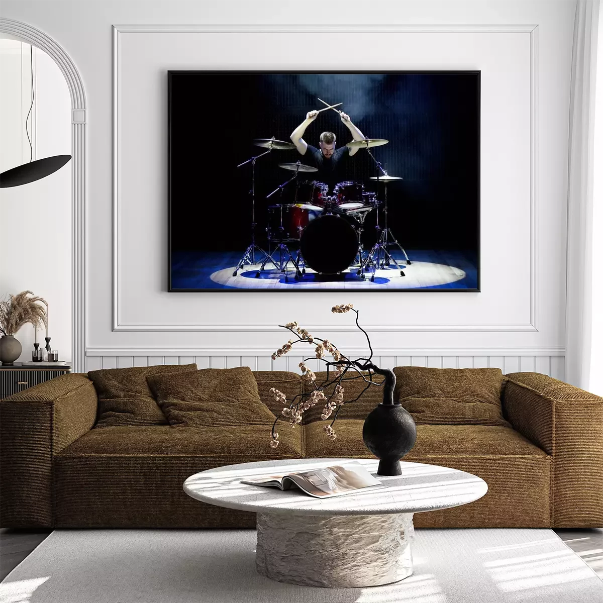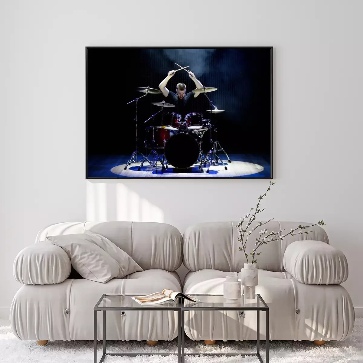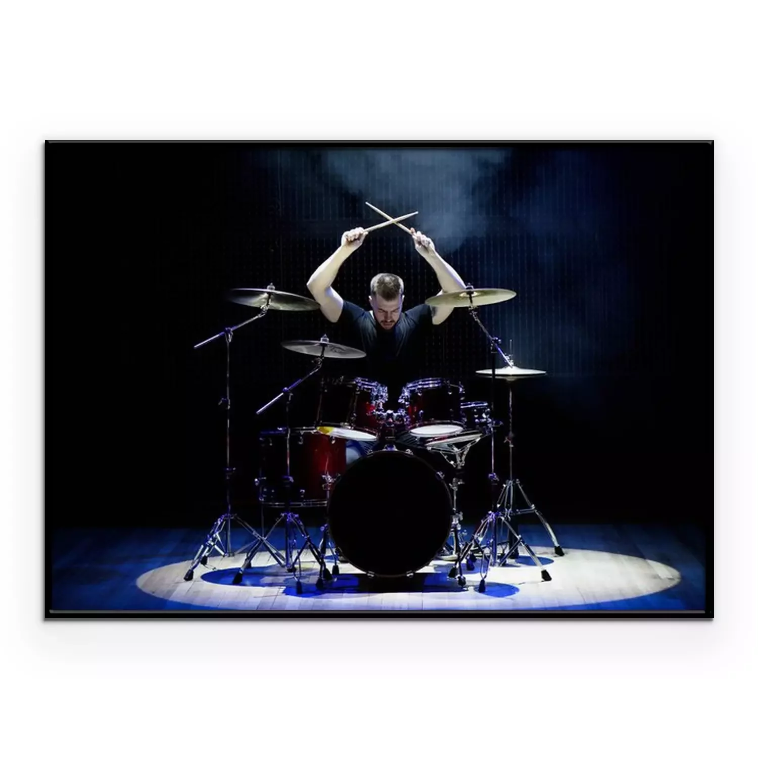 Poster Drummer playing the drums with smoke and powder in the background
