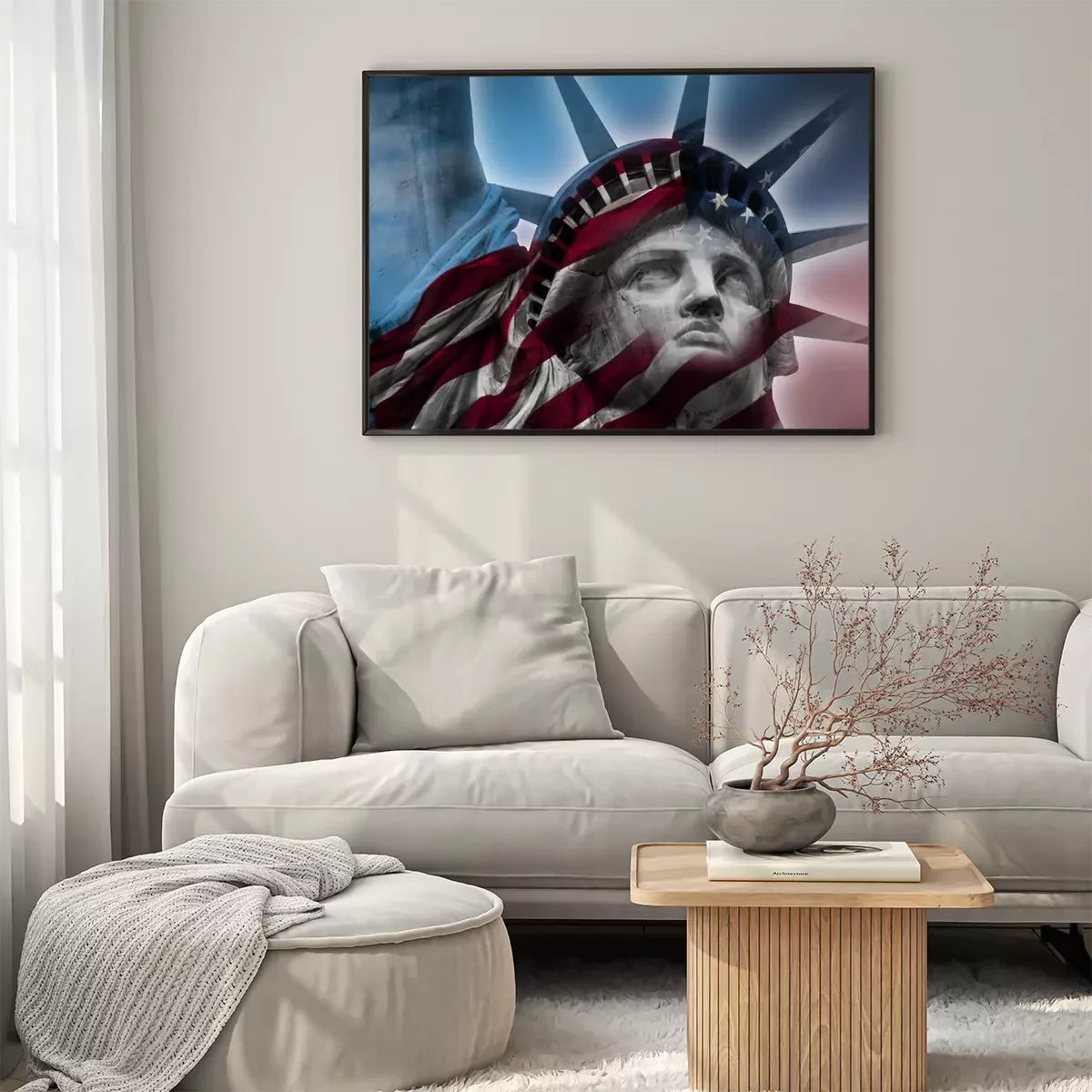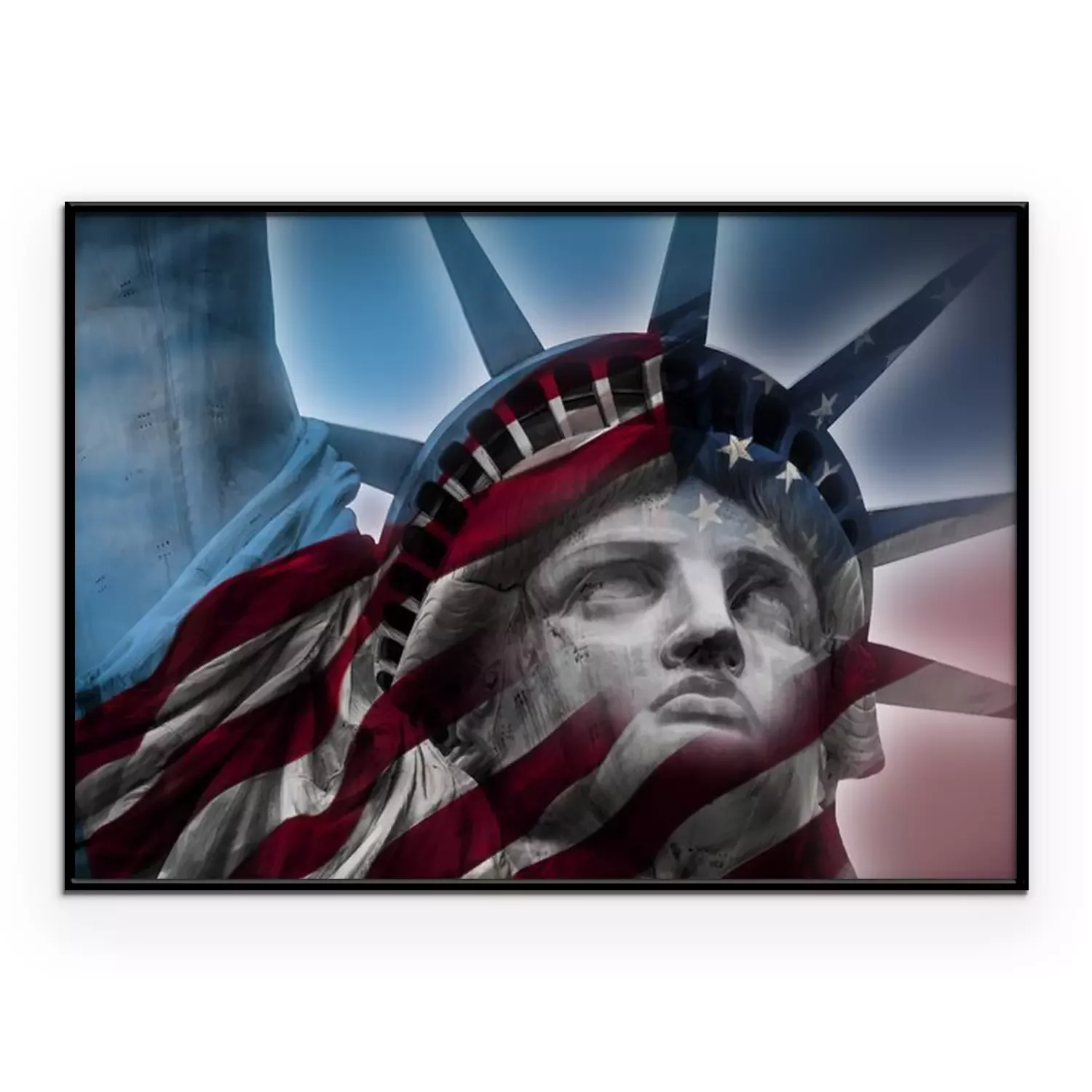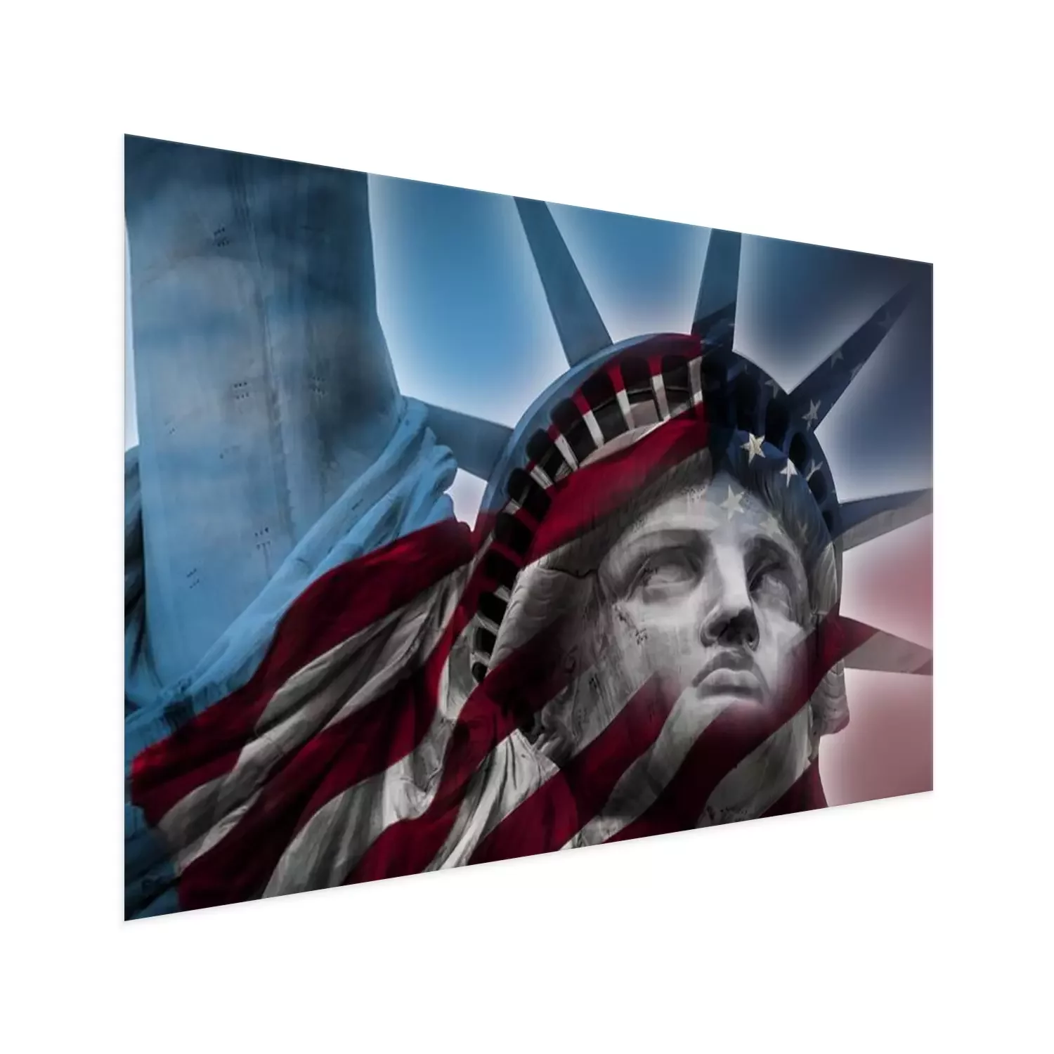 Poster: Dubbel beeld blootstelling van het Vrijheidsbeeld en de Amerikaanse vlag
