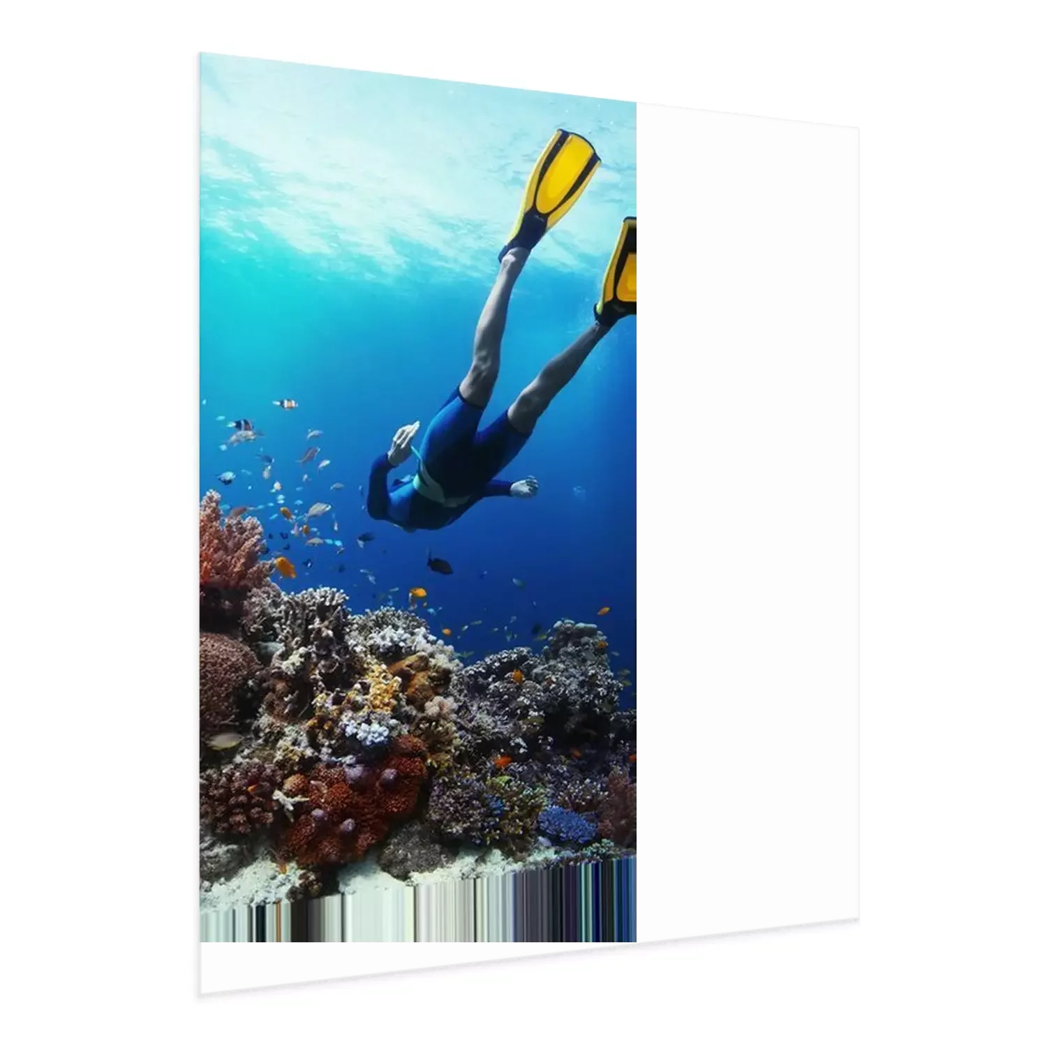 De standaardposter wordt gedrukt op papier met een gramgewicht van 200 g/m², terwijl de premiumposter wordt gedrukt op papier met een hoger gramgewicht van 300 g/m² en een zeer hoge resolutie van 1440 dpi biedt.