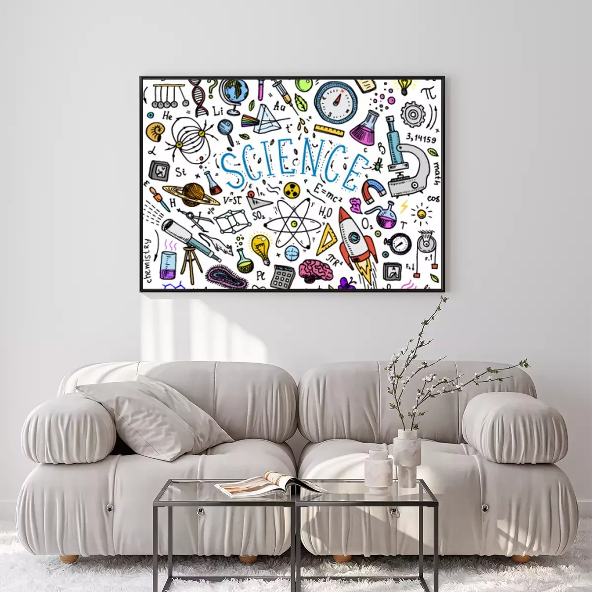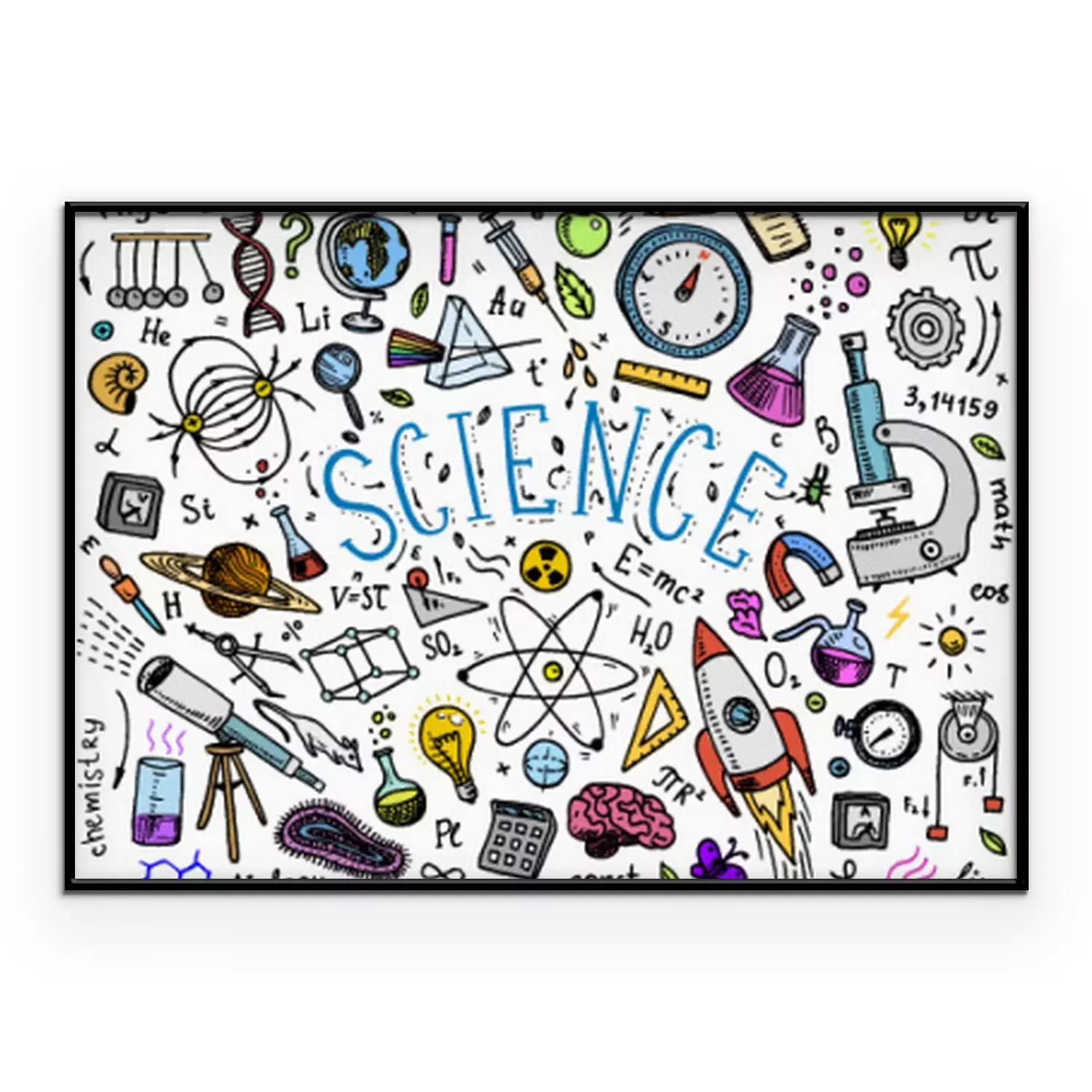 Poster Educatieve illustratie van wiskunde, natuurkunde, scheikunde en biologie