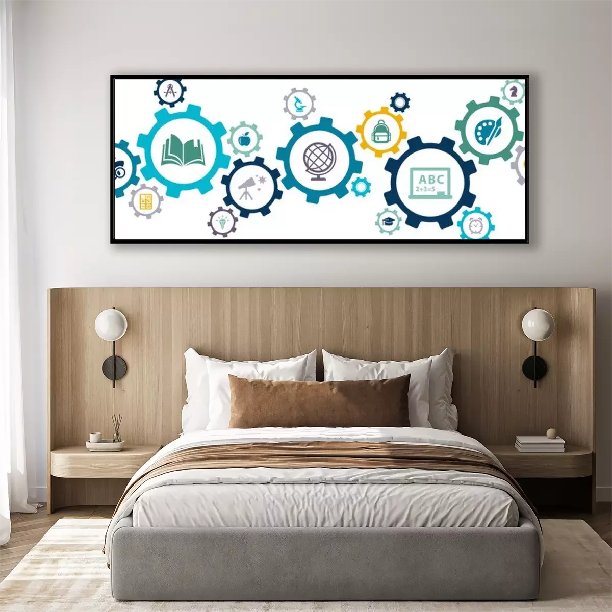 Poster education icon concept: school / college / studying interconnected symbols - vector illustration