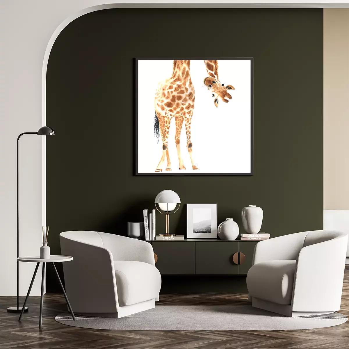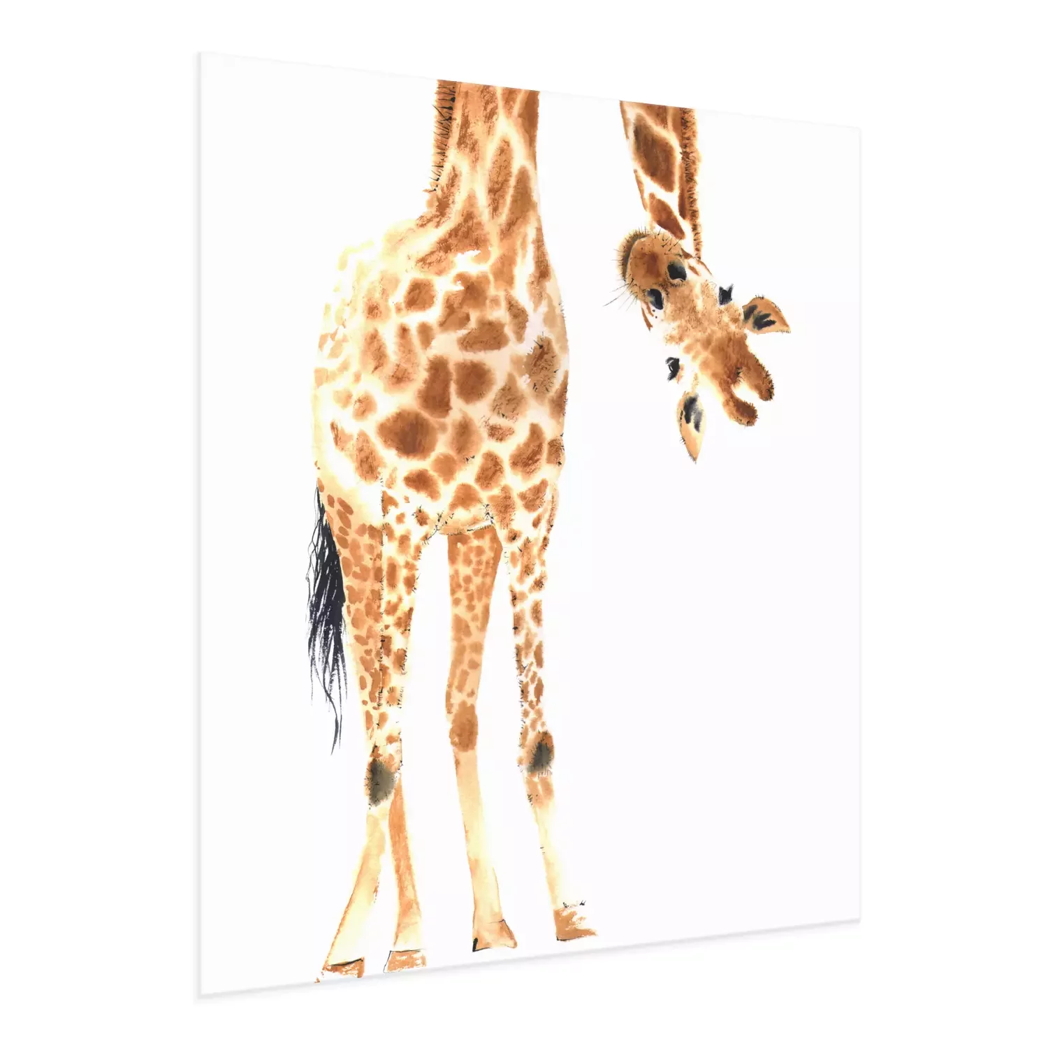 Poster Een afbeelding van een giraffe op een witte achtergrond in aquarel-stijl.