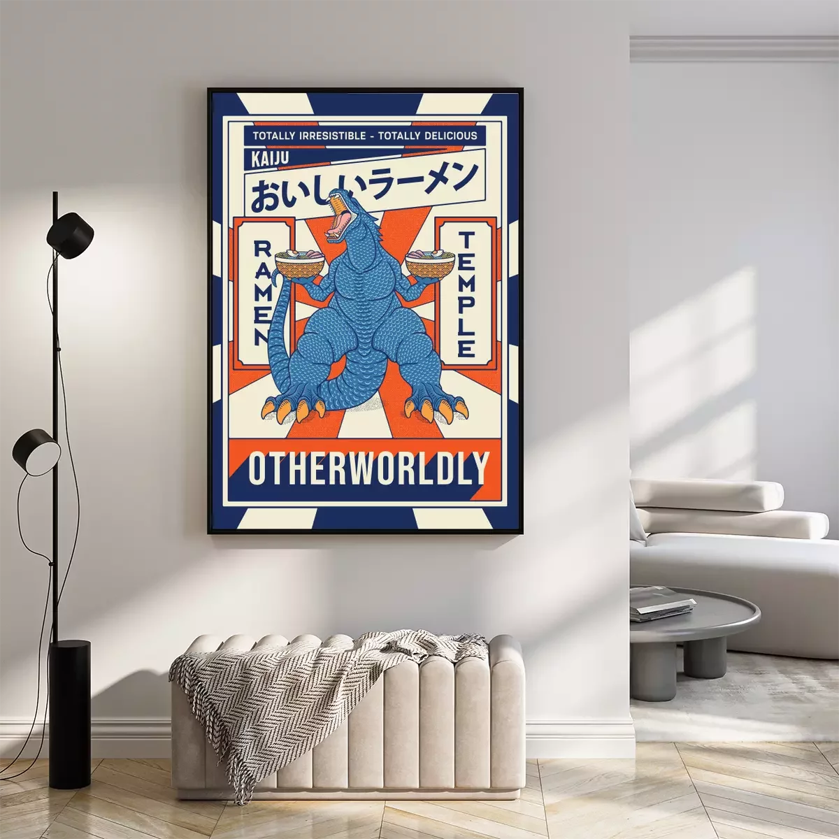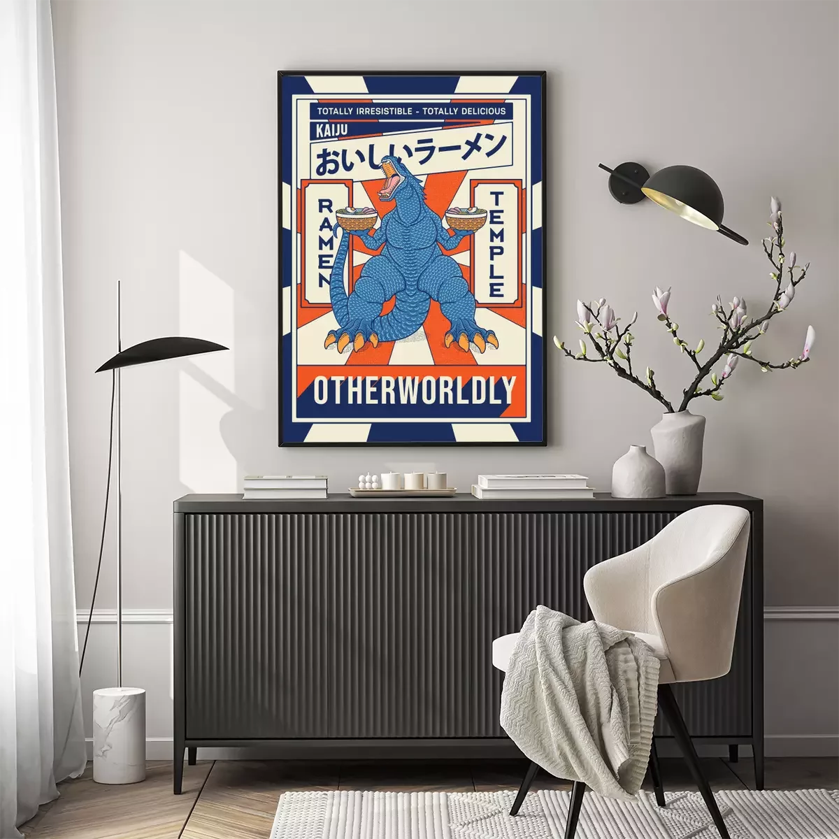 Poster: Een blauwe ramen-liefhebbende dinosaurus