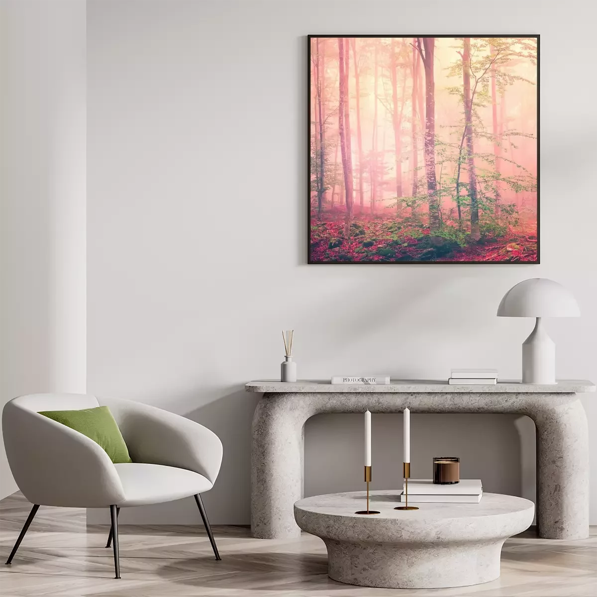 Bos in rode kleurenFotobehang
