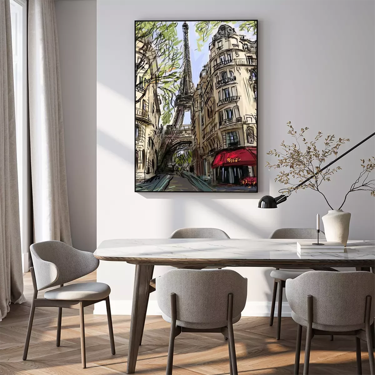 Minimalistische Parijse straatillustratieProbleemloze bezorging verzorgd door vertrouwde vervoerders
