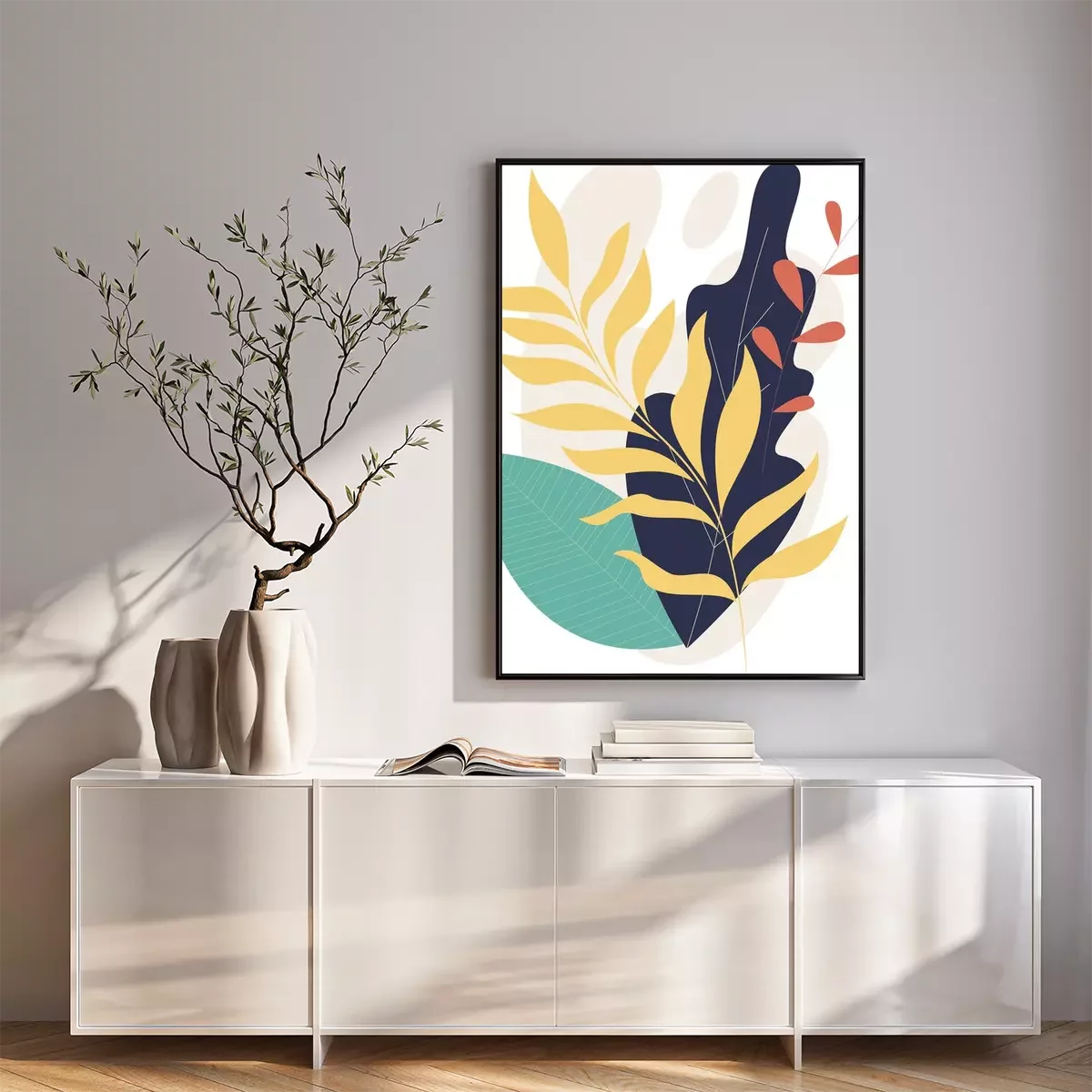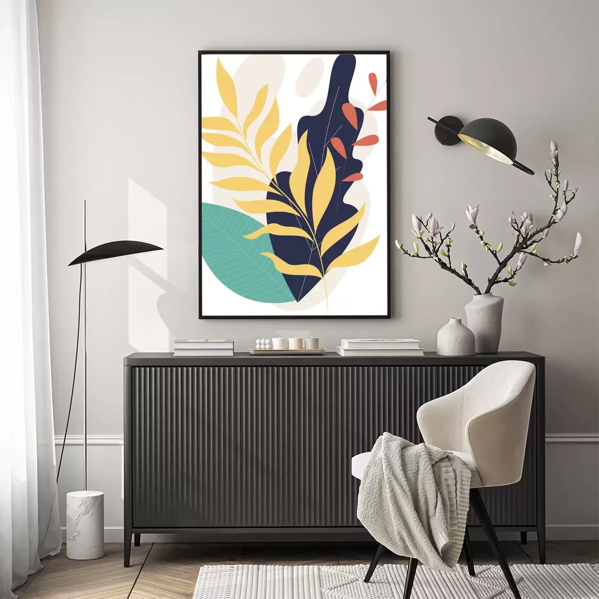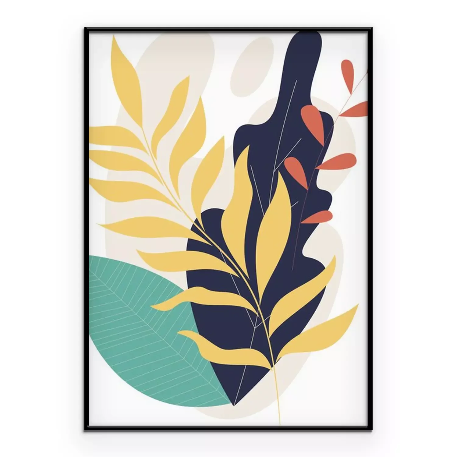 Poster: Een compositie van kleurrijke bladeren met een zwart accent