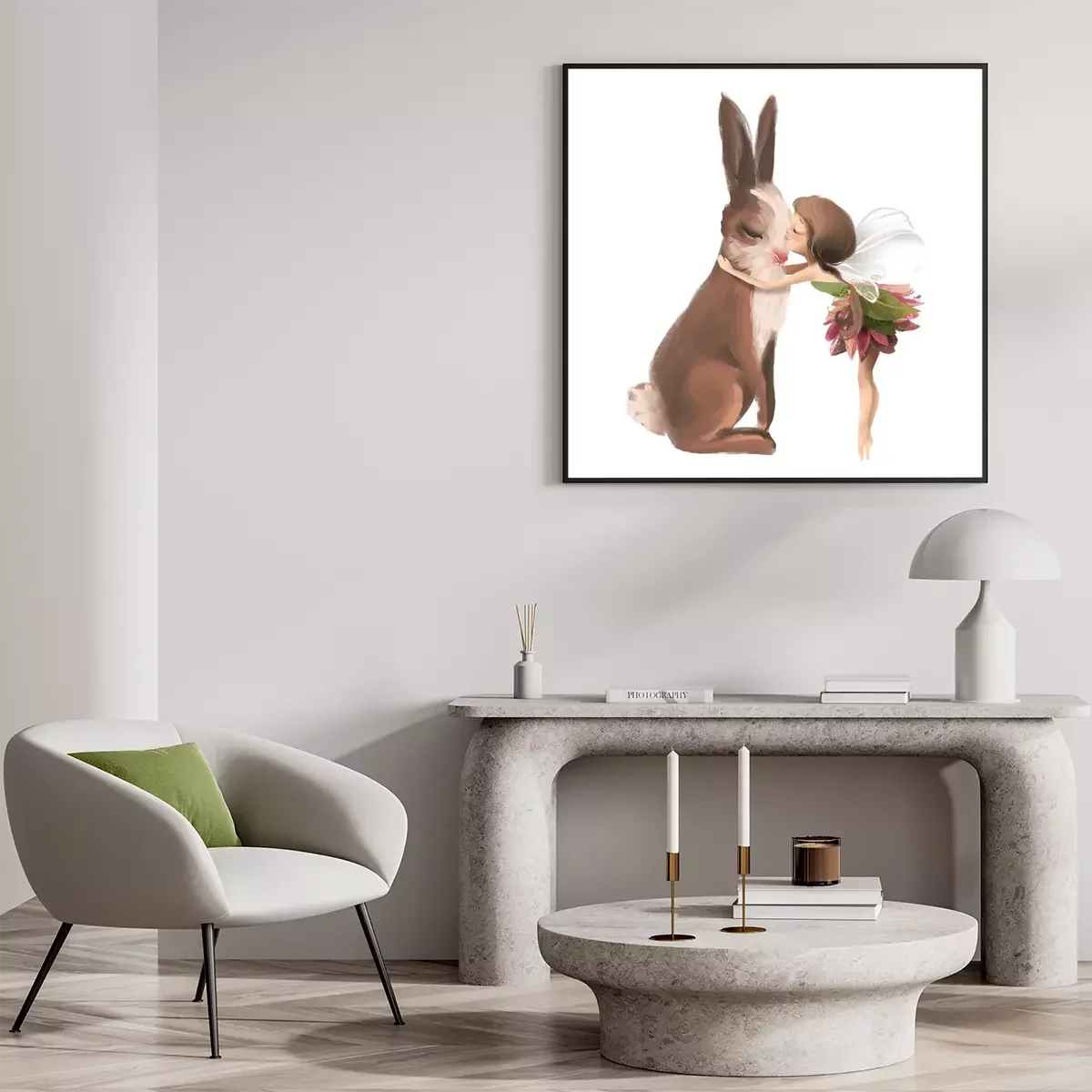 Poster Een fee die een grote haas kust
