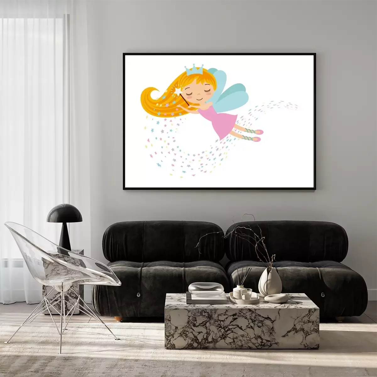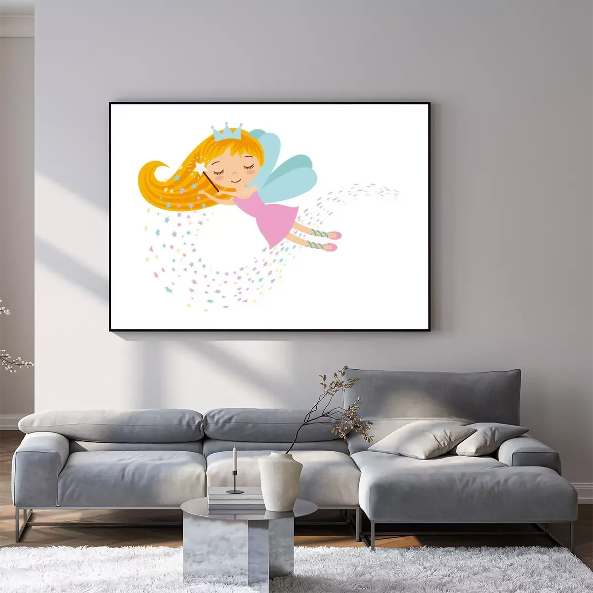 Poster: Een fee die kleurrijke sterren tovert