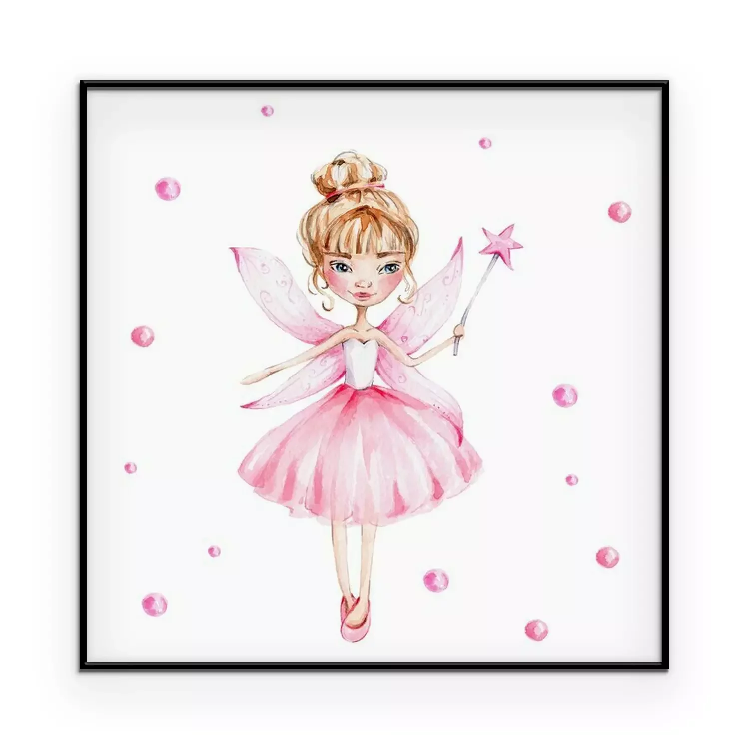 Poster: Een fee in een roze jurk met een toverstaf met sterren