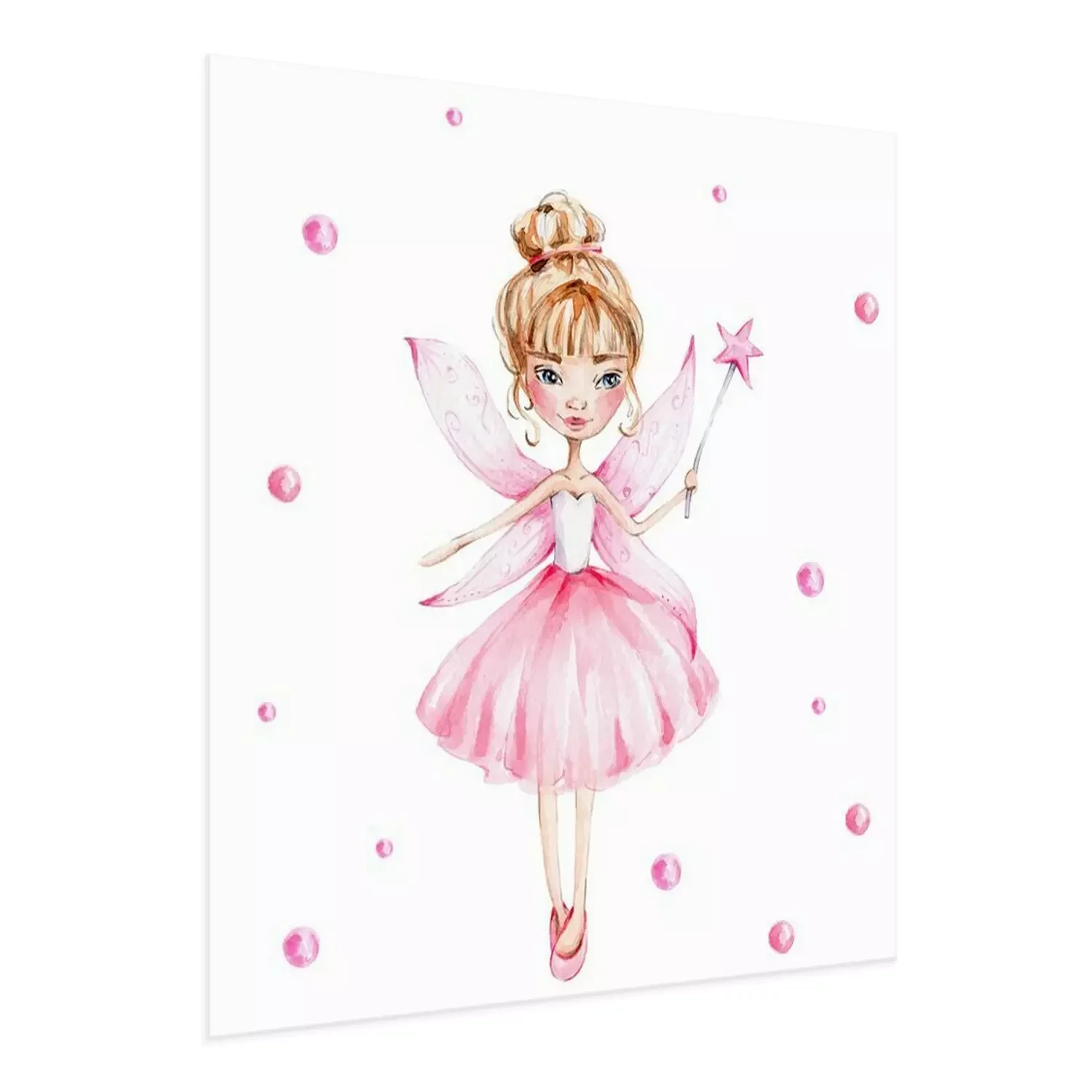 Poster Een fee in een roze jurk met een toverstaf met sterren
